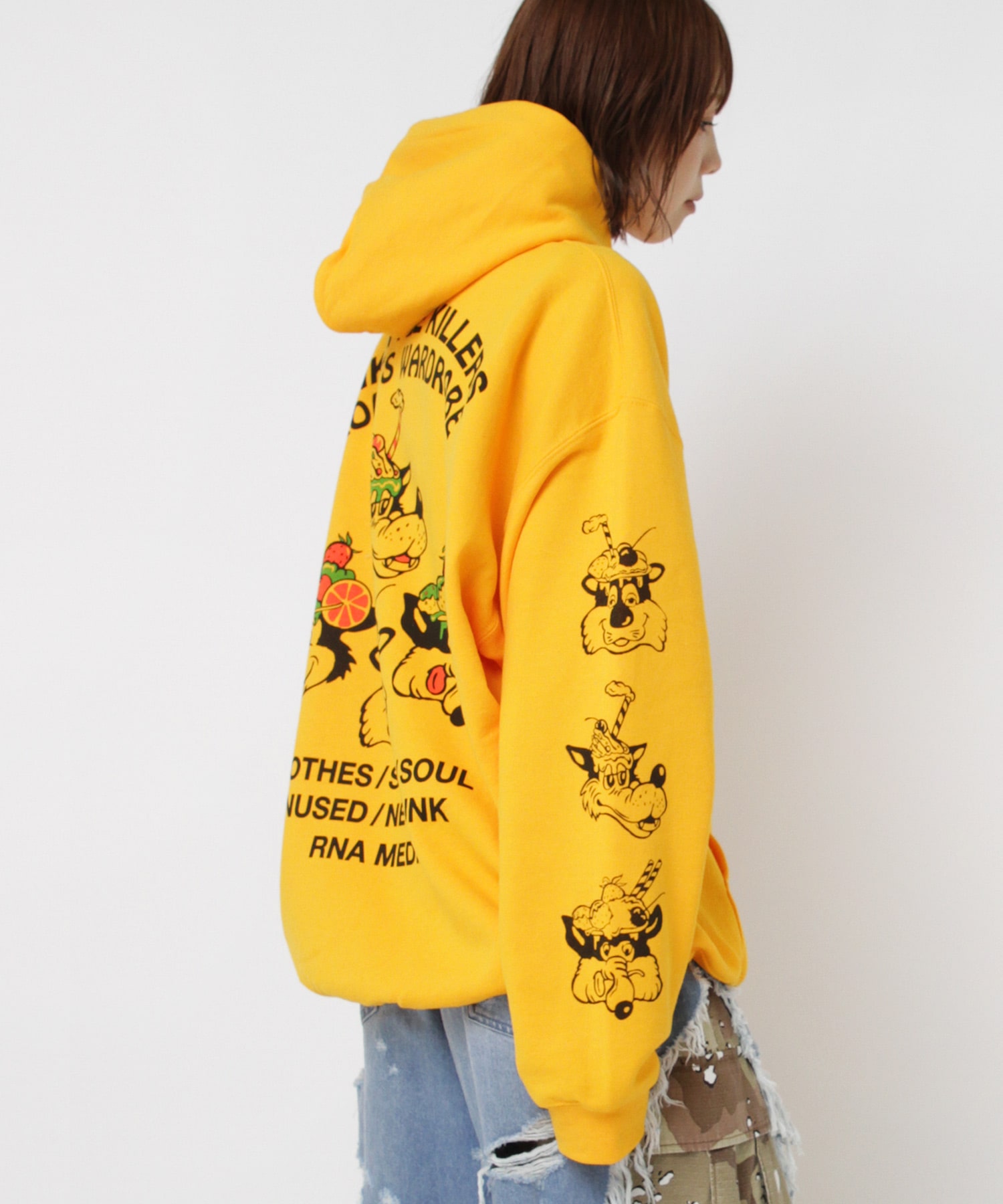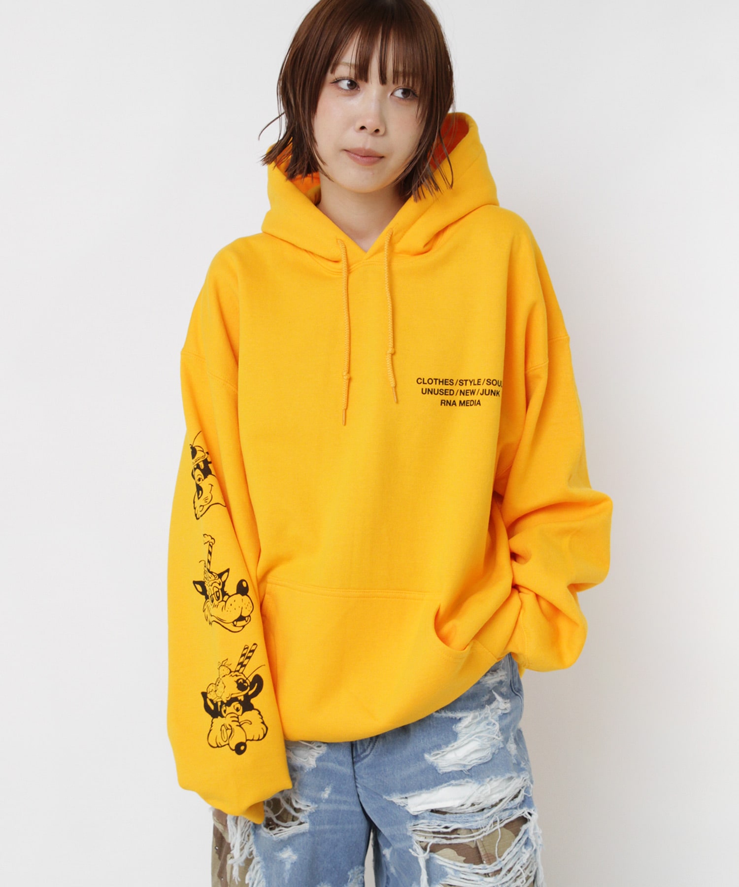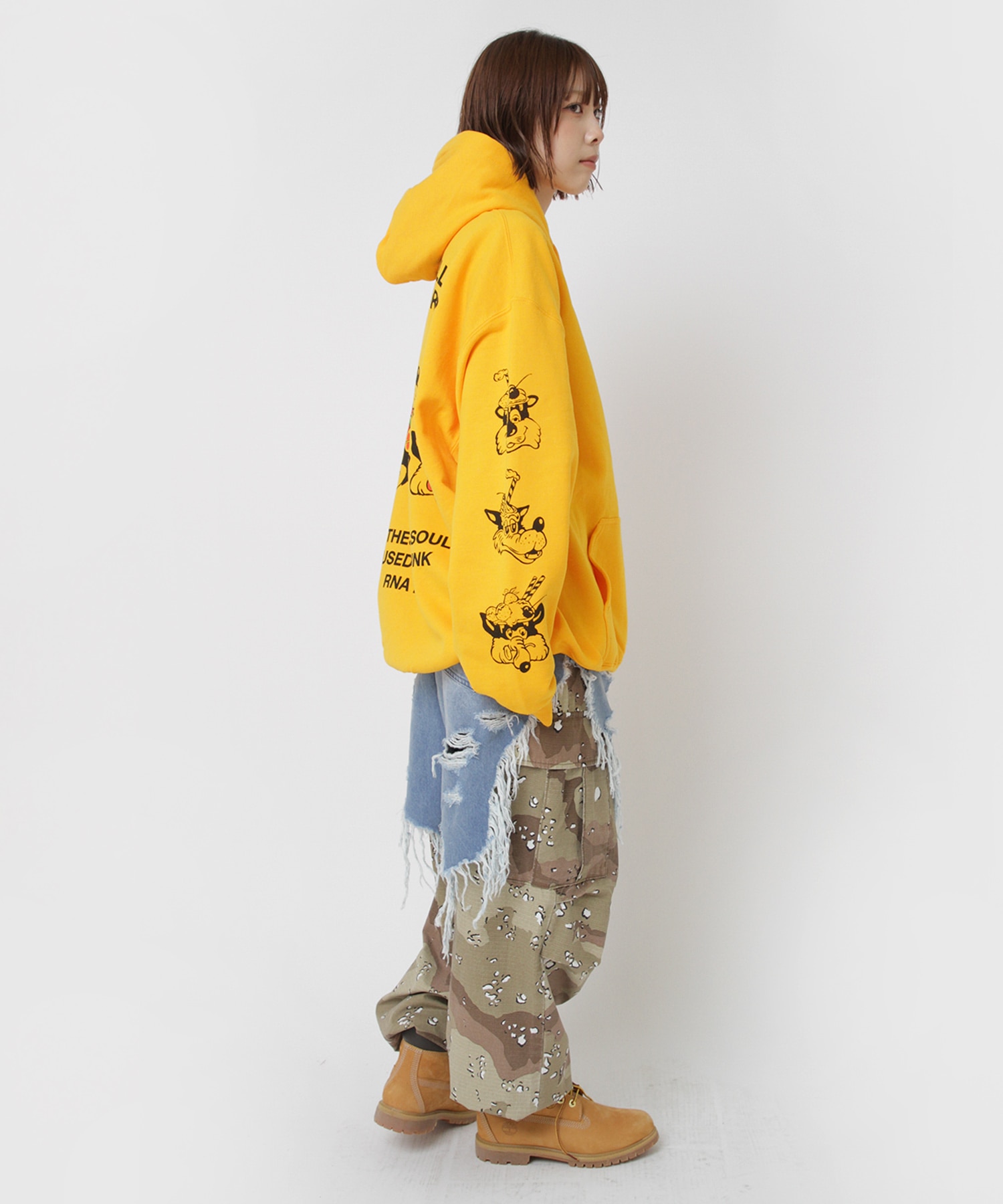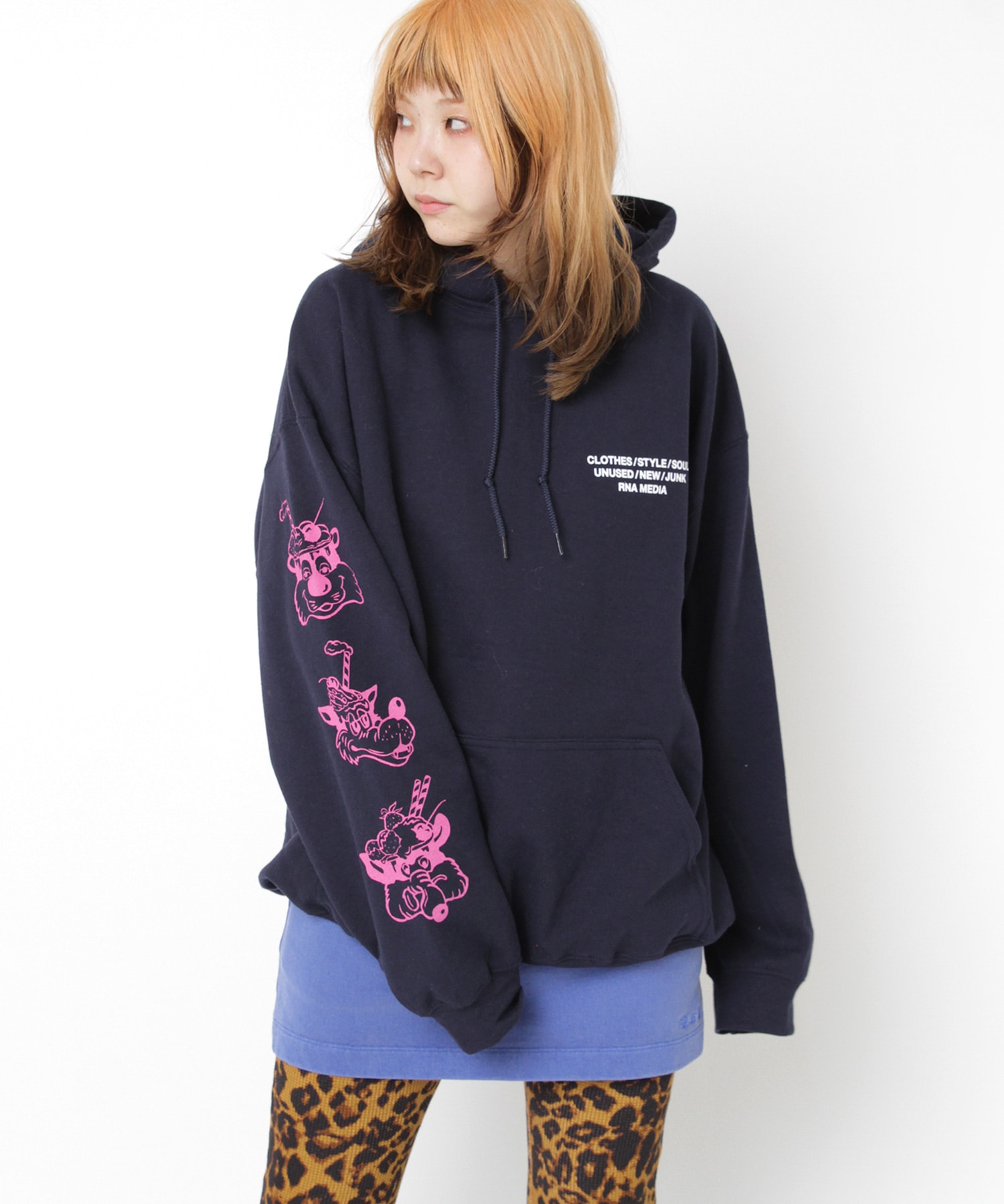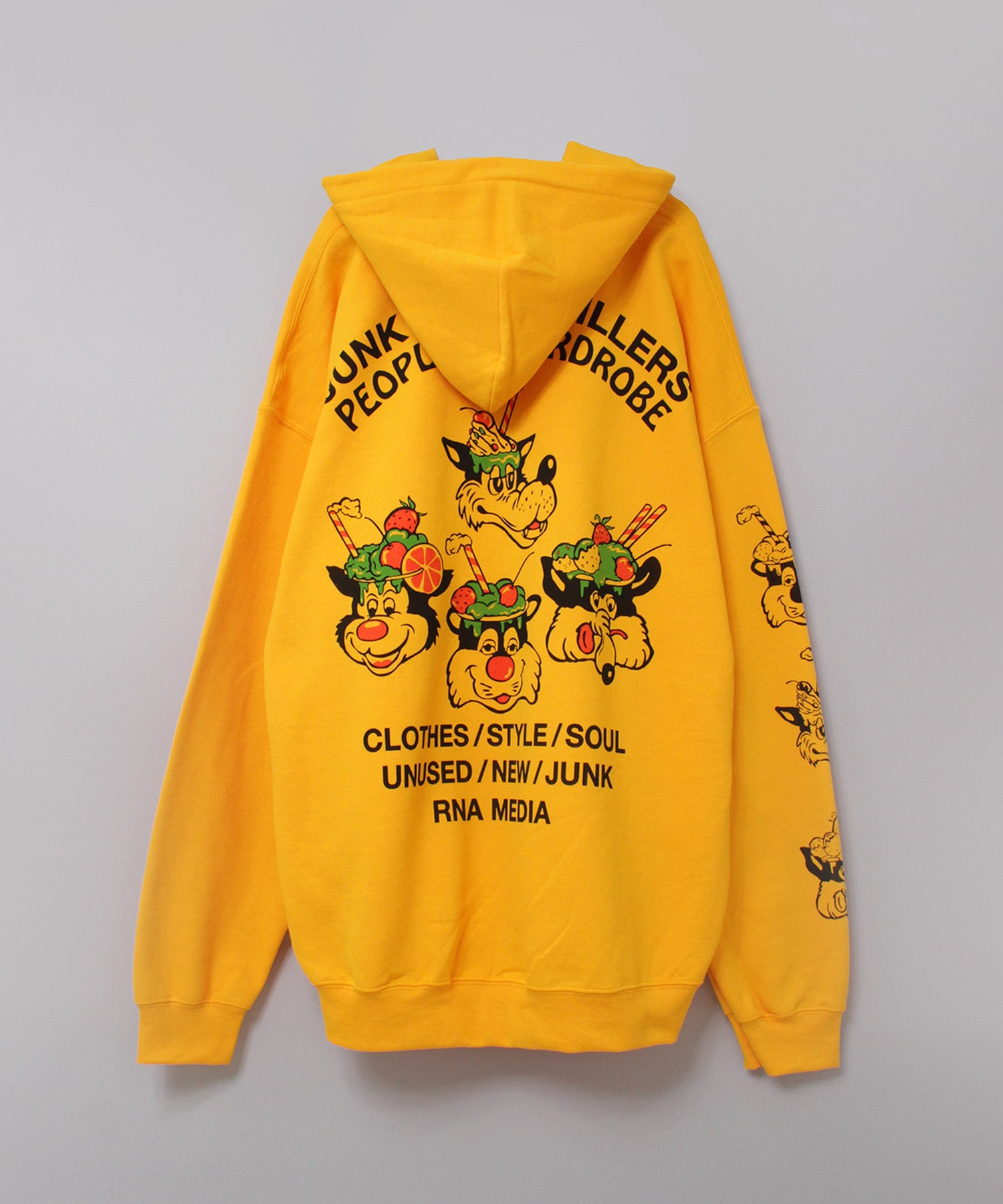 ジャンクでブラックユーモアのあるキャラプリントパーカー