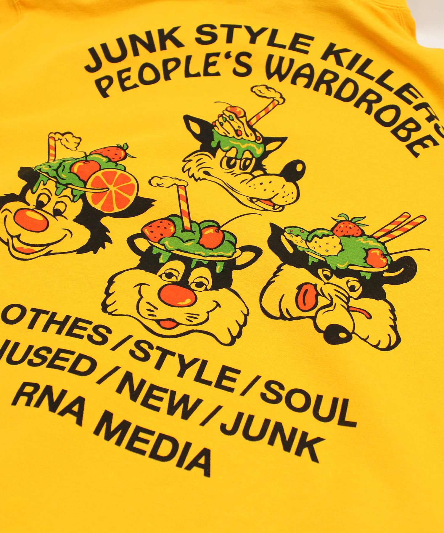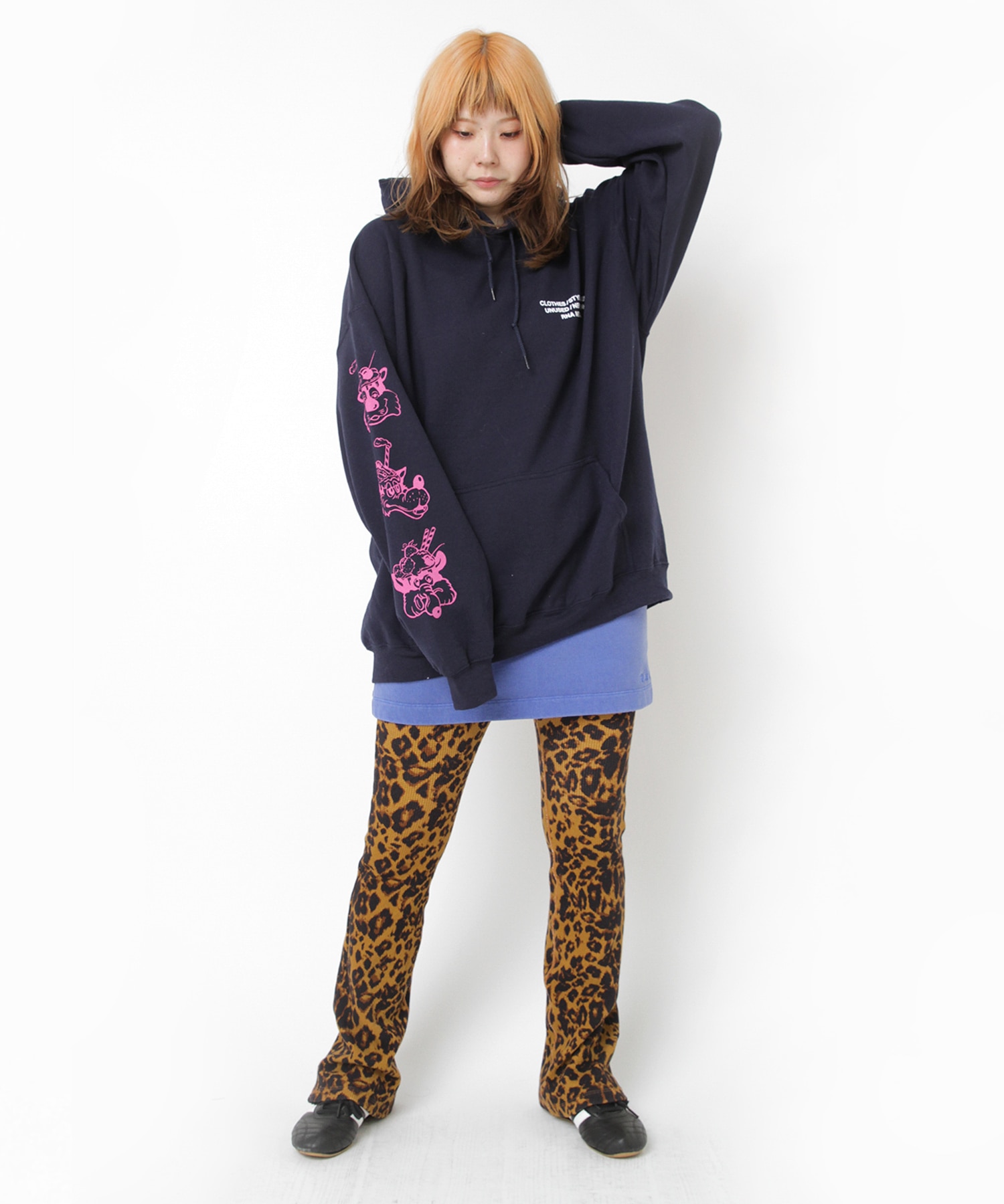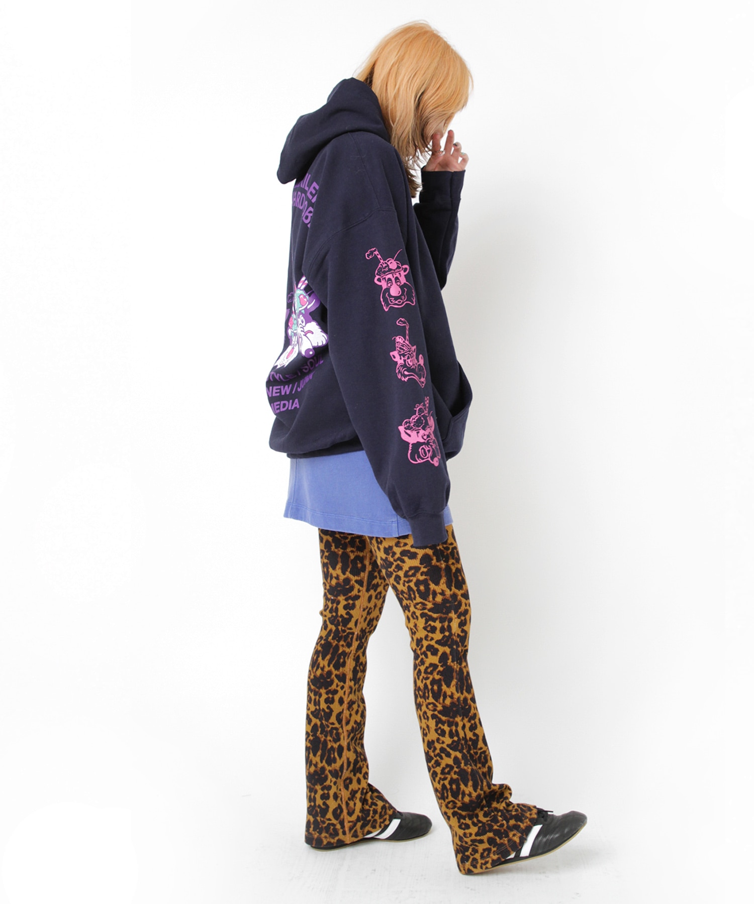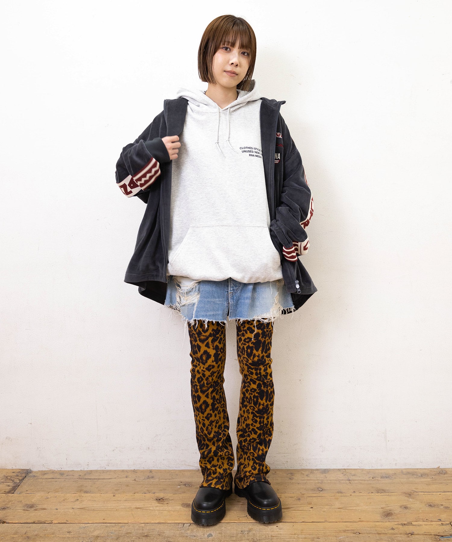 ジャンクでブラックユーモアのあるキャラプリントパーカー