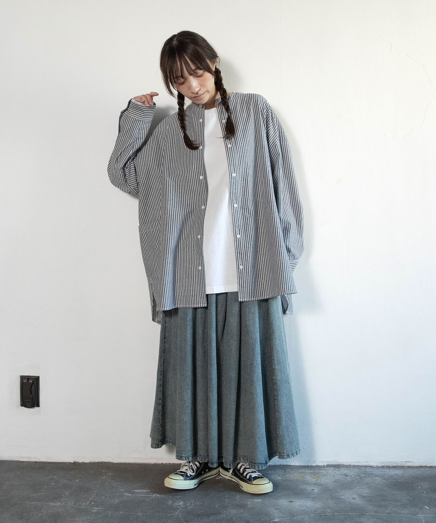 大きめの胸ポケットはメンズライクな雰囲気を添え、カジュアルな印象を演出します。
