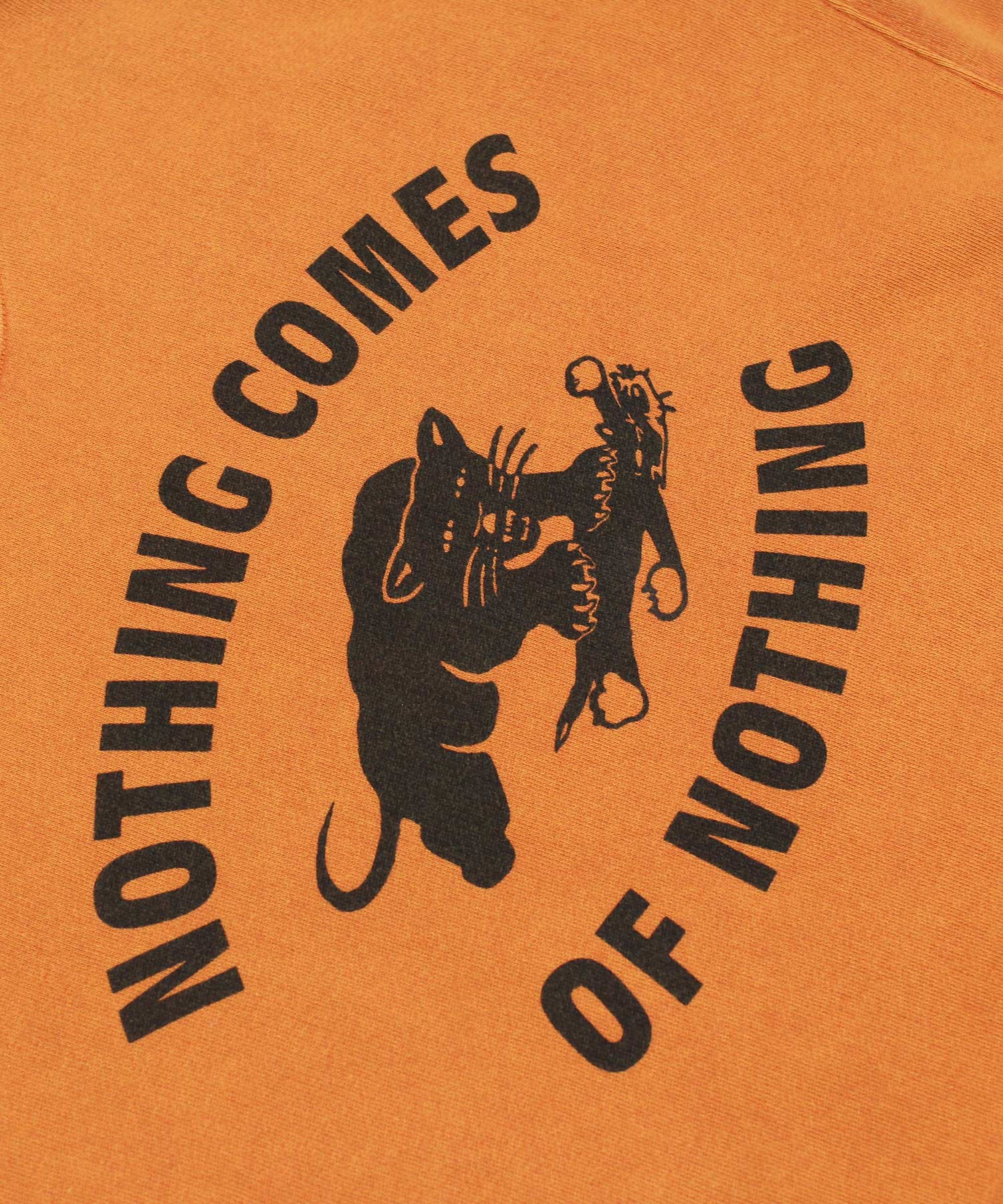 アメカジっぽいイメージのグラフィックに、少しクスッとなる要素を入れるため、ヘタウマなタッチの黒ヒョウがアメリカンコミック風のオオカミを踏んづけているグラフィックにしました。