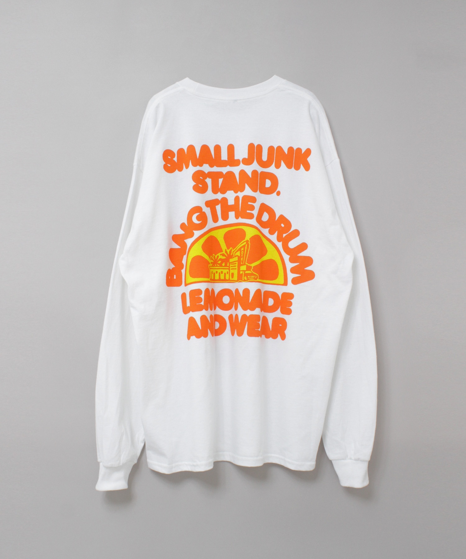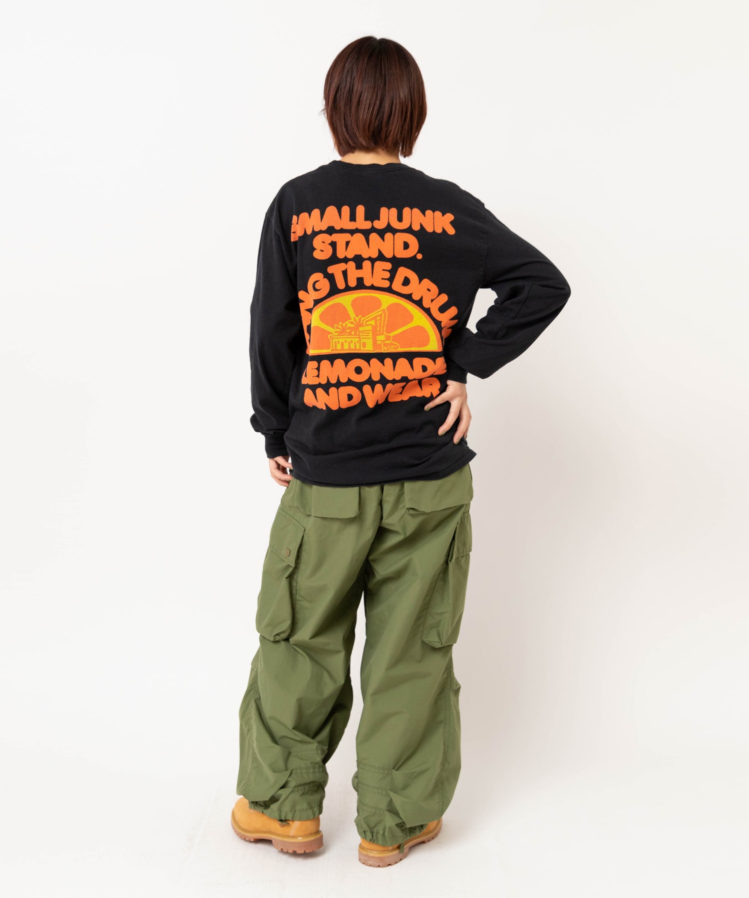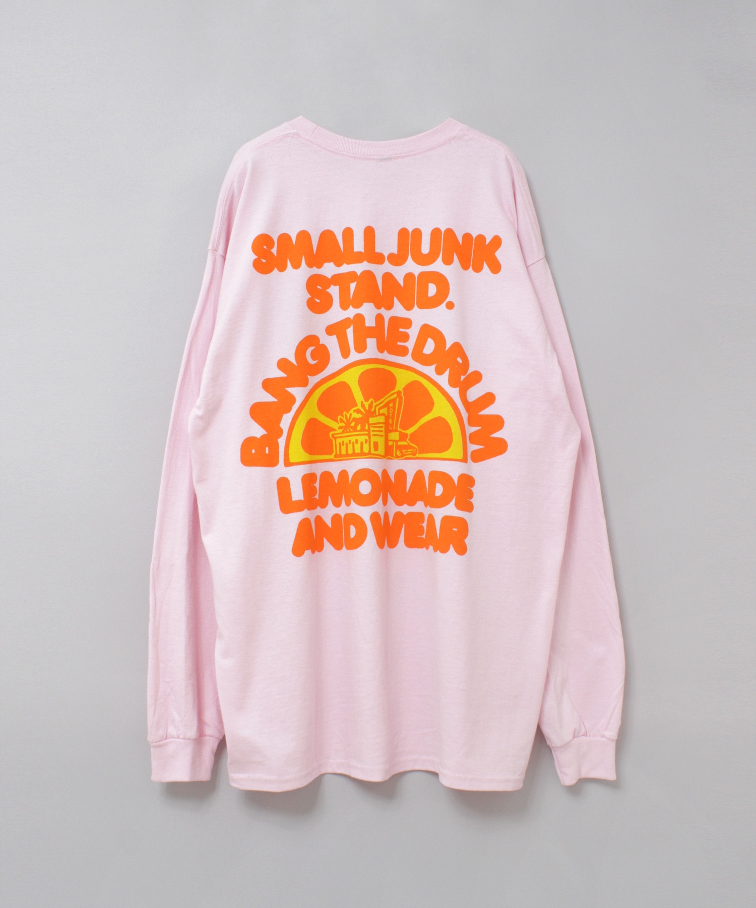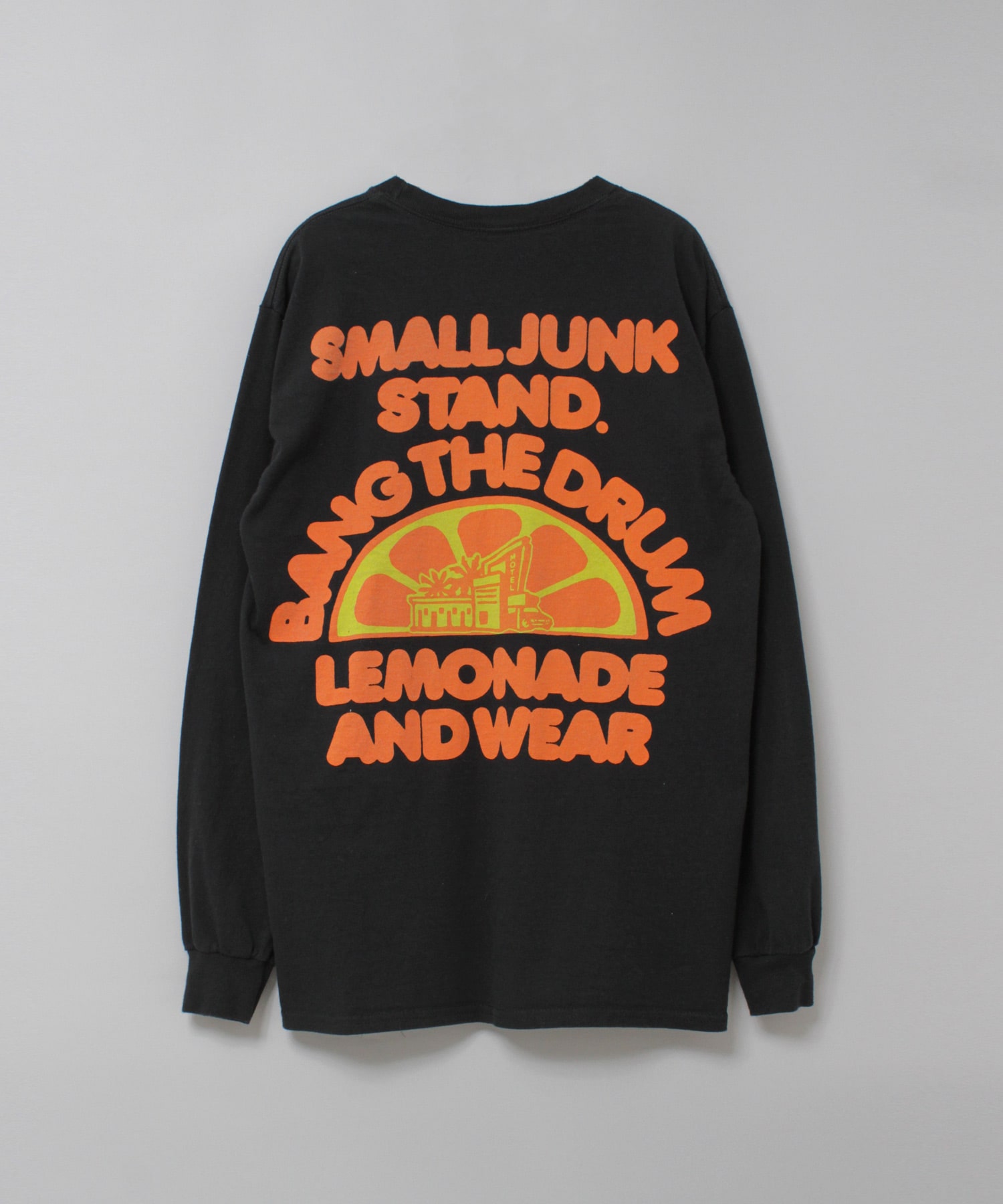 このロンTは、RNAとPINK MOTELの合同コレクションテーマ“SMALL JUNK STAND”(小さな屋台のユーズドショップ)を象徴するイメージアイテムです。ベーシックながらしっかりとした6ozのロンTをベースに、デザインにはイベントへの熱狂的なメッセージを込めました。
