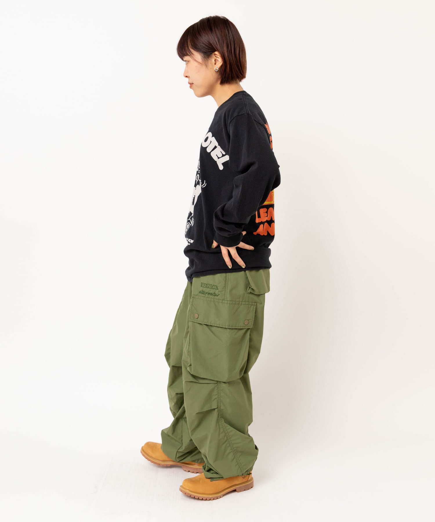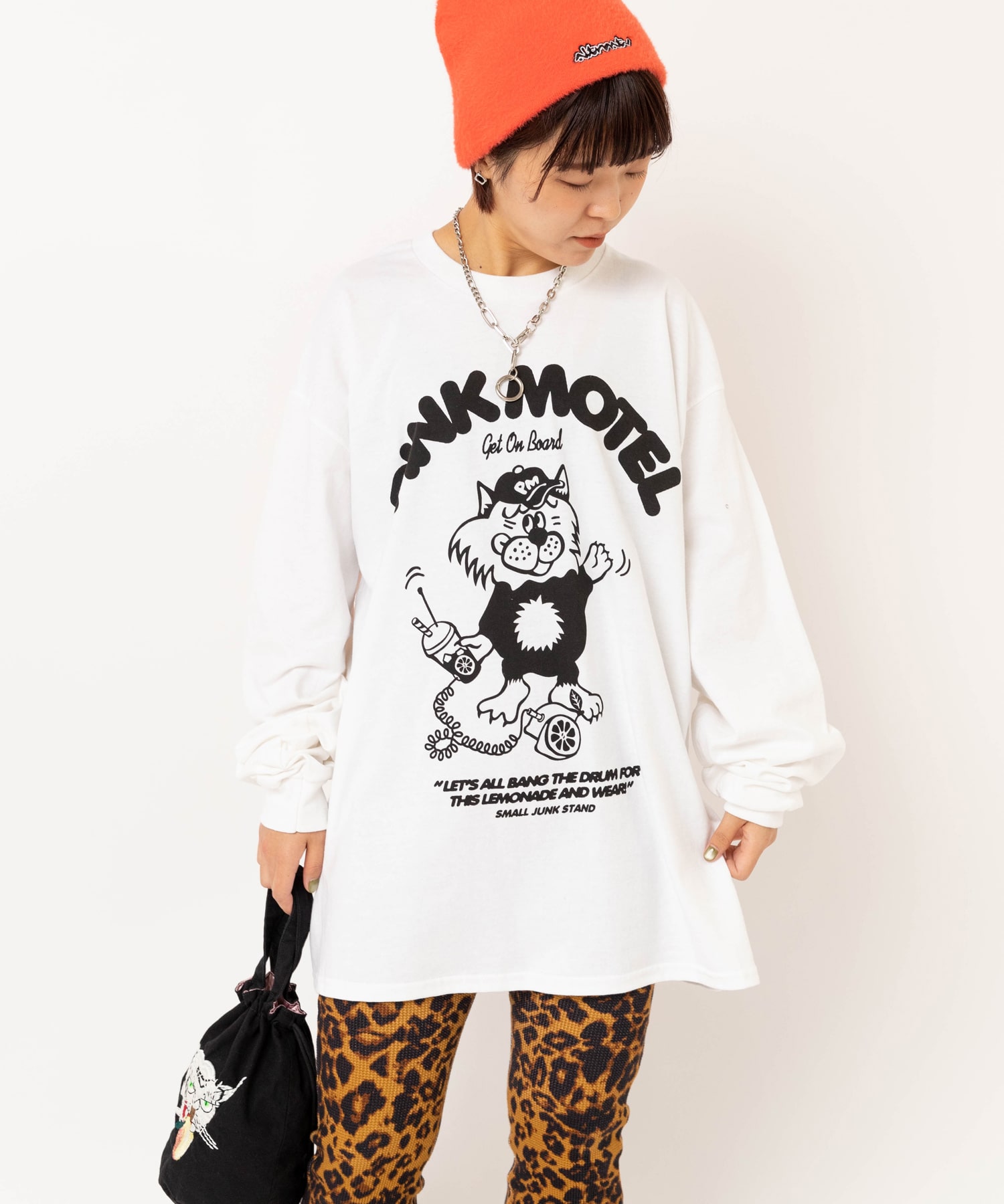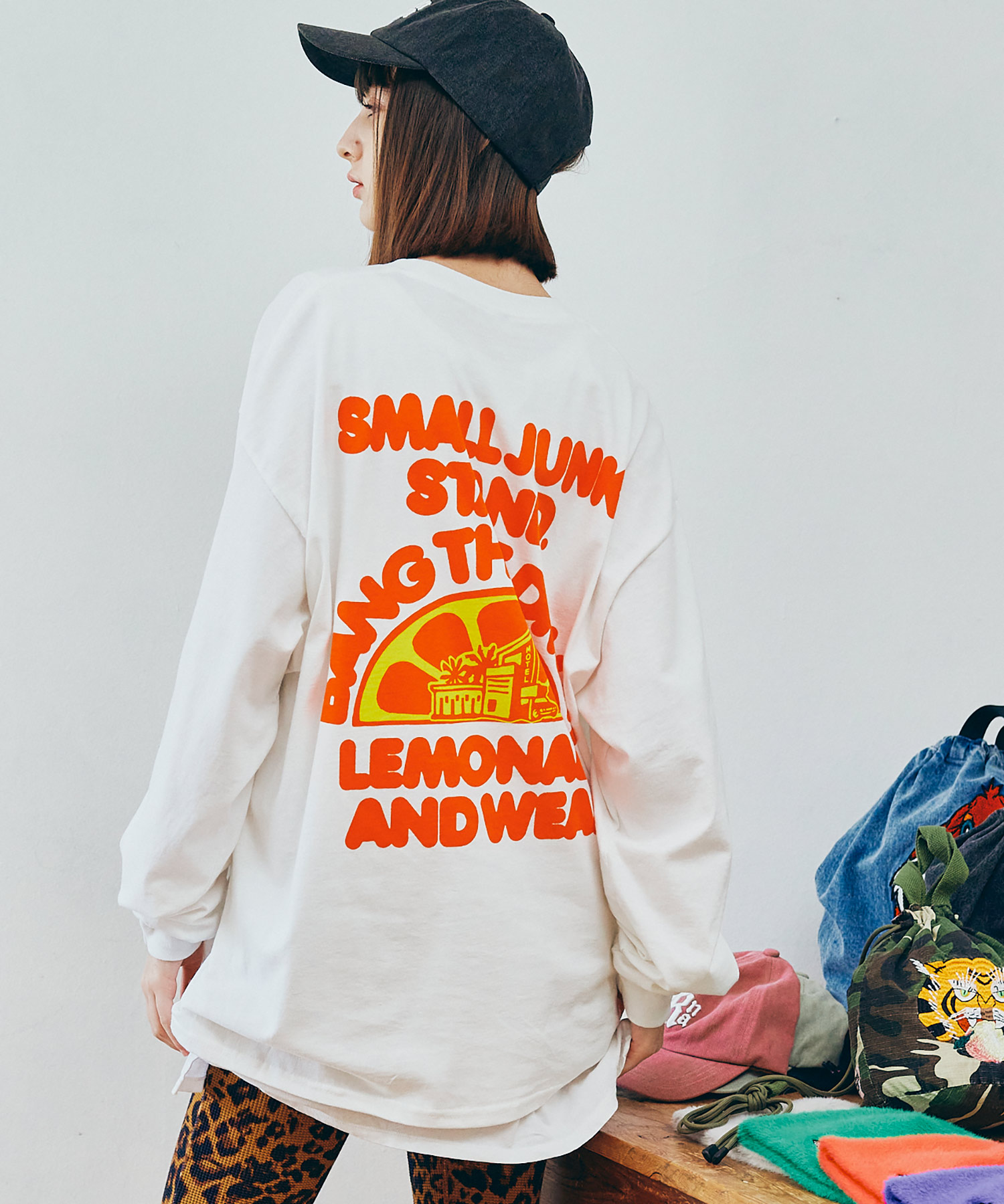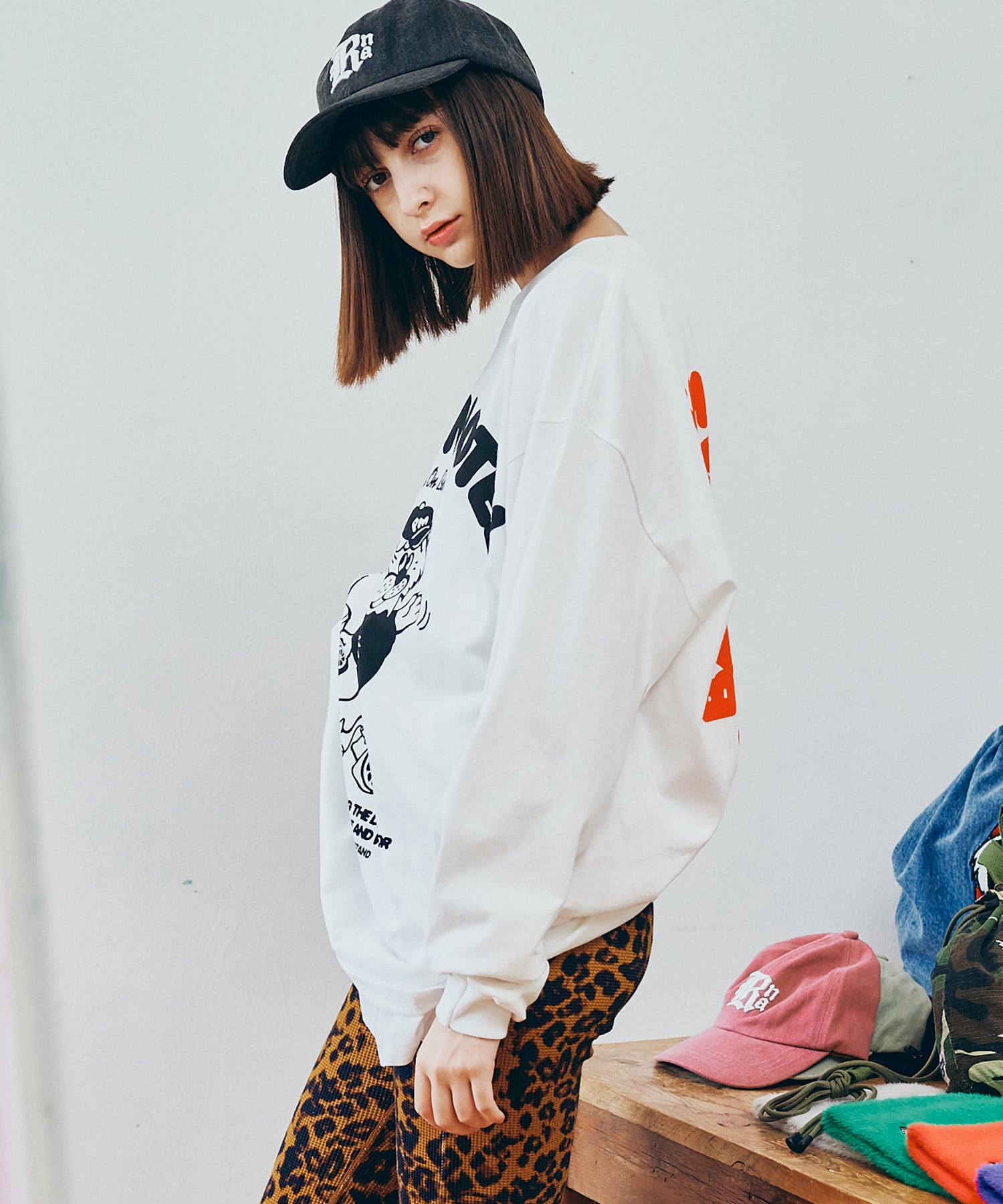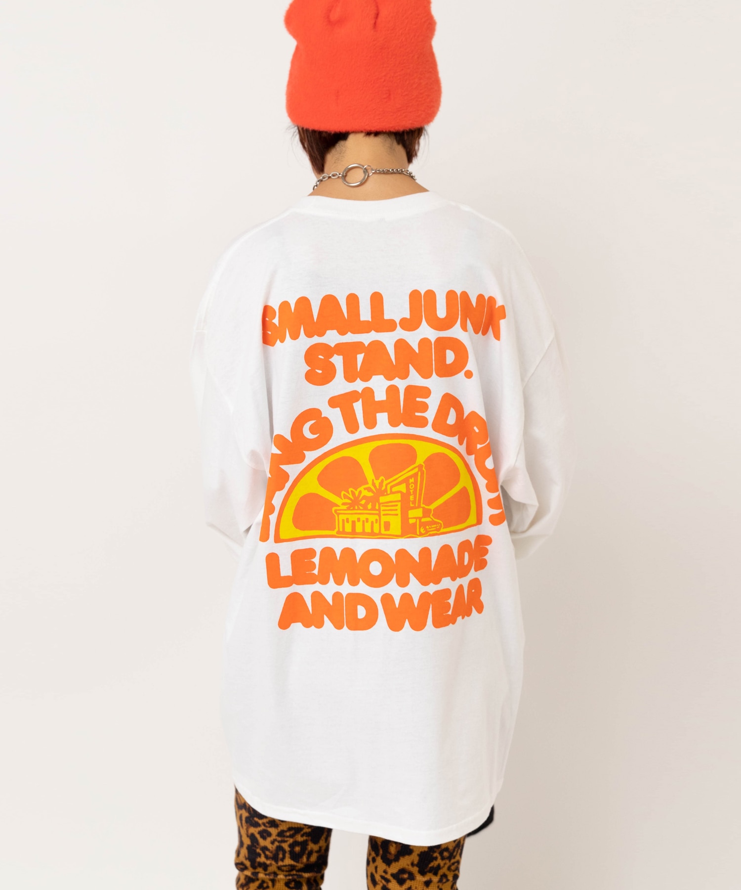 このロンTは、RNAとPINK MOTELの合同コレクションテーマ“SMALL JUNK STAND”(小さな屋台のユーズドショップ)を象徴するイメージアイテムです。ベーシックながらしっかりとした6ozのロンTをベースに、デザインにはイベントへの熱狂的なメッセージを込めました。