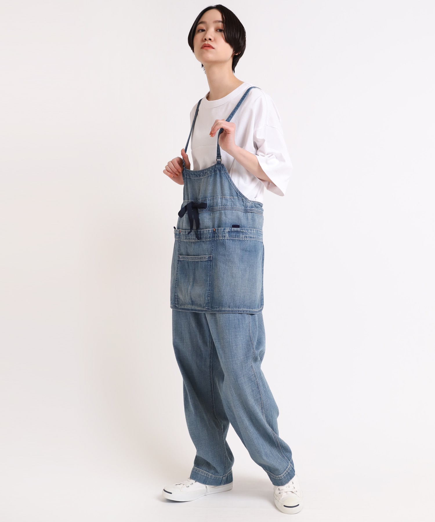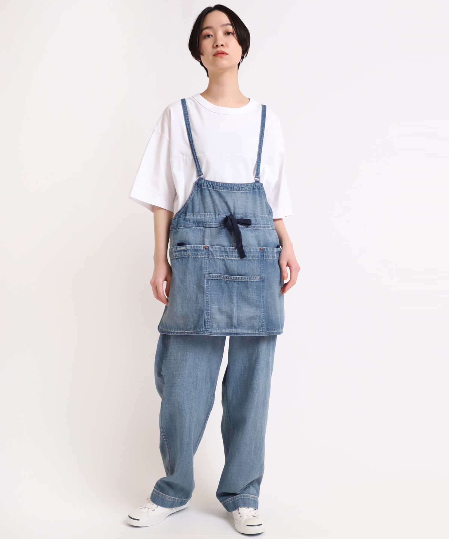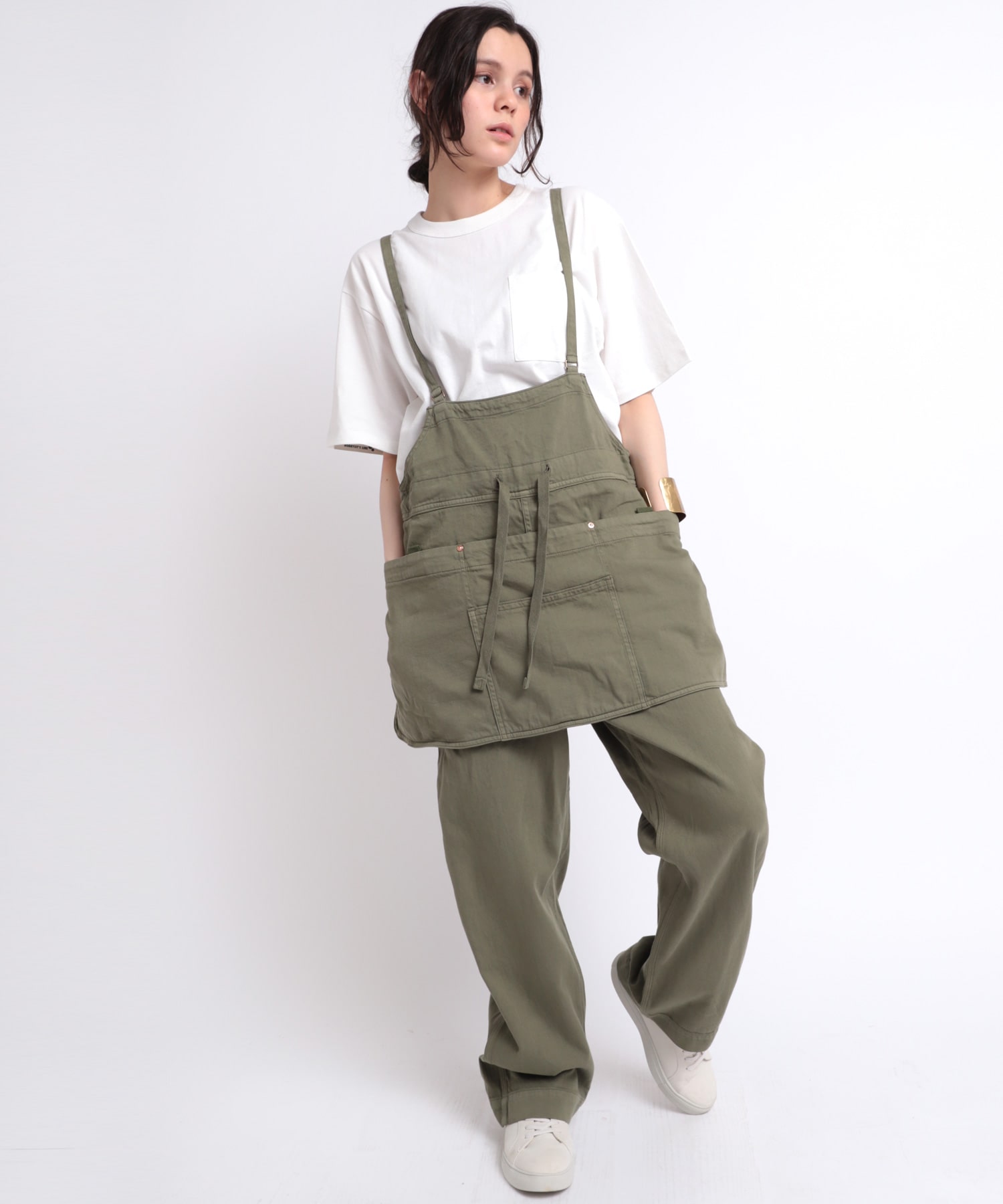 だぼっとしたラフな着用感が特徴のサスペンダーエプロンパンツ