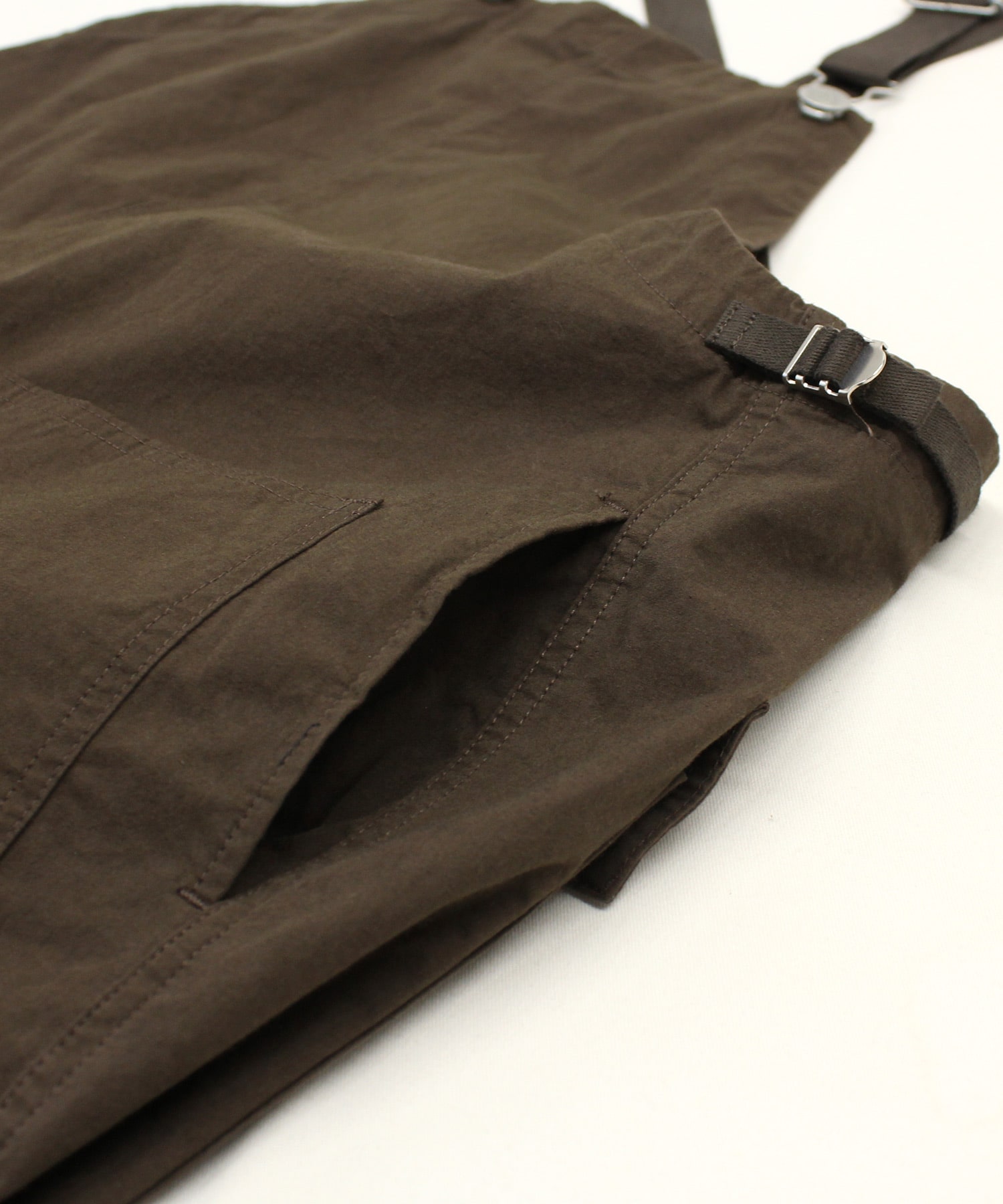 大きめのフロントポケット、ヒップのフラップ付きのポケット、見頃脇とパンツ裾口のサイズアジャスターなど、