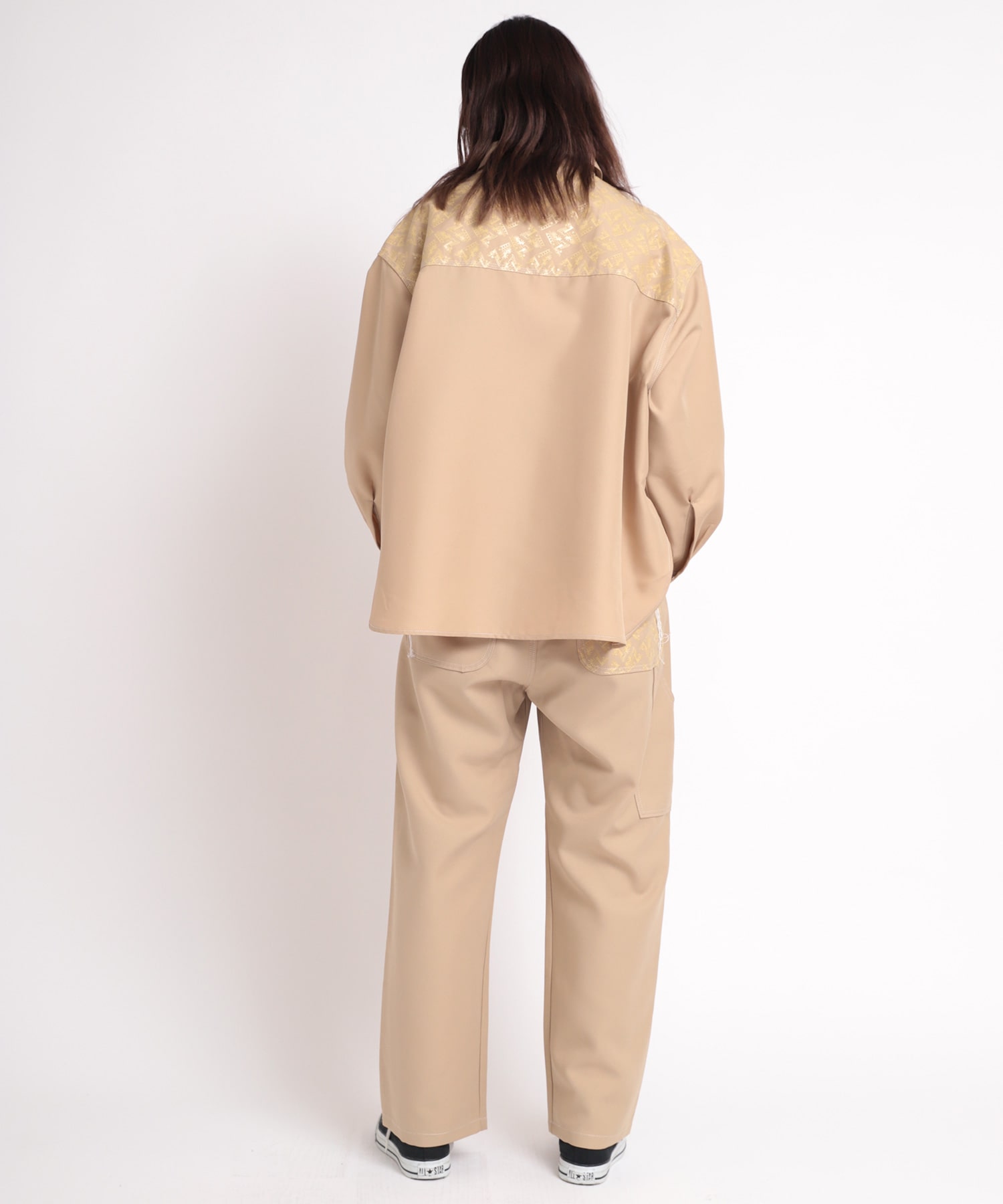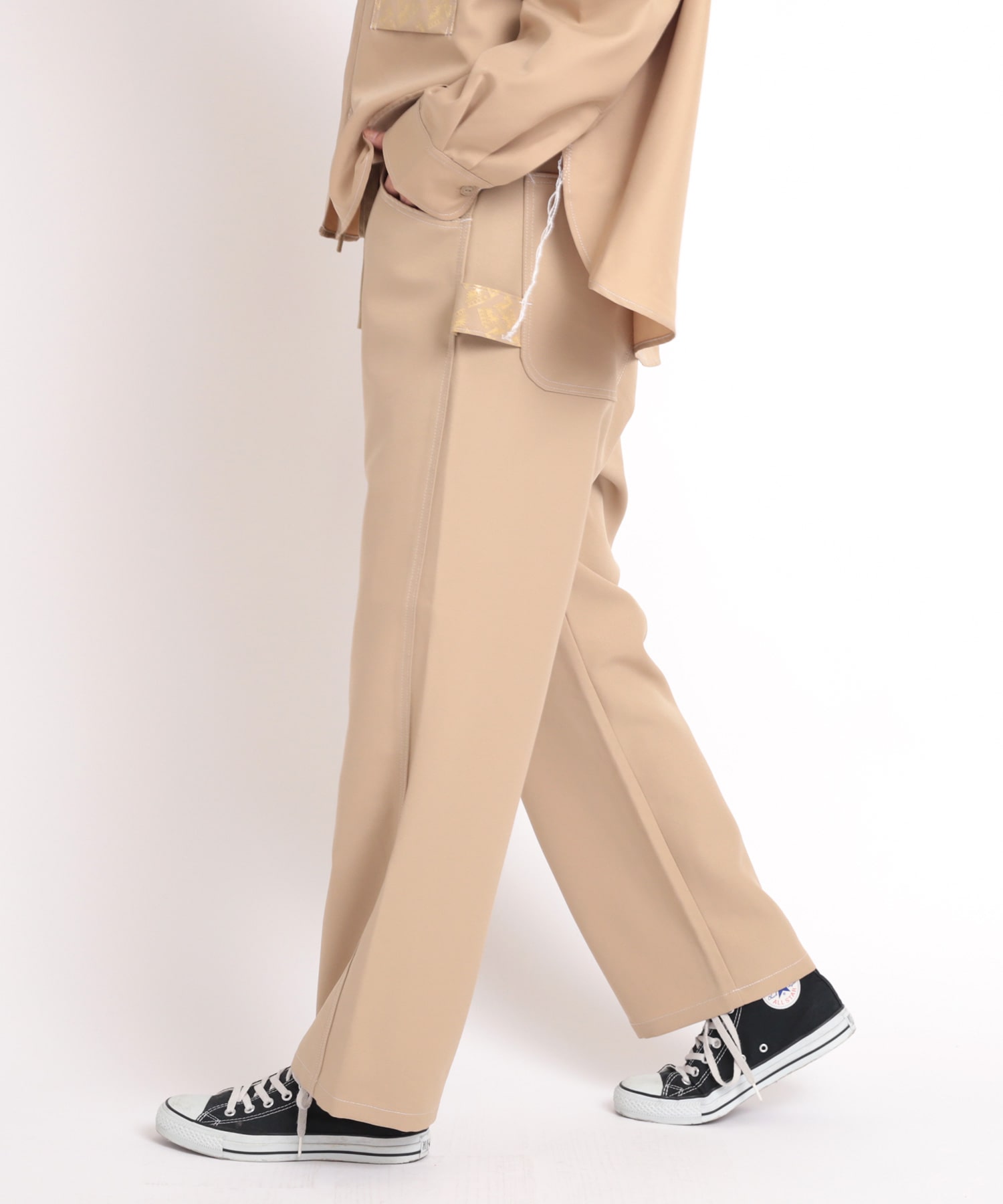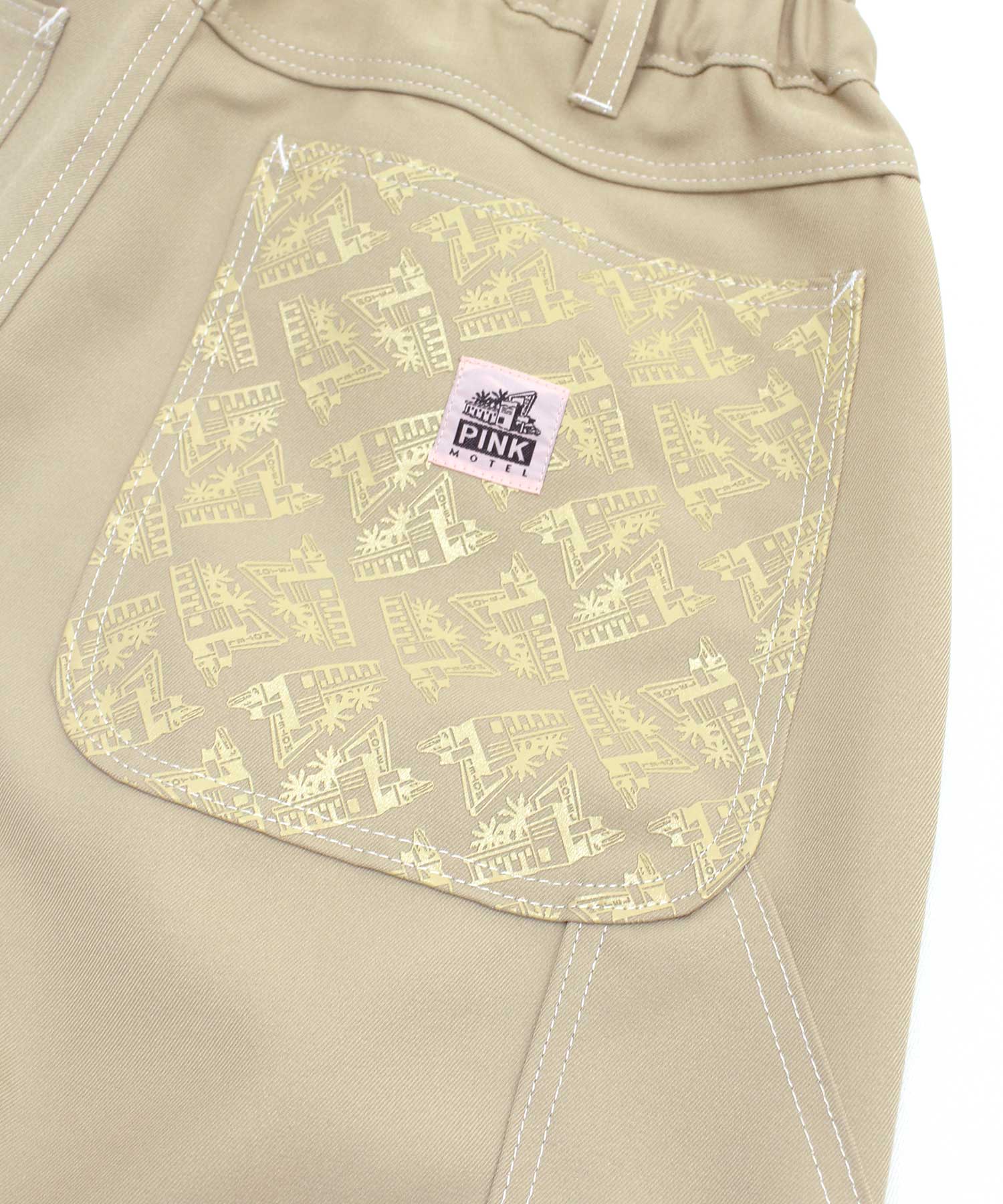 シルエットの良いパンツに、、部分的に光沢のあるプリントでPINK MOTELハウスマークモノグラムを入れました。