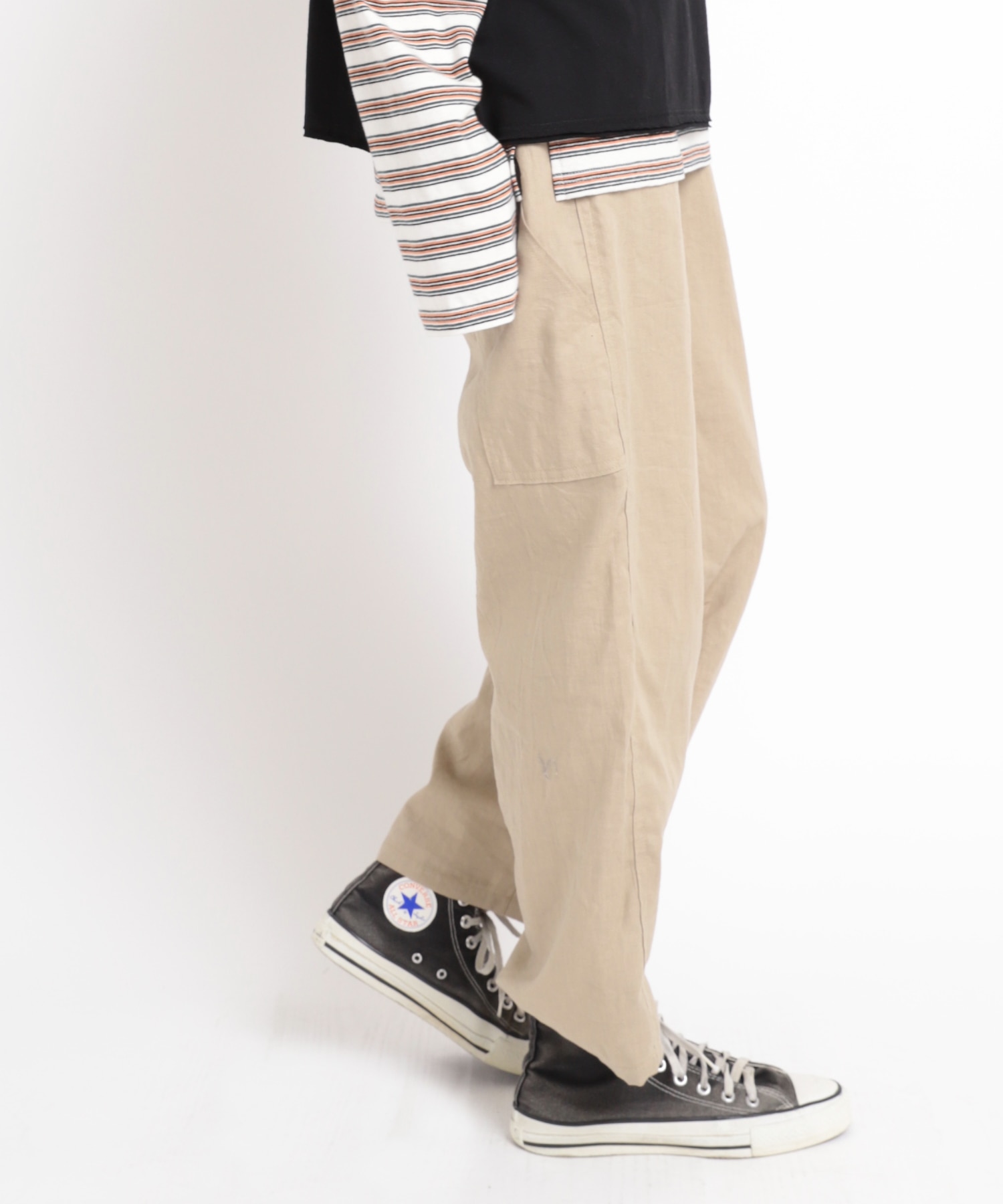 そのまま穿いても裾をロールアップしてもサマになるペインターパンツ。