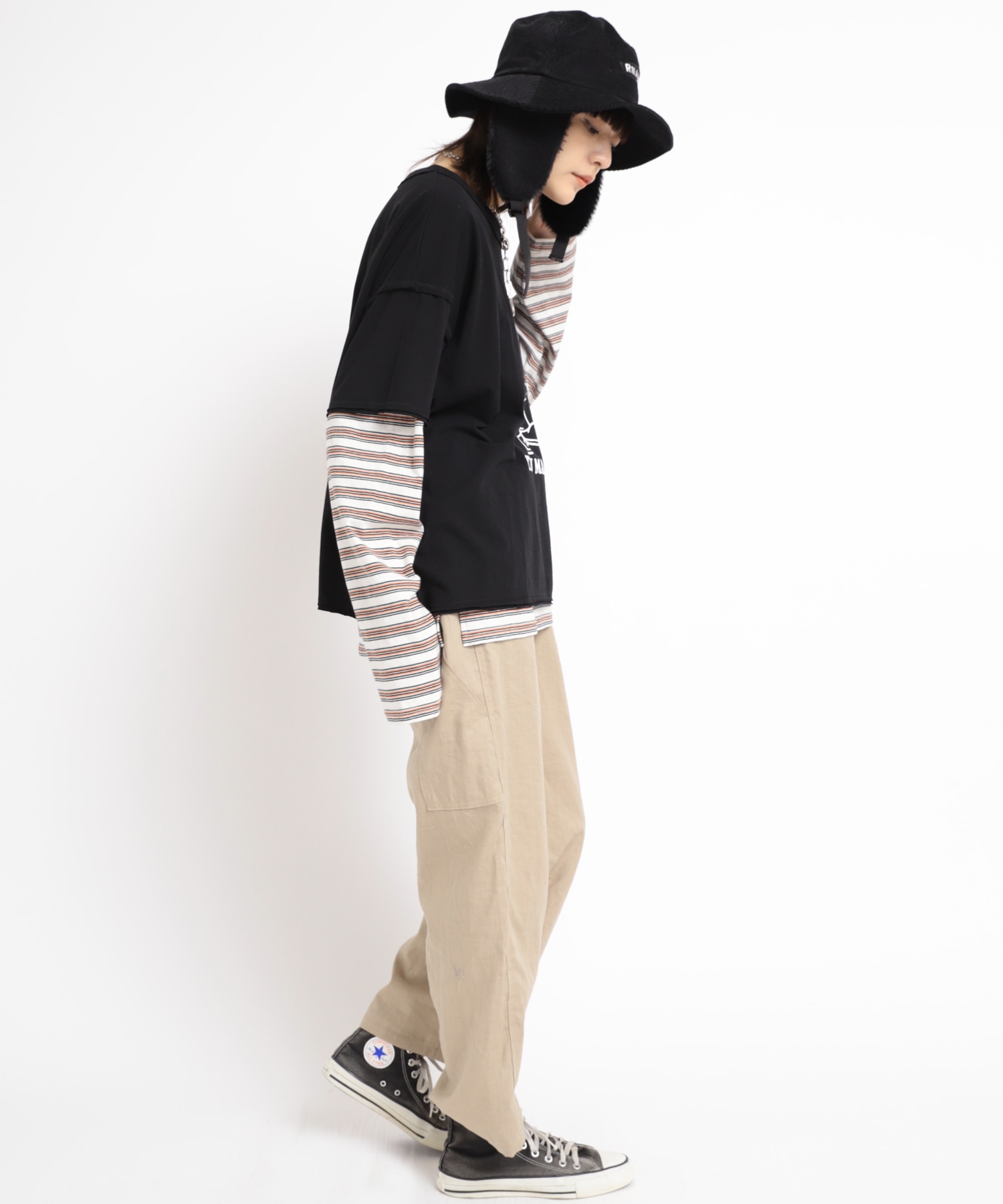 春夏は素足などに合わせて穿くと軽快にスタイリングに。