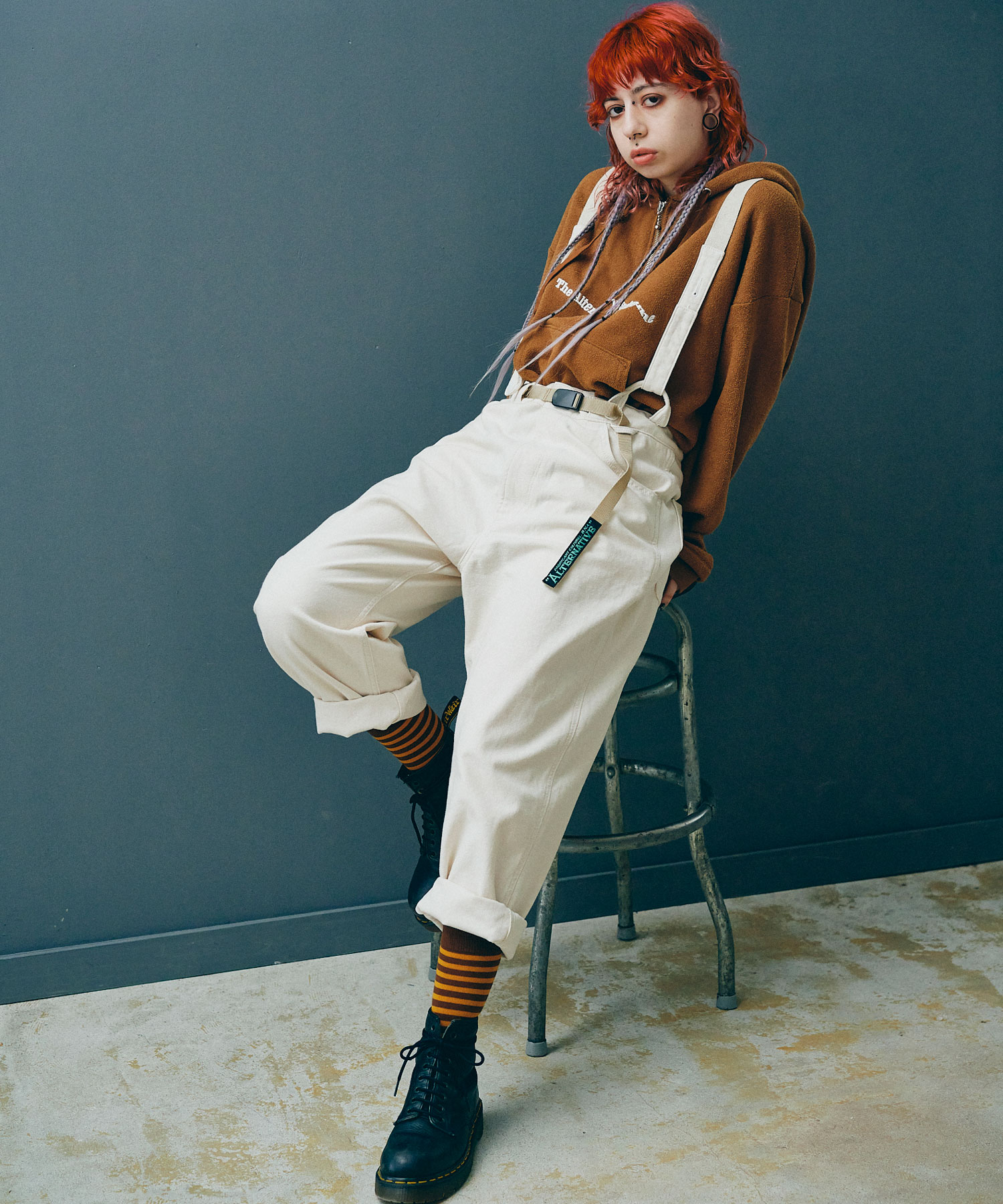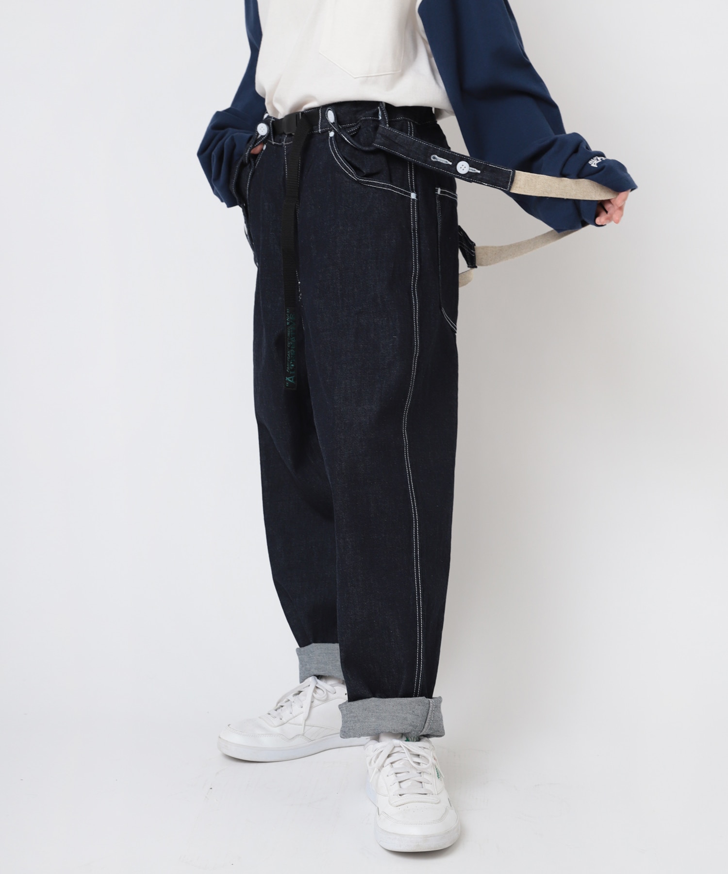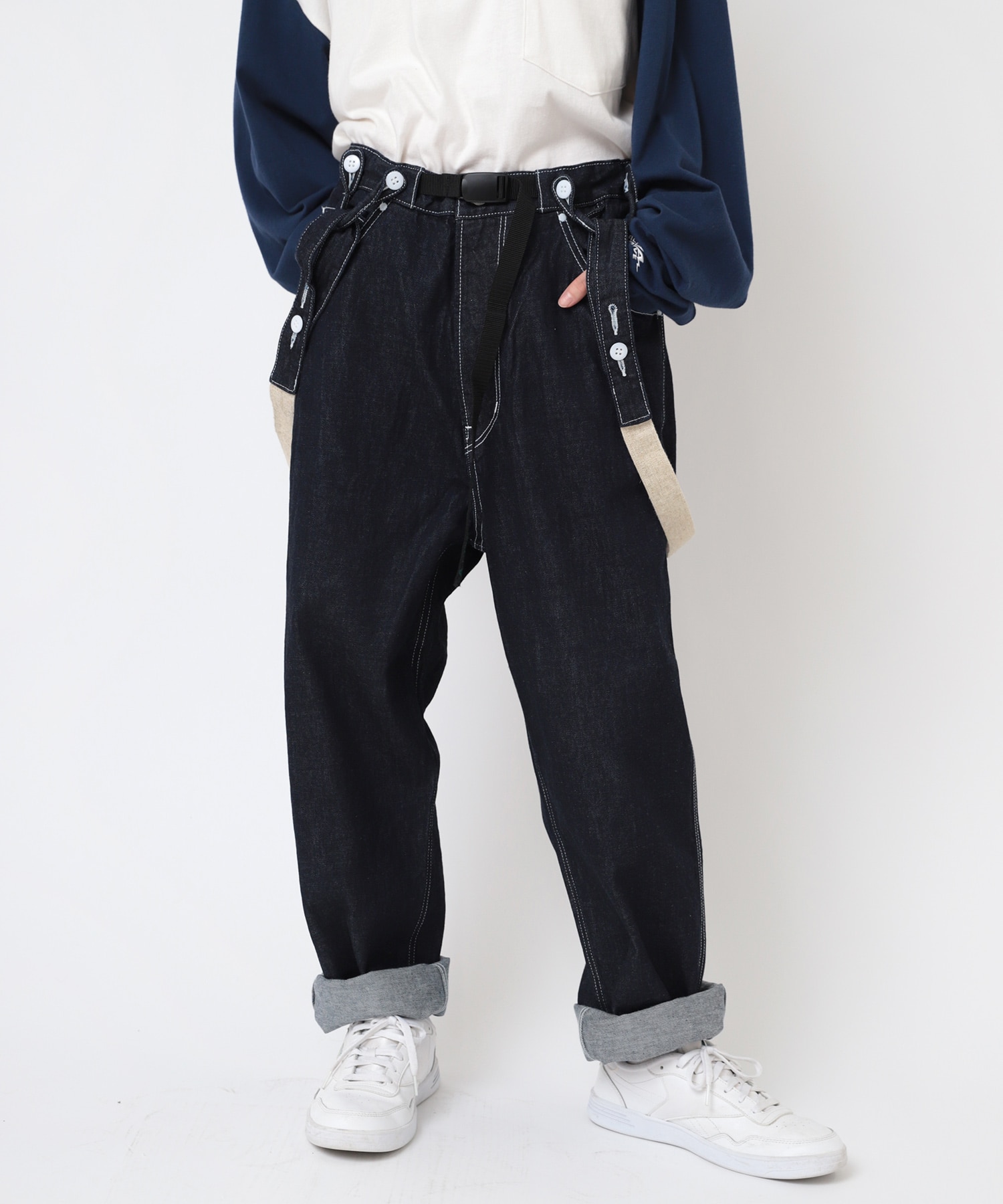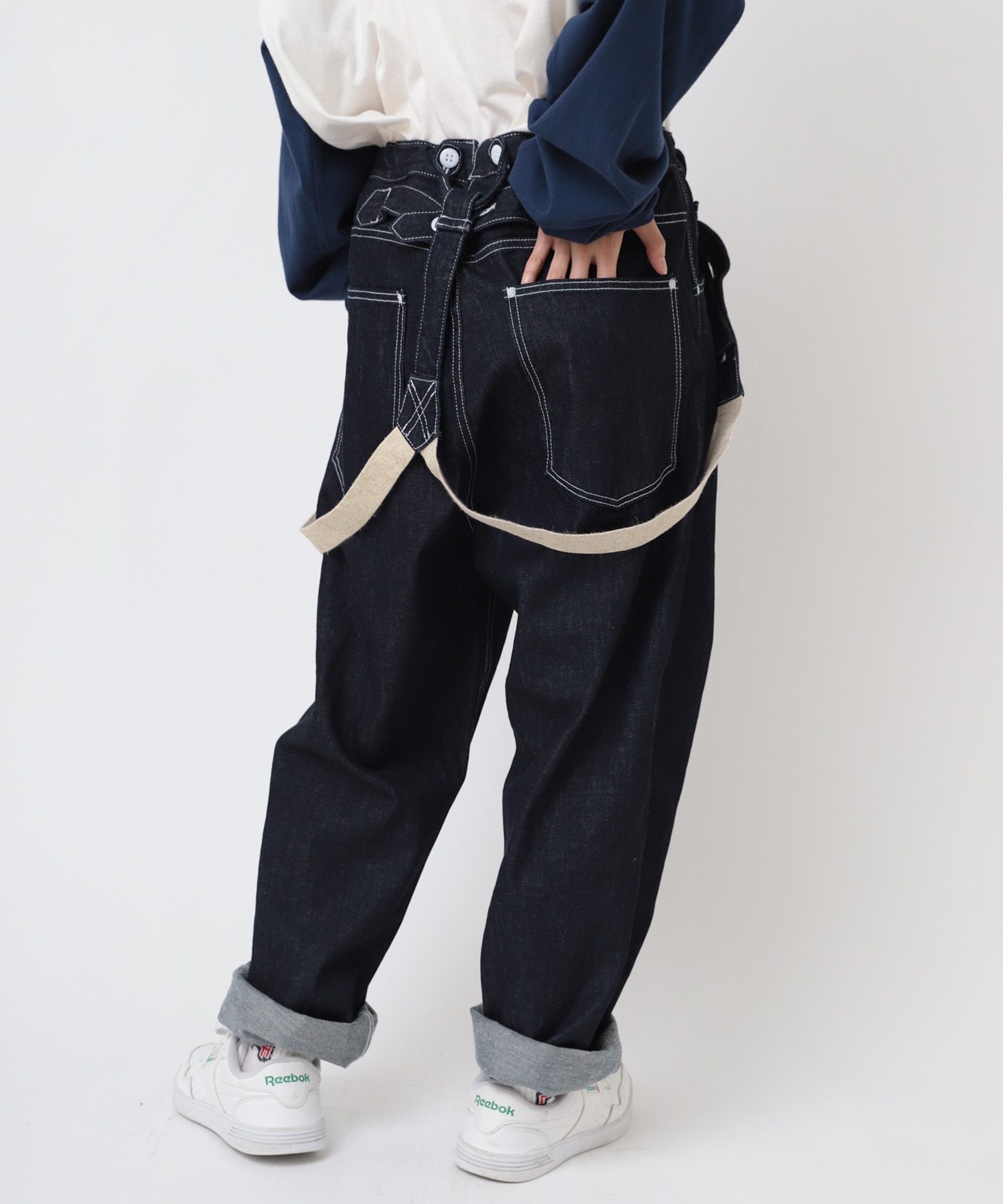 ほどよいルーズ感がポイントのサスペンダーワークパンツ