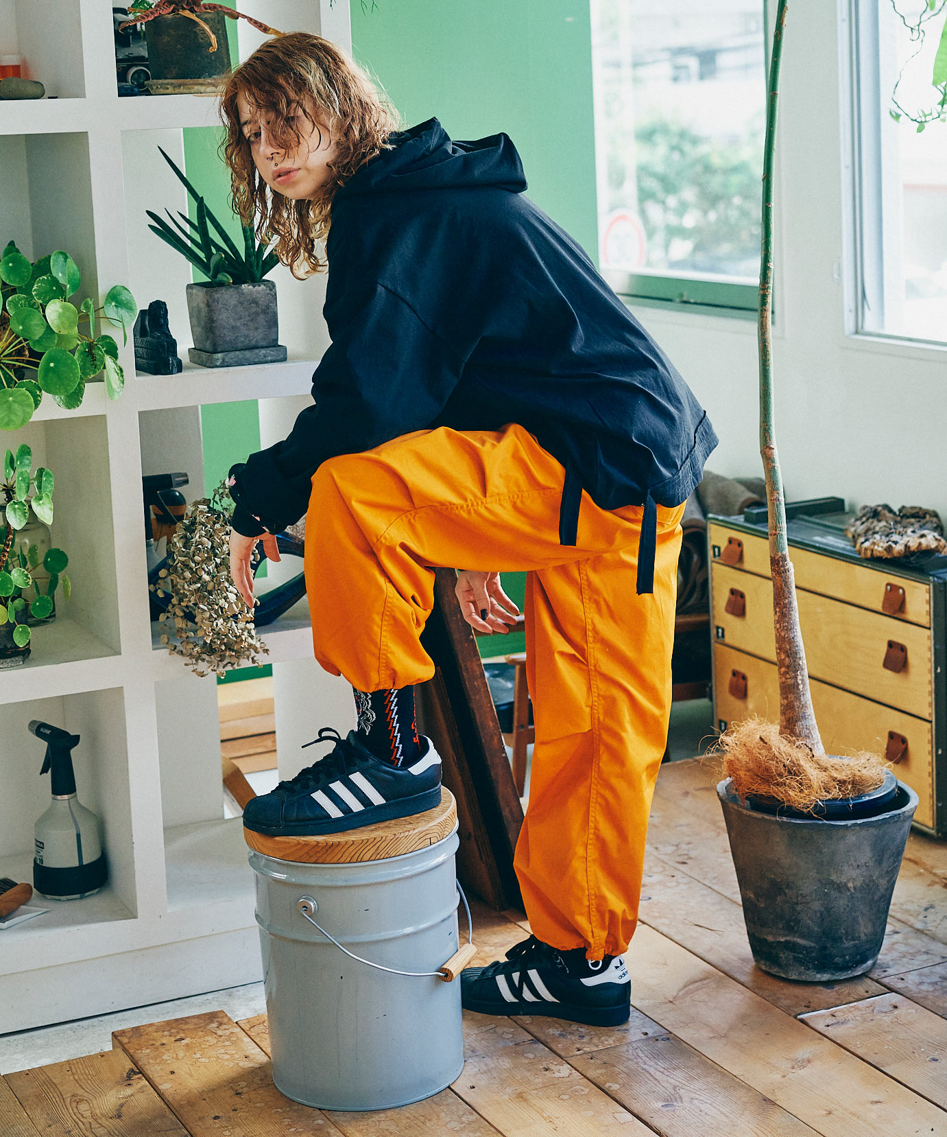 ミリタリーアイテムの重ね履き様のオーバーパンツをイメージしてデザインしたイージーパンツ