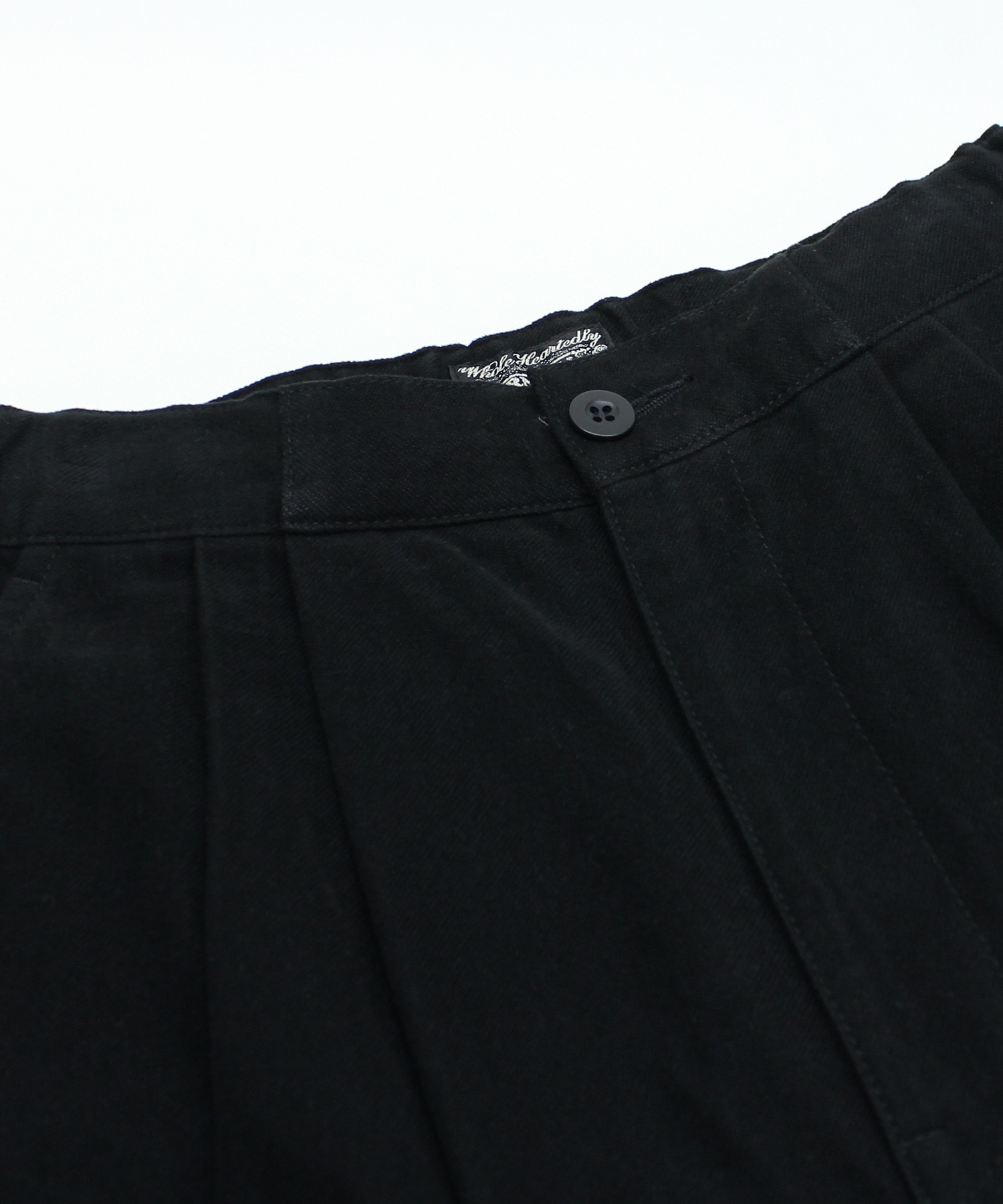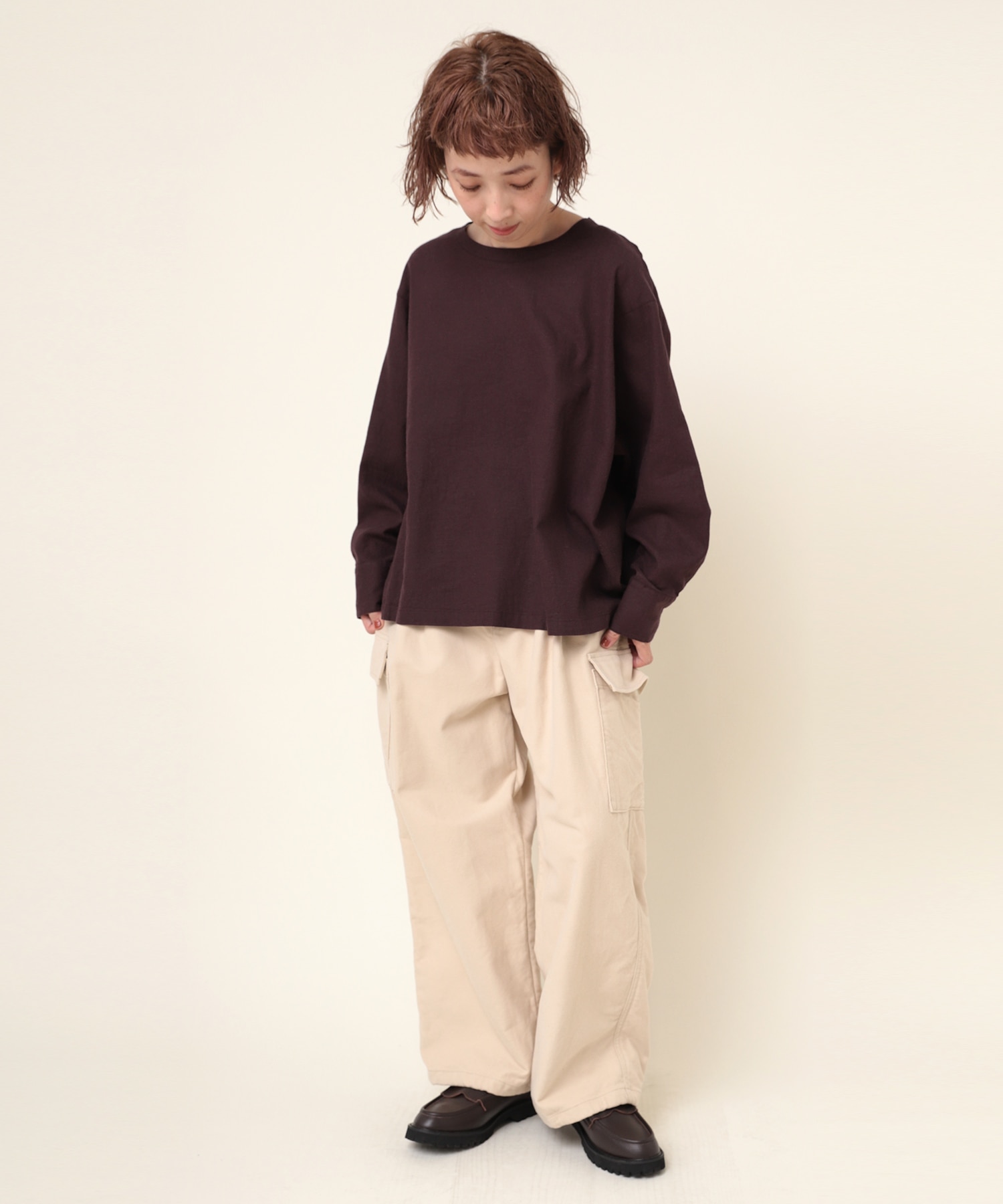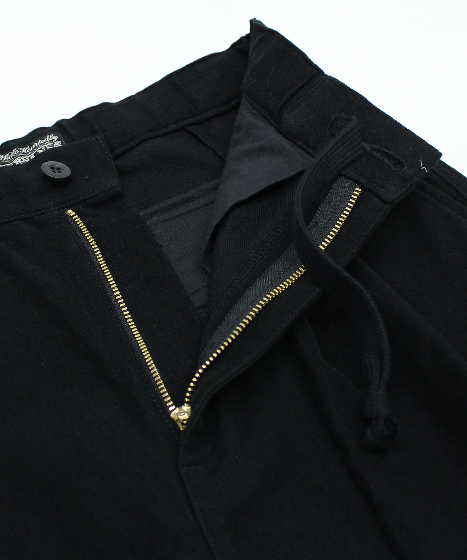 表面変化に富んだ組織で織り上げたドビークロスに毛足の長い起毛を施された生地を使ったカーゴパンツです。