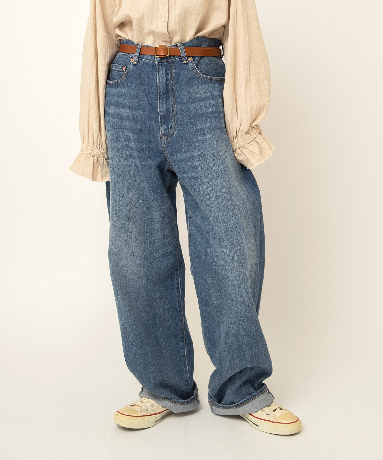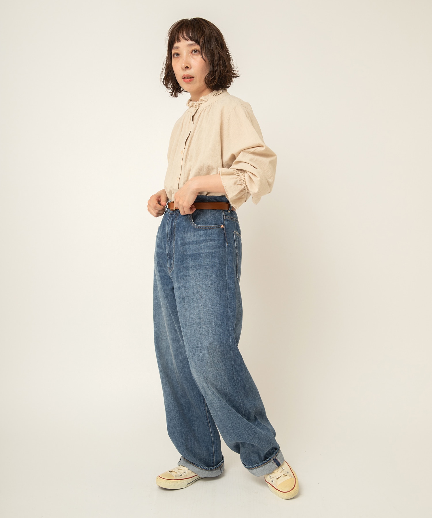 腰回りに特にゆとりをもたせたストレートシルエットで、丈はフルレングスです。