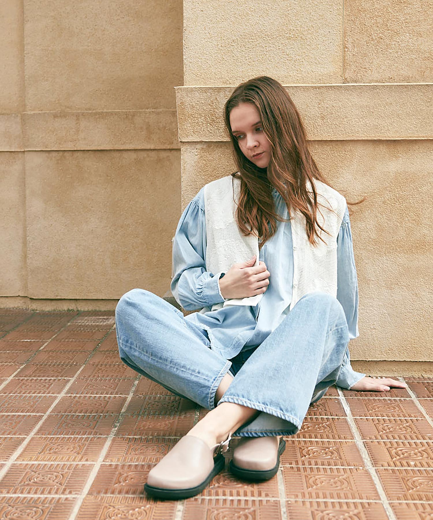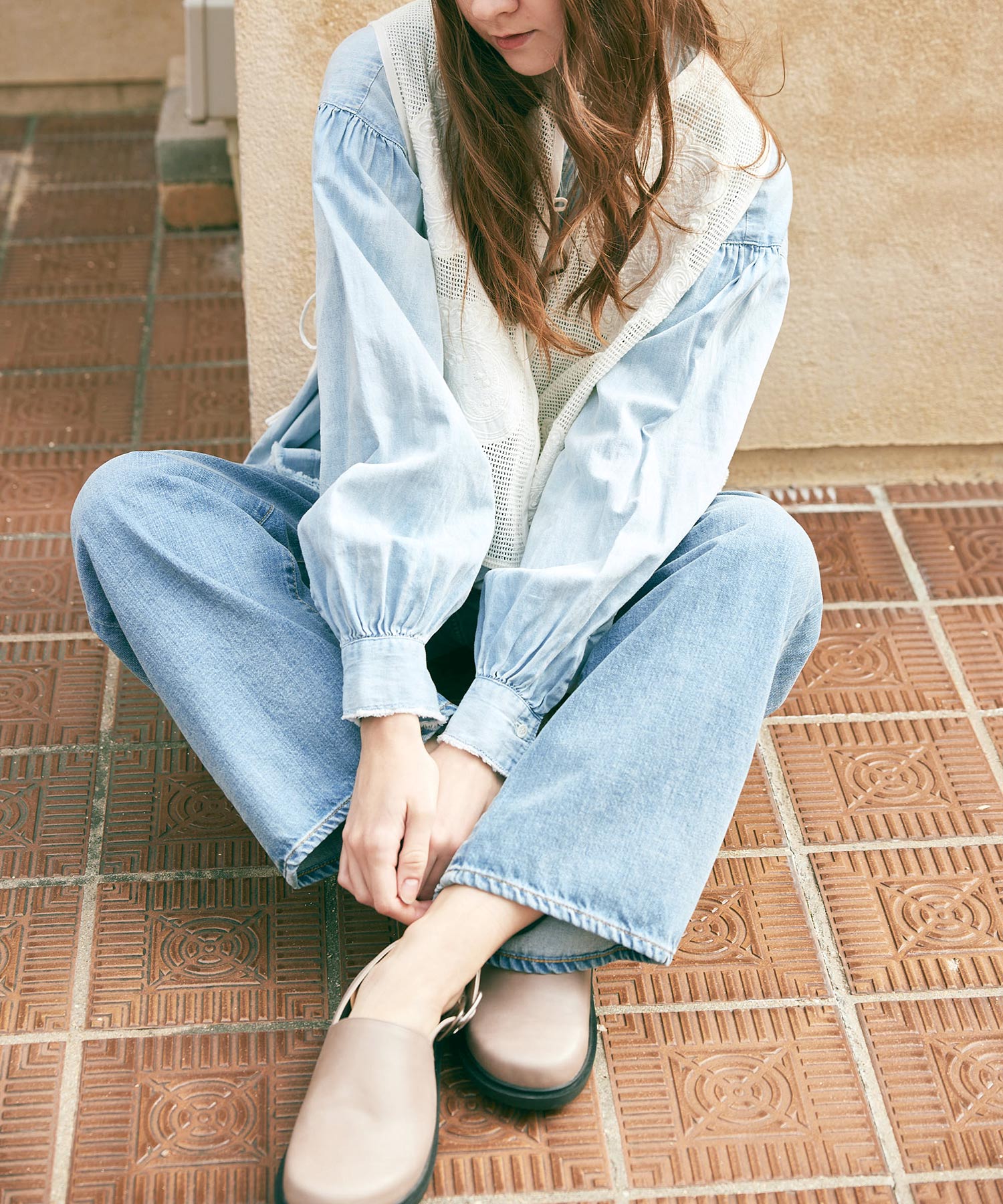 身長に合わせてロールアップや丈上げが可能で、ワンクッションを持たせたい場合にも対応できるよう、少し長めに設定しています。