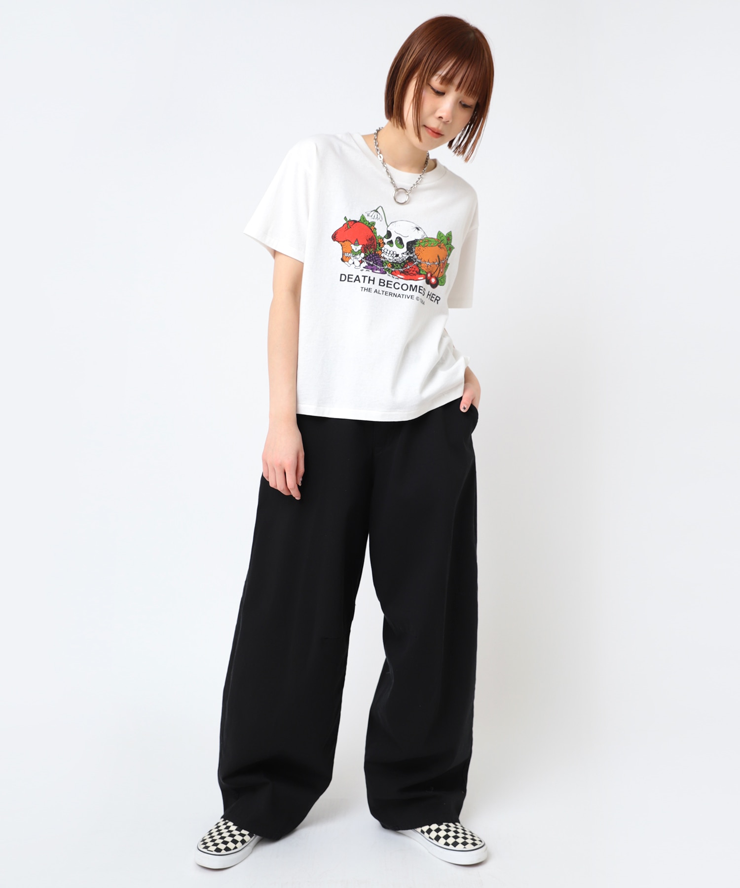 腰で落として履けるようにやや大き目なウエストサイズとボリュームのあるシルエットがストリート感あふれるアイテム。
