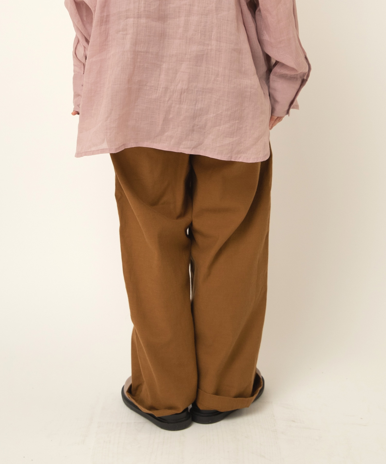 ジャストウエストよりもやや落として、腰履き気味に履いていただくのがおすすめの着こなしです。