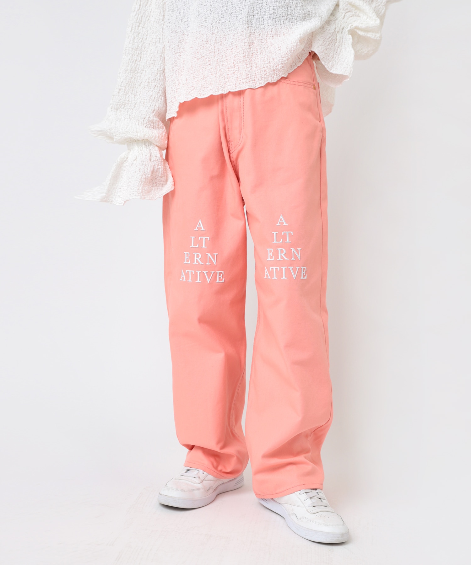 膝には立体感のある刺繍を配置しました。軽装になる季節に爽やかで個性のあるボトムスとして活躍できます。