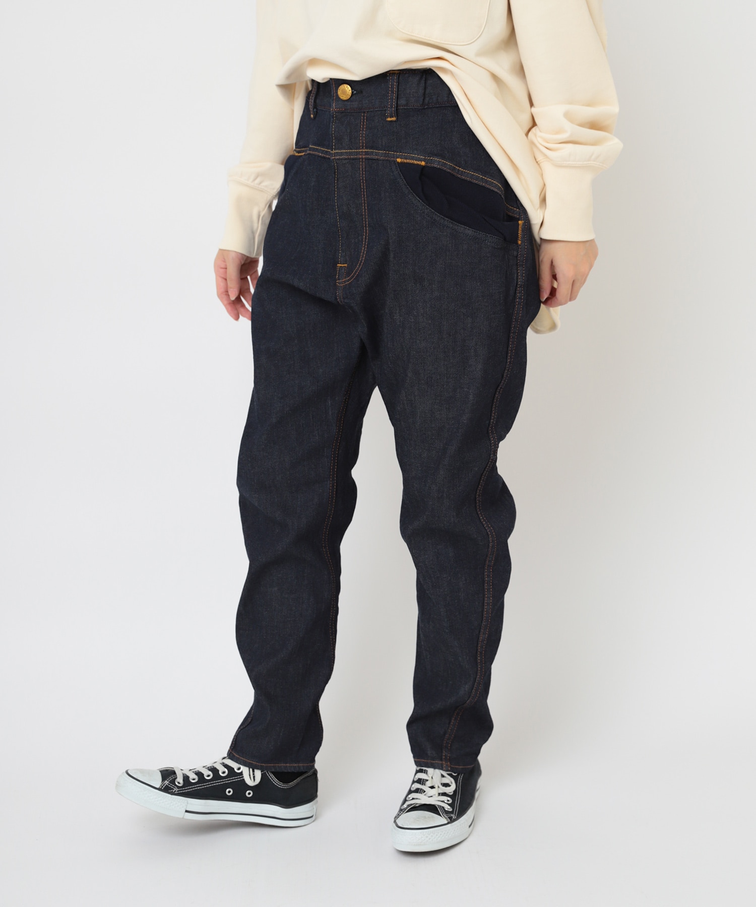 ロークロッチキャンパーパンツをベースに調整したロークロッチスリムシルエットです。