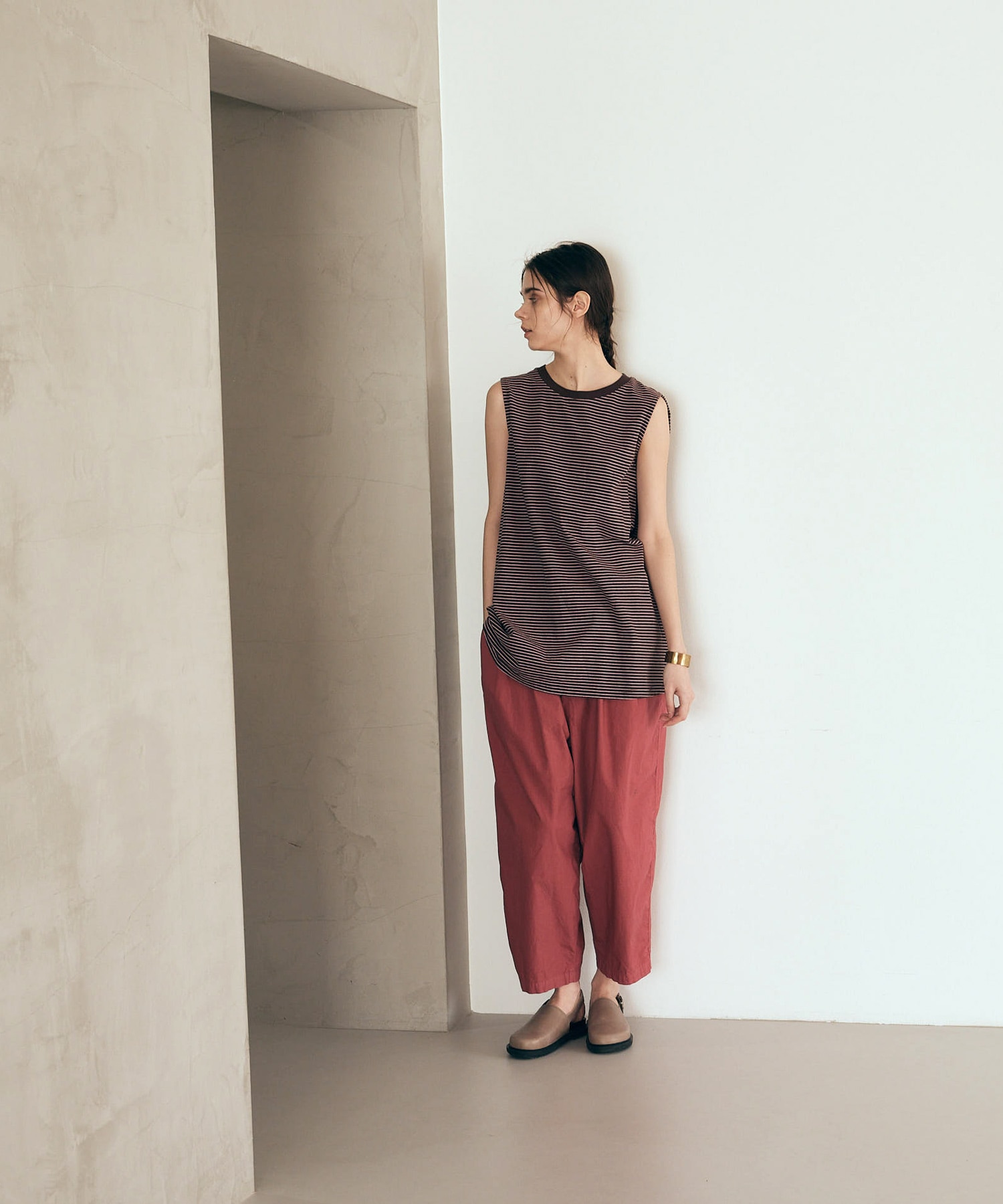 レングスが短めなので、いつもとは違うバランス感覚になり、モードなイメージで履いていただけます。
