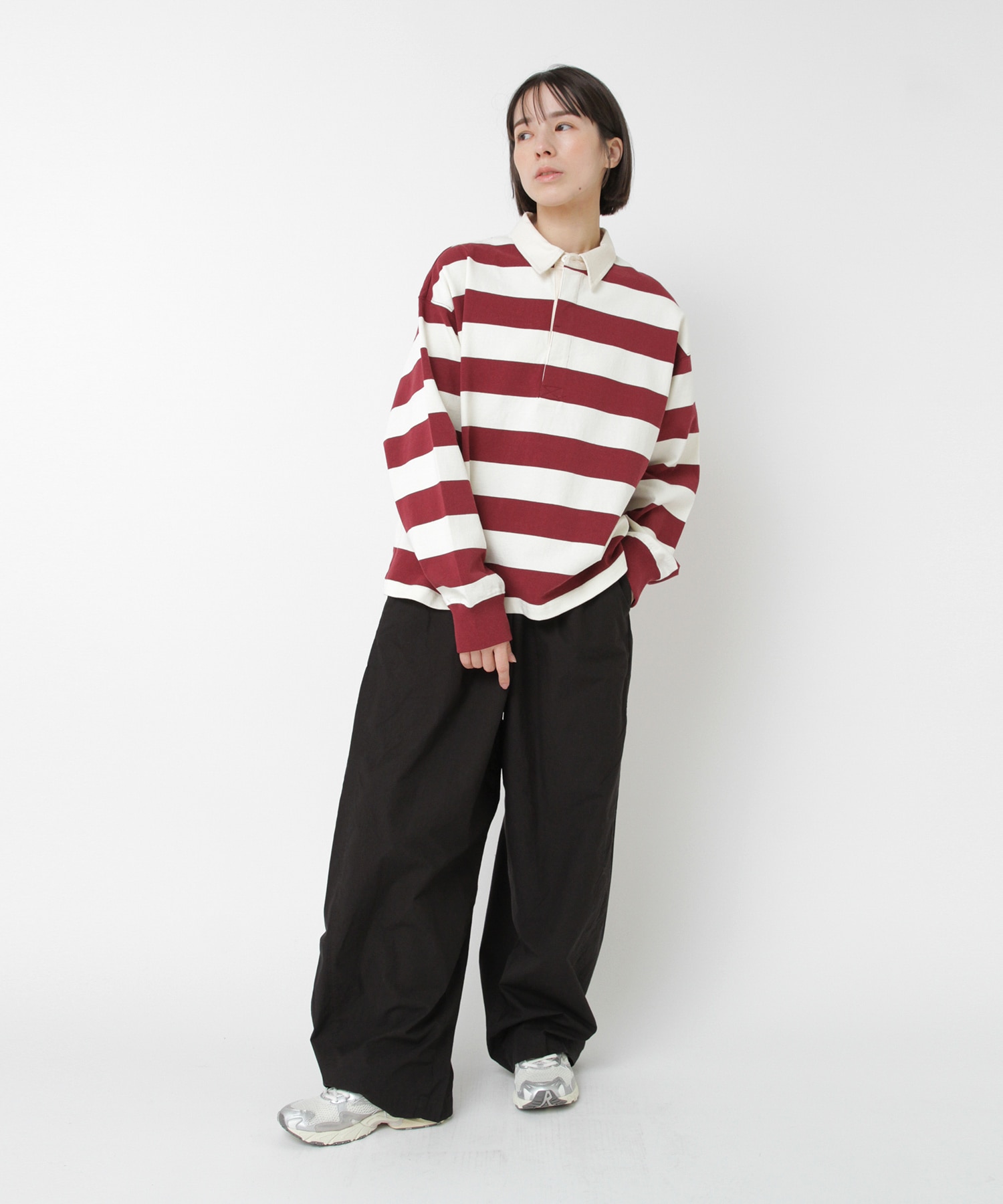 ワイドストレートシルエットの程良いボリューム感の製品染めパンツ