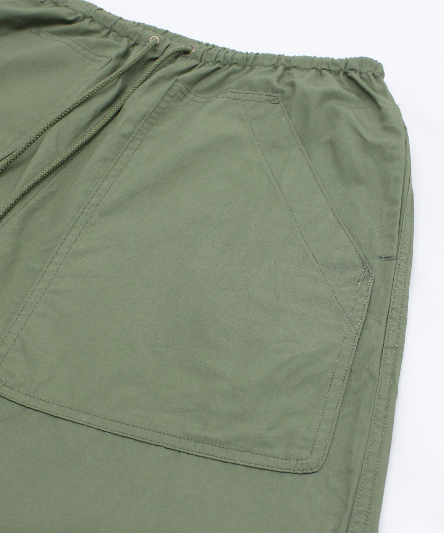 綿麻のウェザーを使用したパンツで前後に大きなパッチポケットがついています。