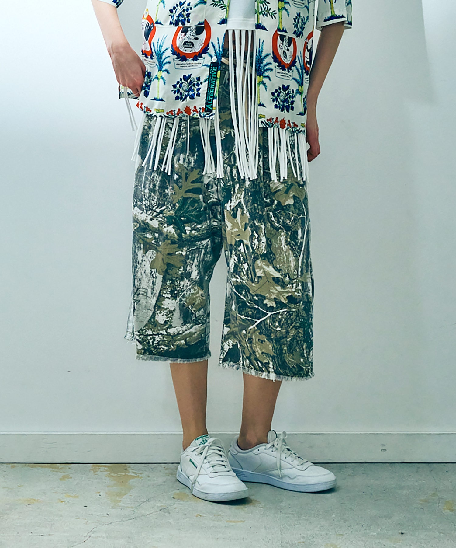 定番的な5ポケットジーンズをベースにパターンで変化をつけたクロップドパンツ