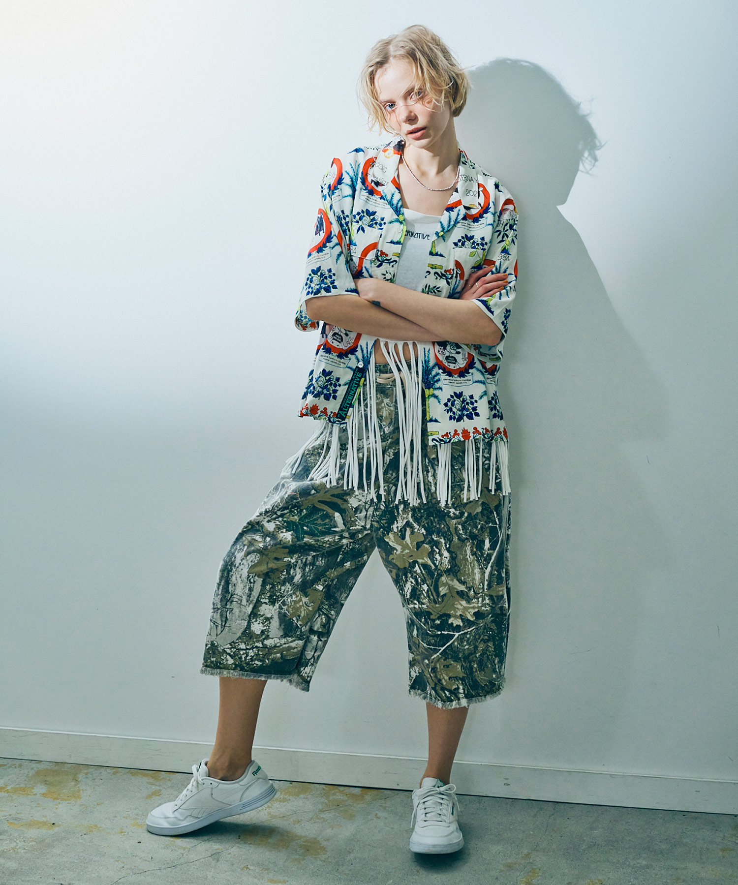 やや短いクロップド丈なのですっきりと着用していただけます。