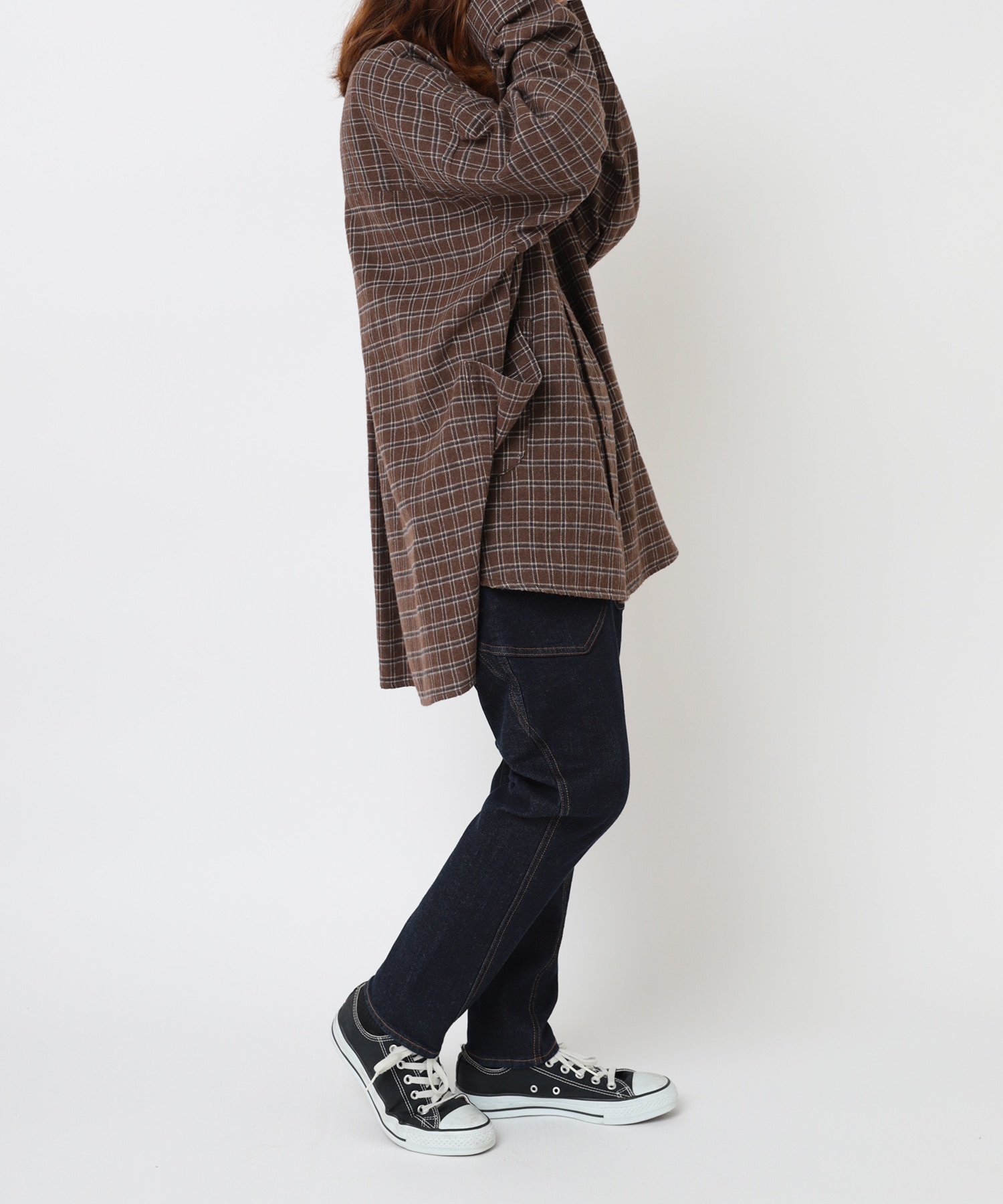程よいゆとりが身体のラインを拾わず、気になる太ももや腰回りは視覚効果を意識したポケットデザインでさりげなくカバーします。