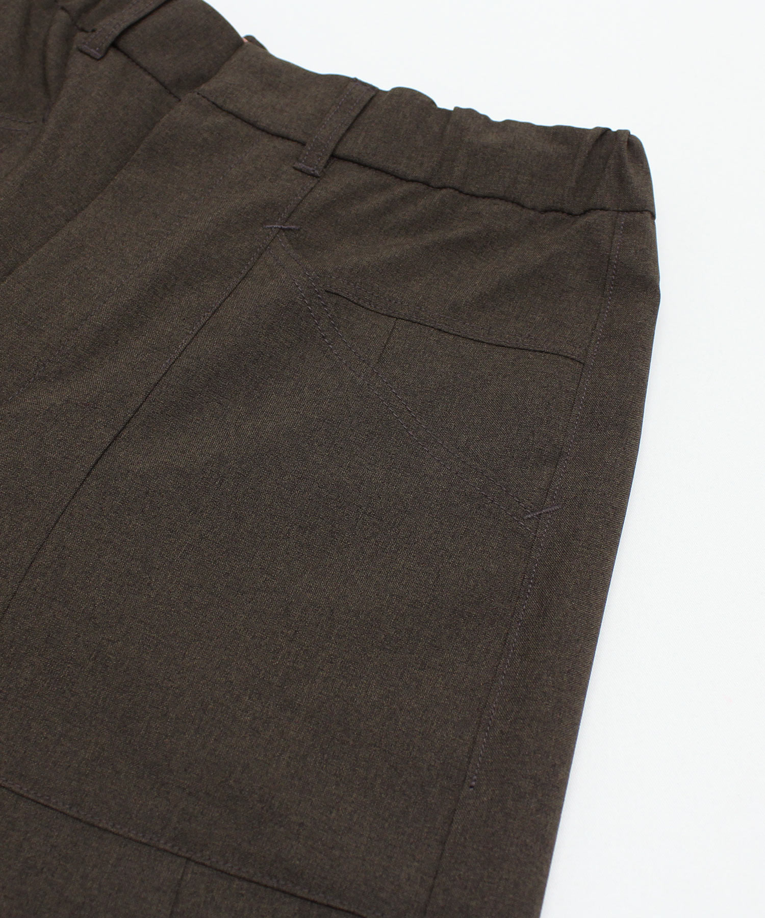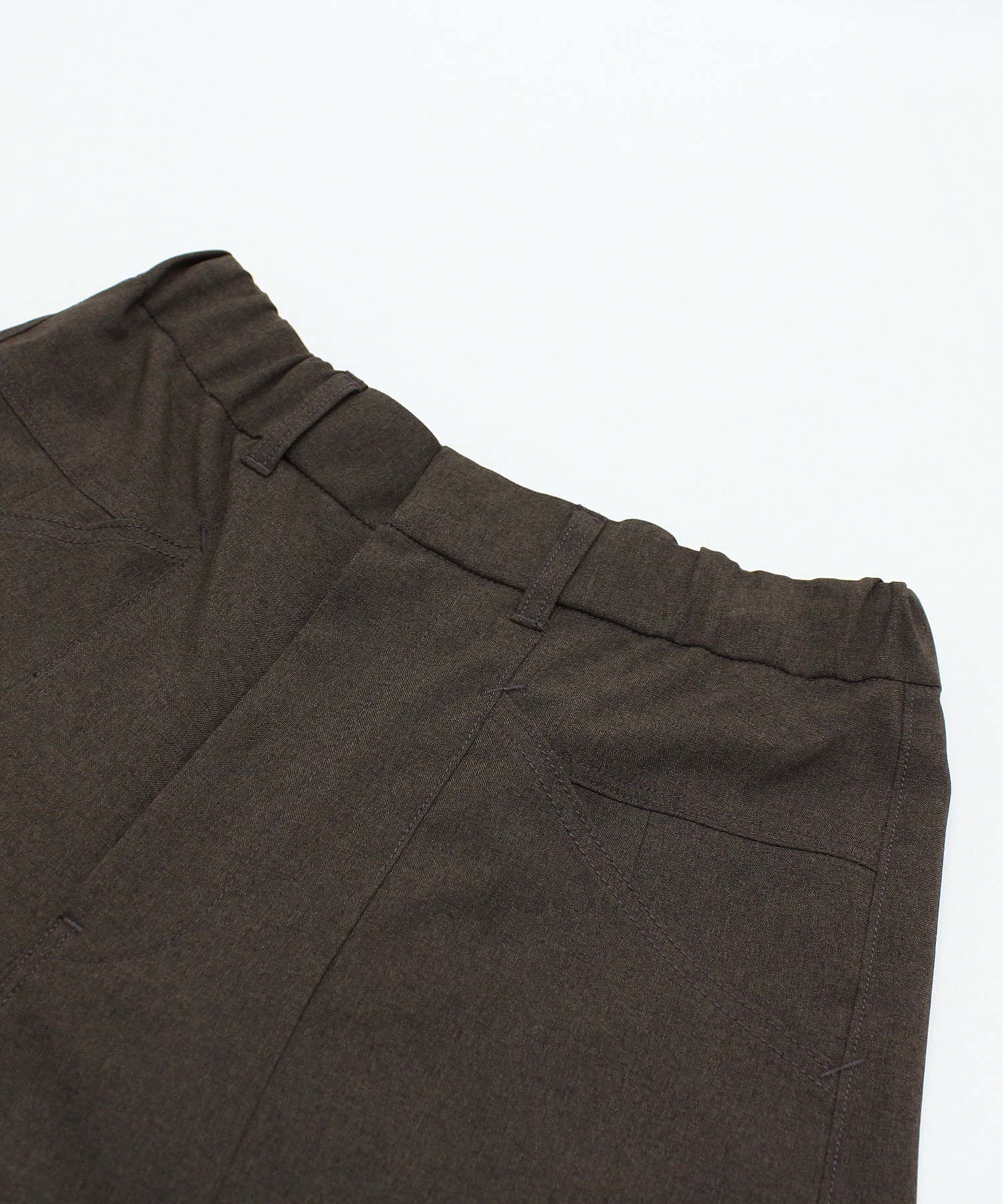 ウエストはリラックス感のあるゴム仕様。内側のドロストコードでサイズ調整ができ、幅広い体型に対応し、ジャストウエストでの着用がおすすめです。