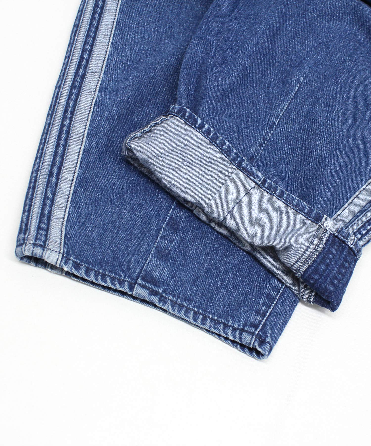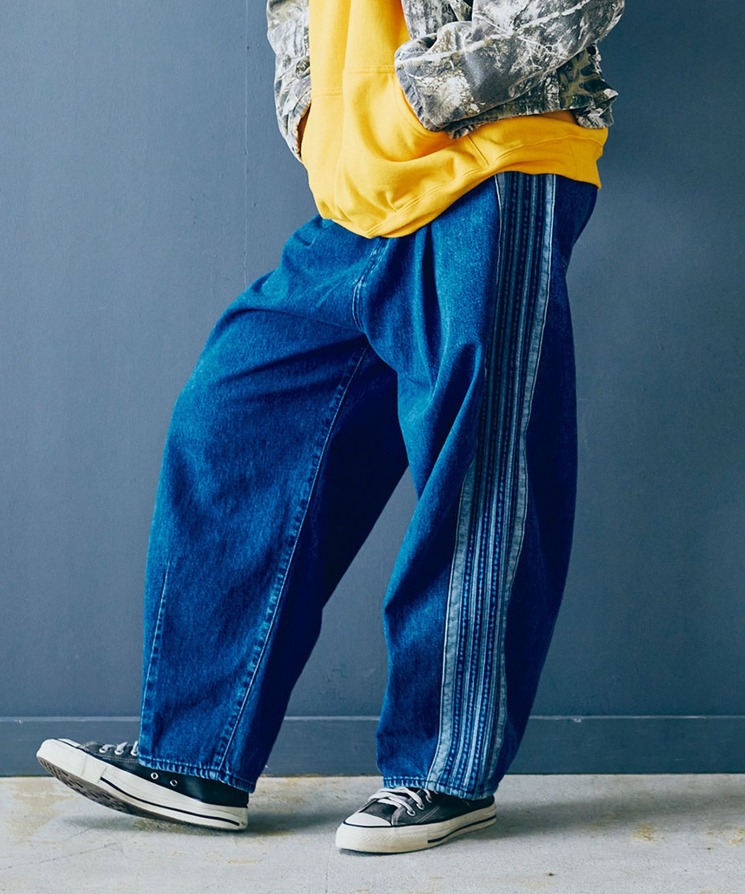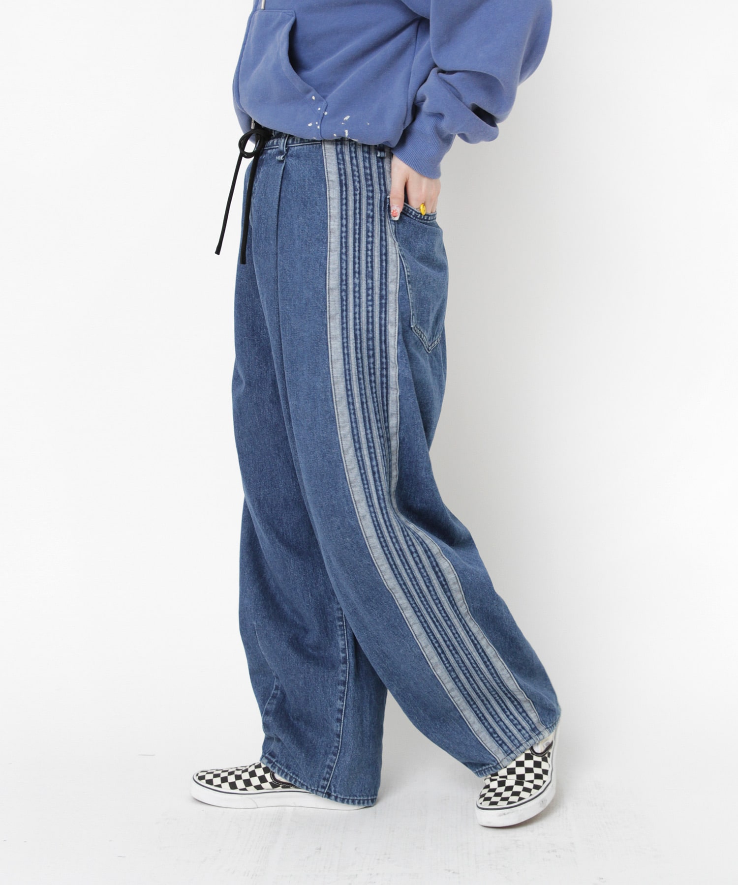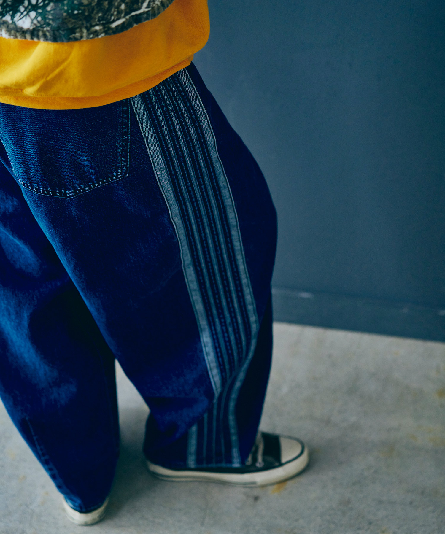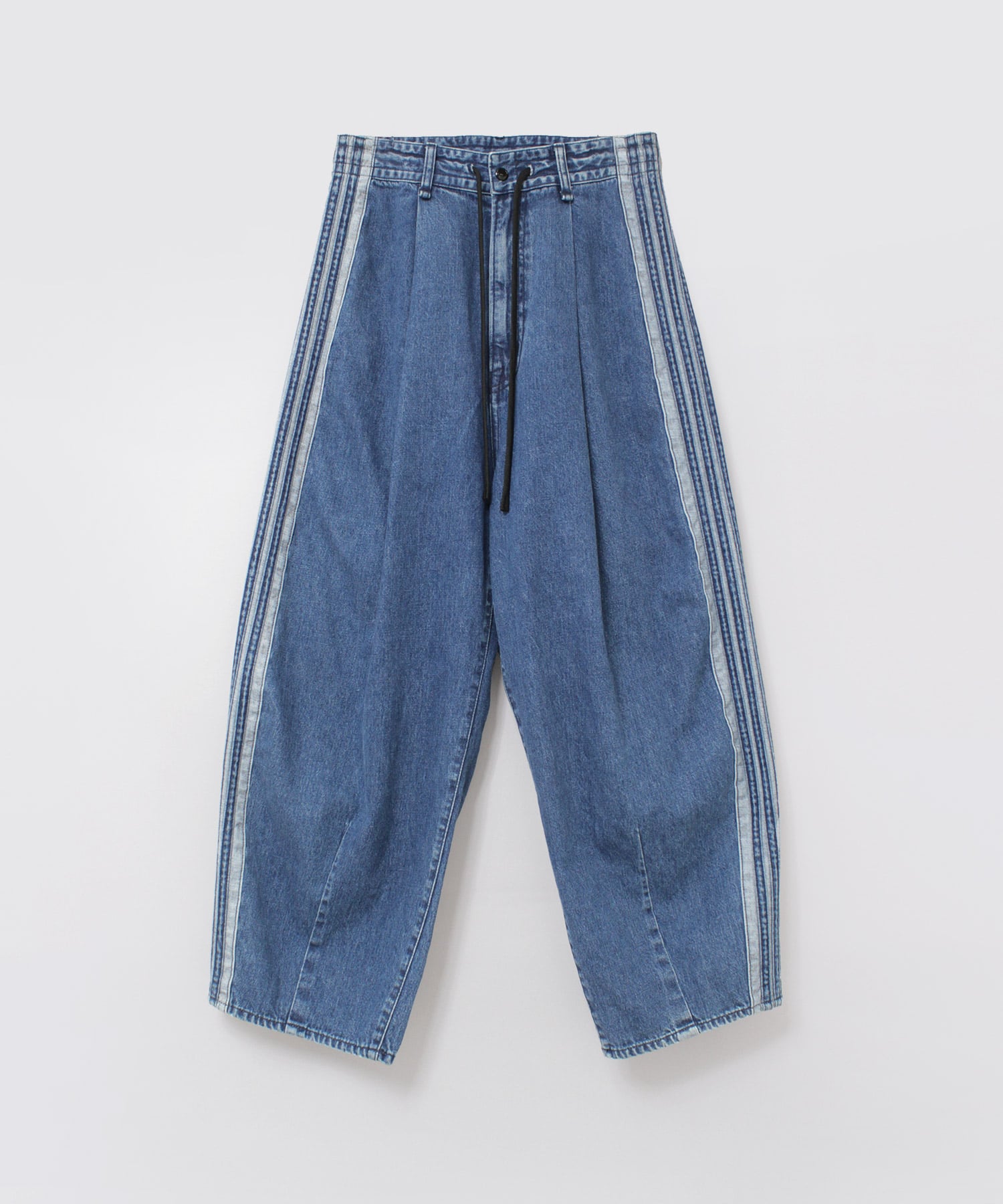 立体的なカーブシルエットがポイントのデニムトラックパンツ