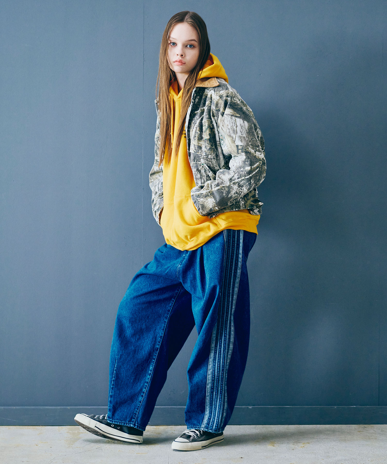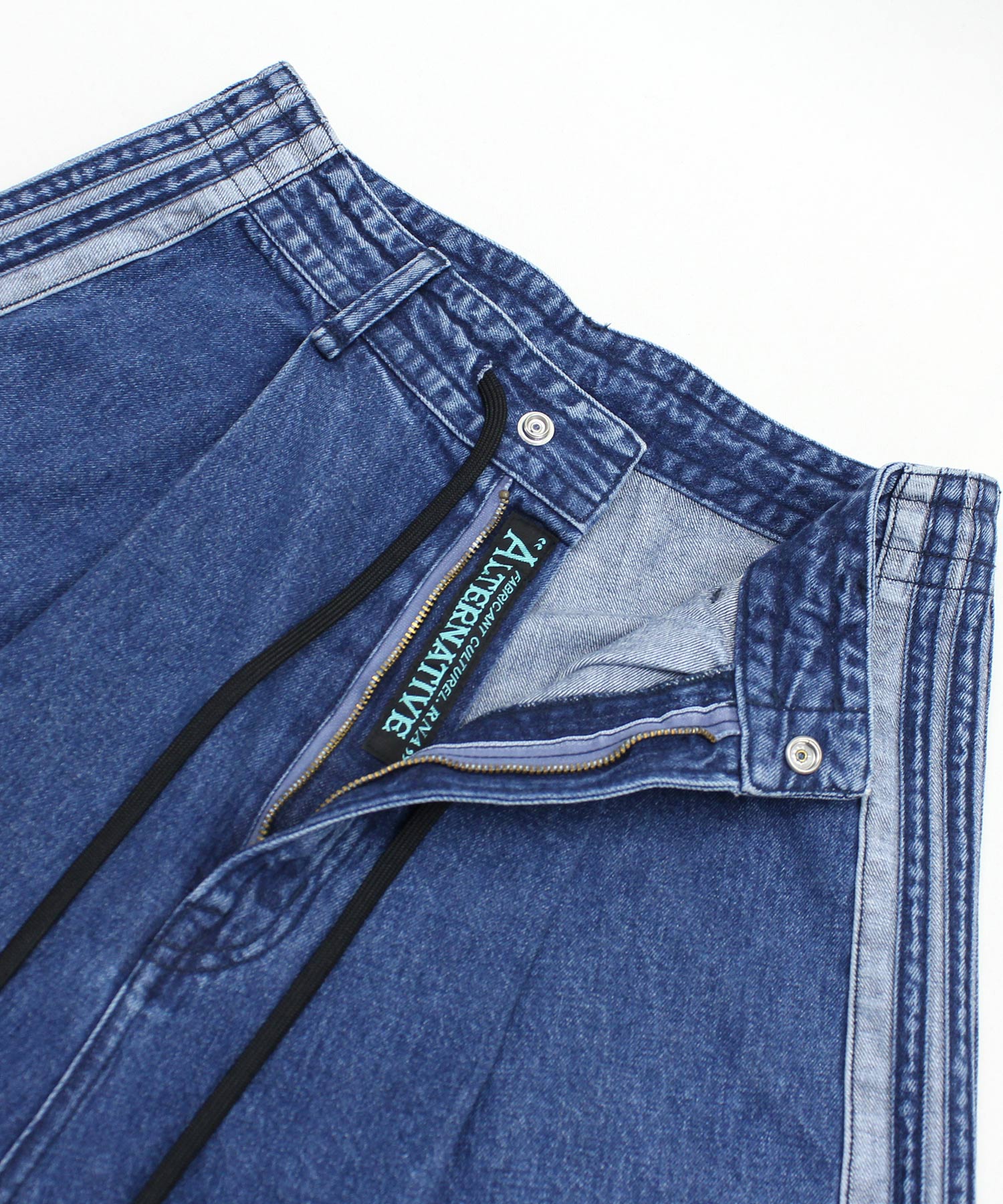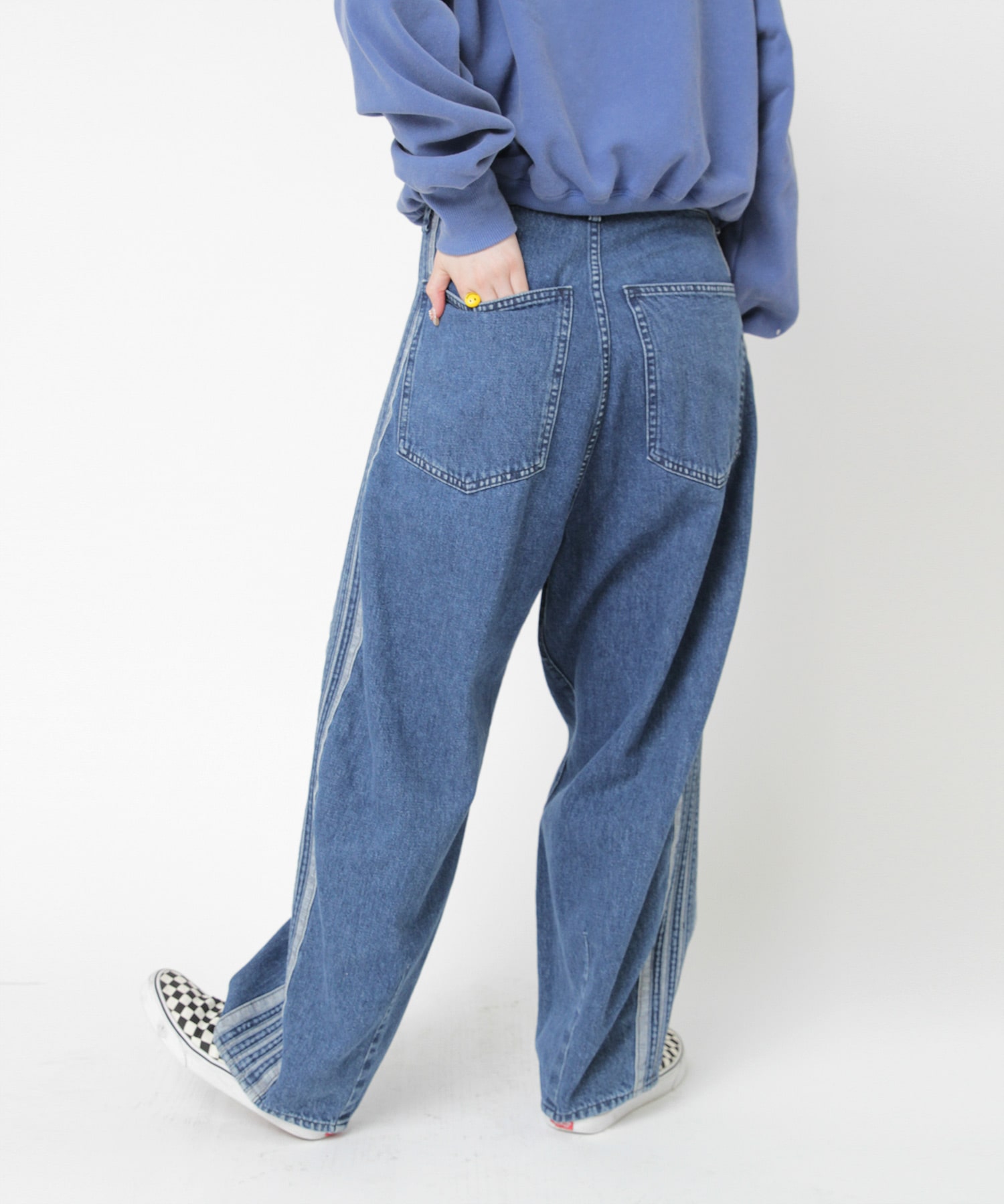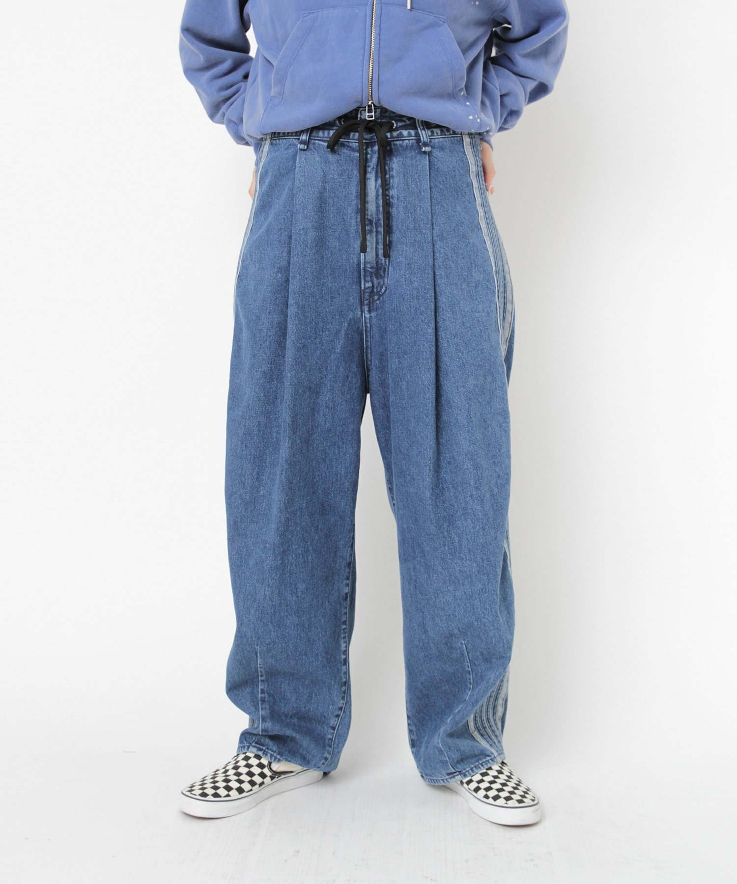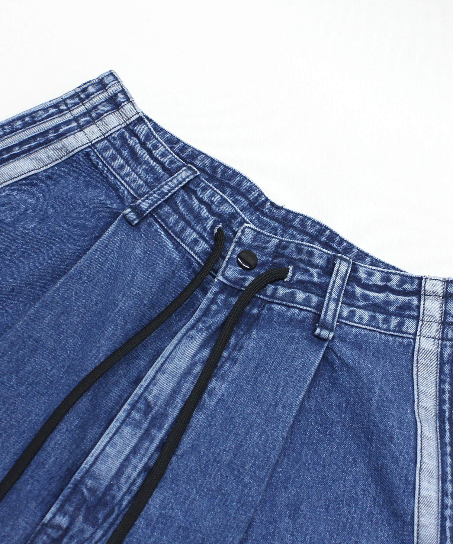 立体的なカーブシルエットがポイントのデニムトラックパンツ