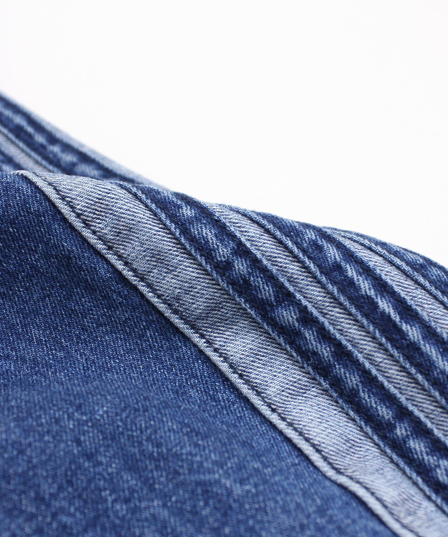 定番的な5ポケットジーンズをベースにパターンで変化をつけたパンツ。