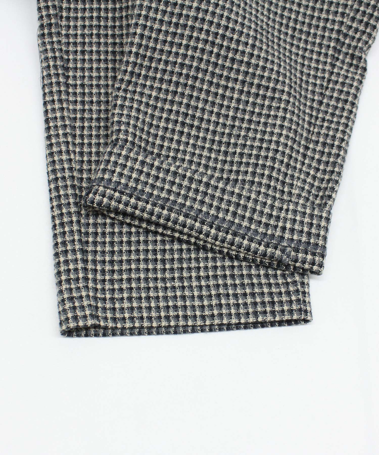 生地感が立体的なチェックデザインのパンツ