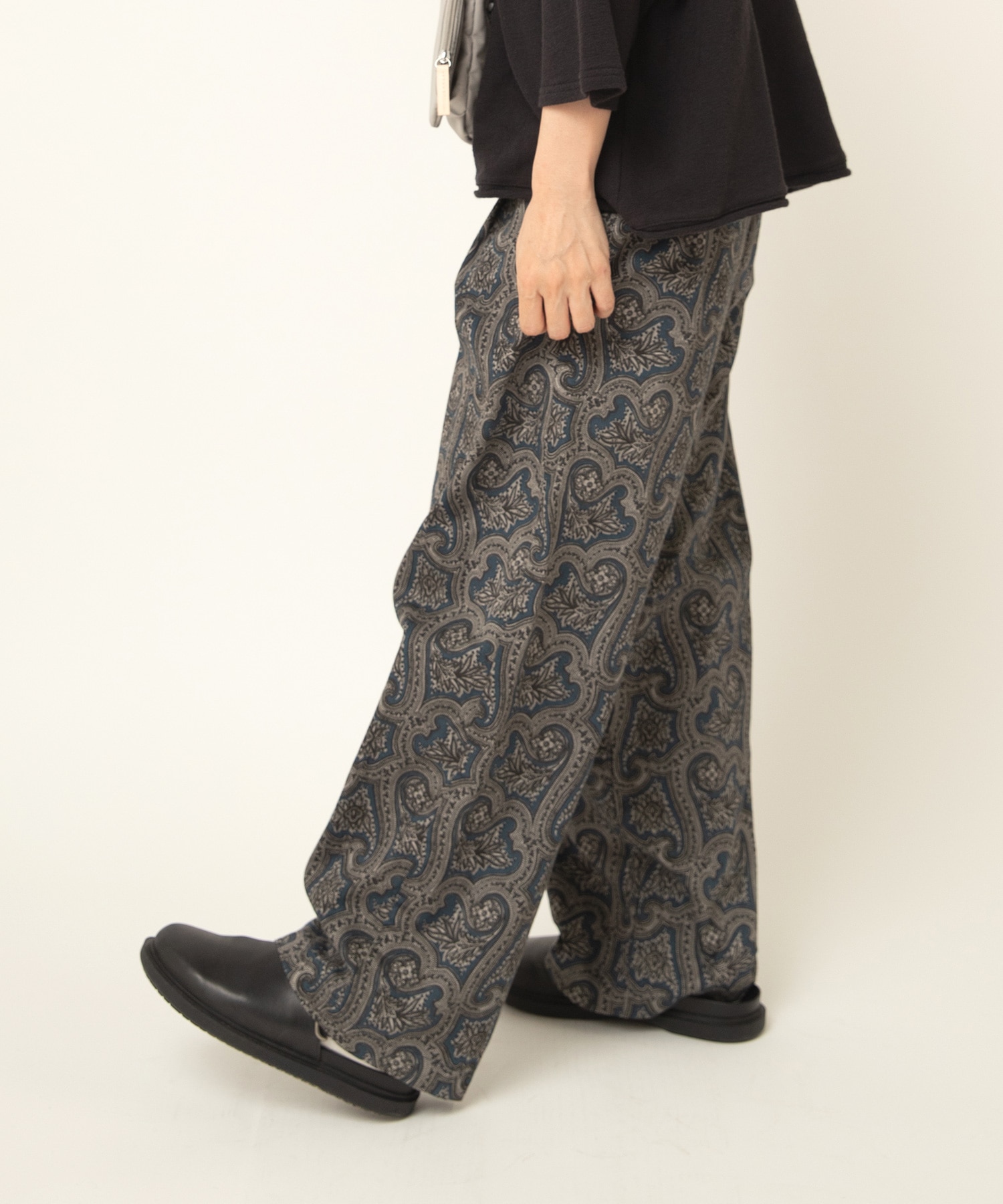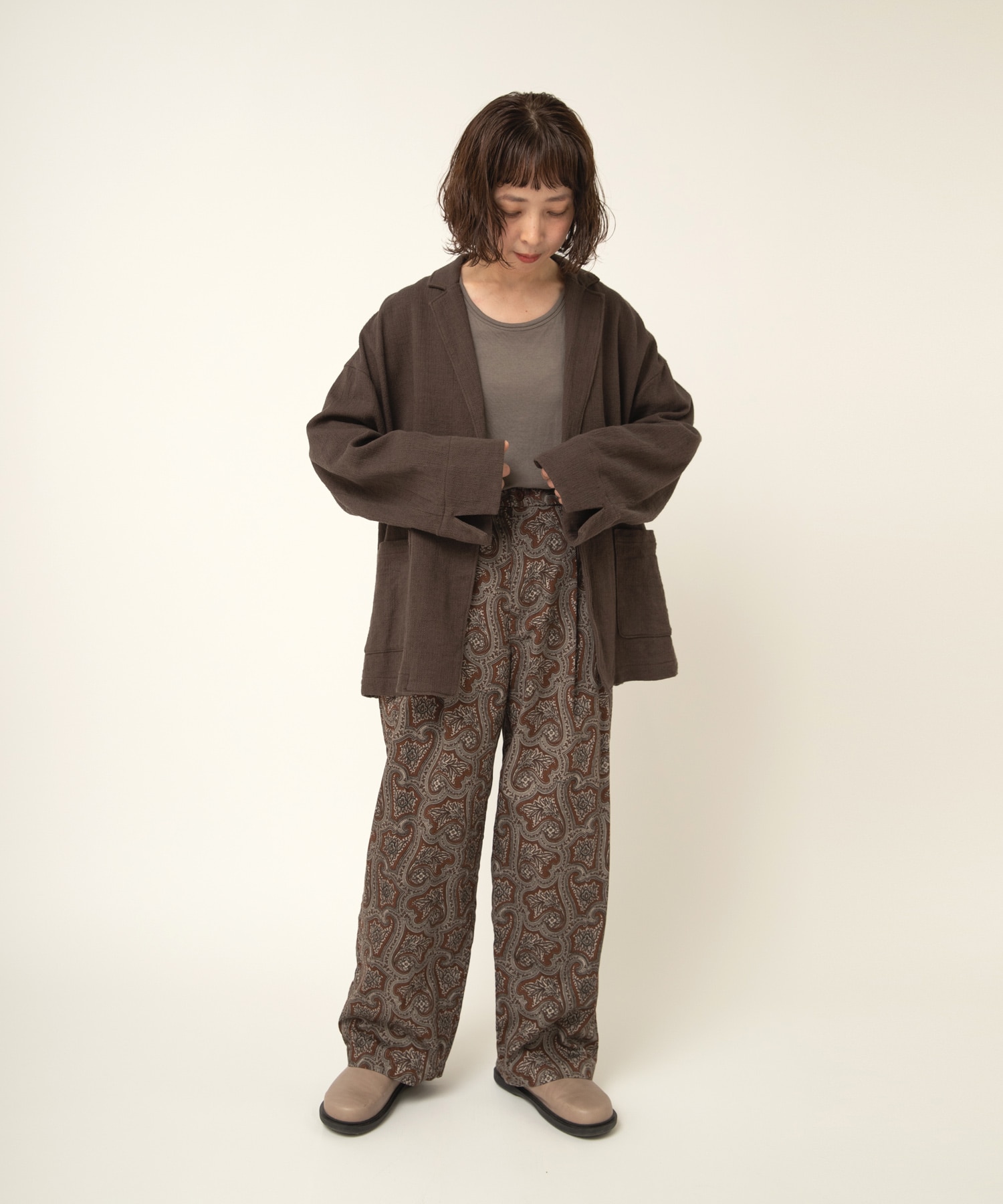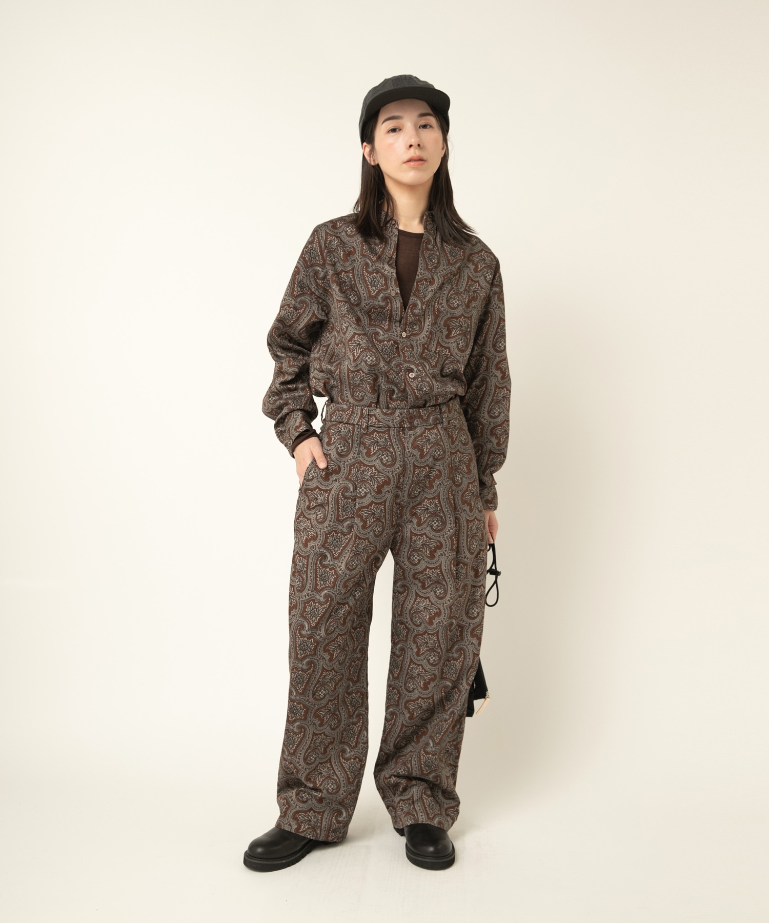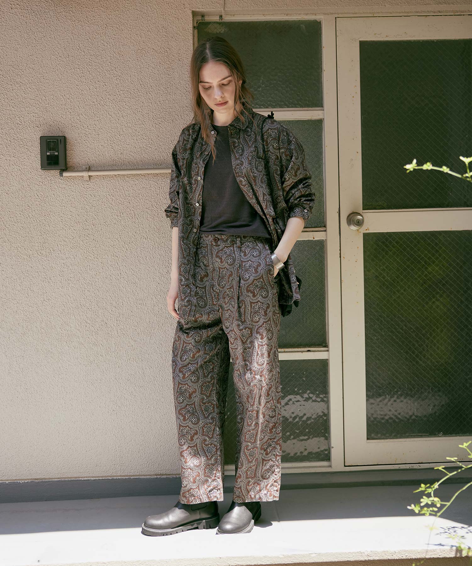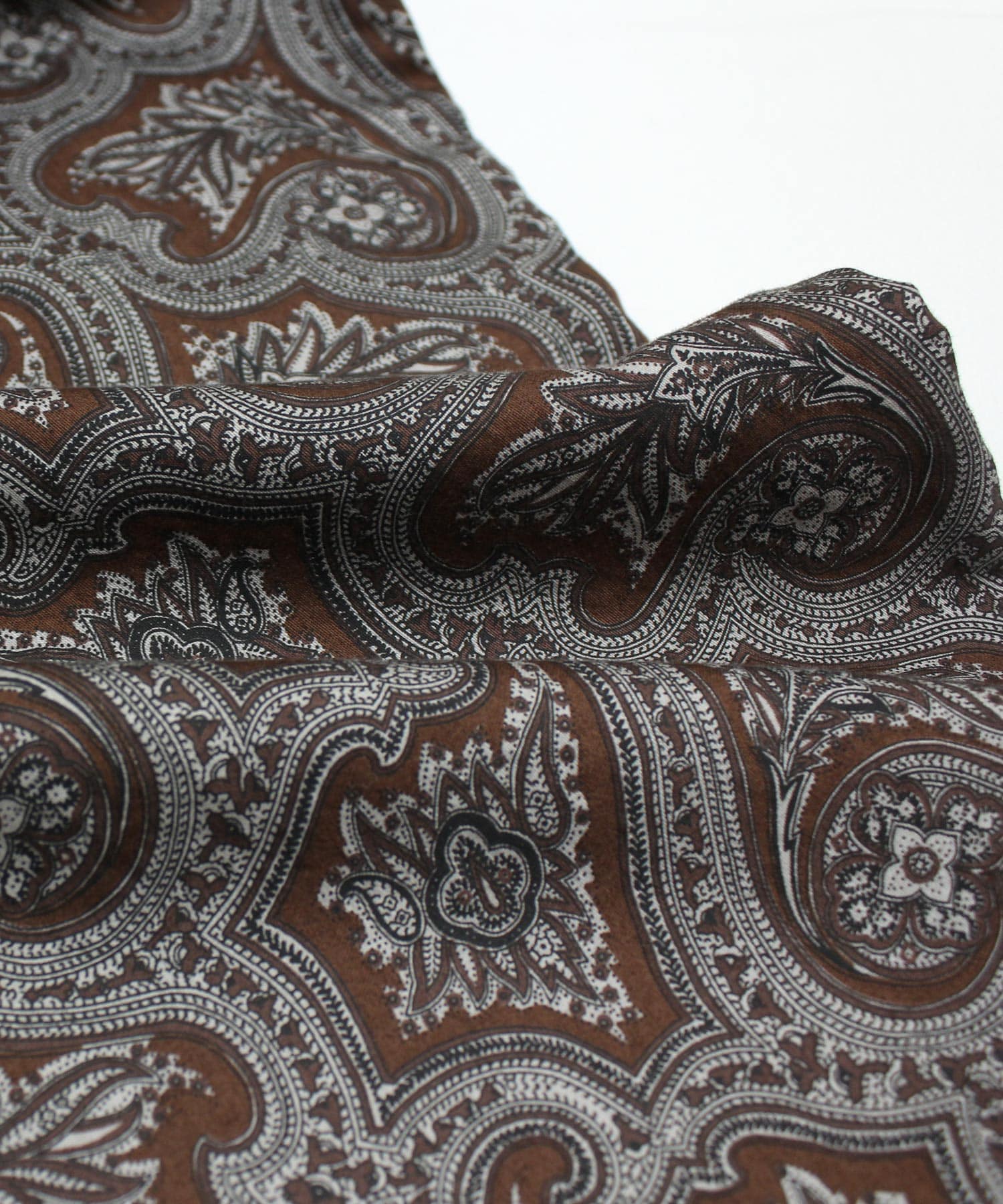 一癖あるペイズリーの柄域と、秋冬を感じさせるダークトーン、ほんのりとしたくすみ感が落ち着いた華やかさを纏って、コーディネートに程よいニュアンスを加えてくれます。