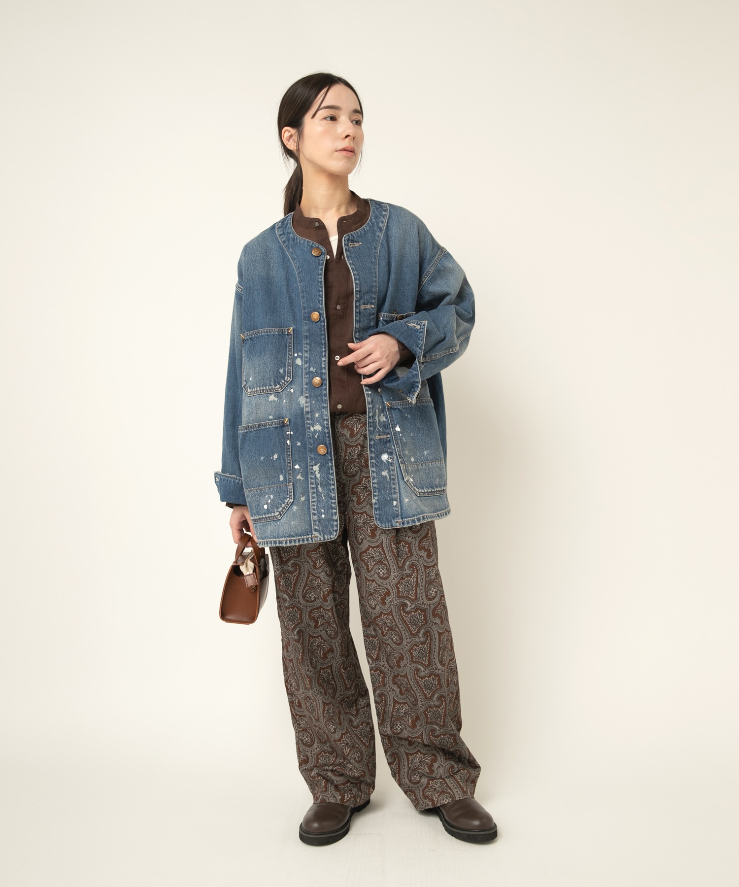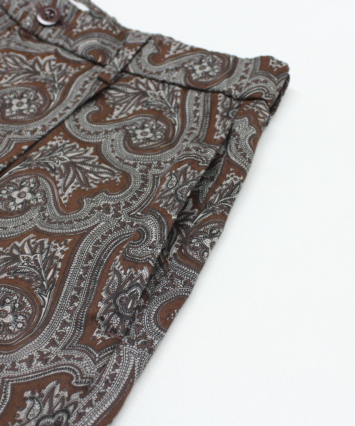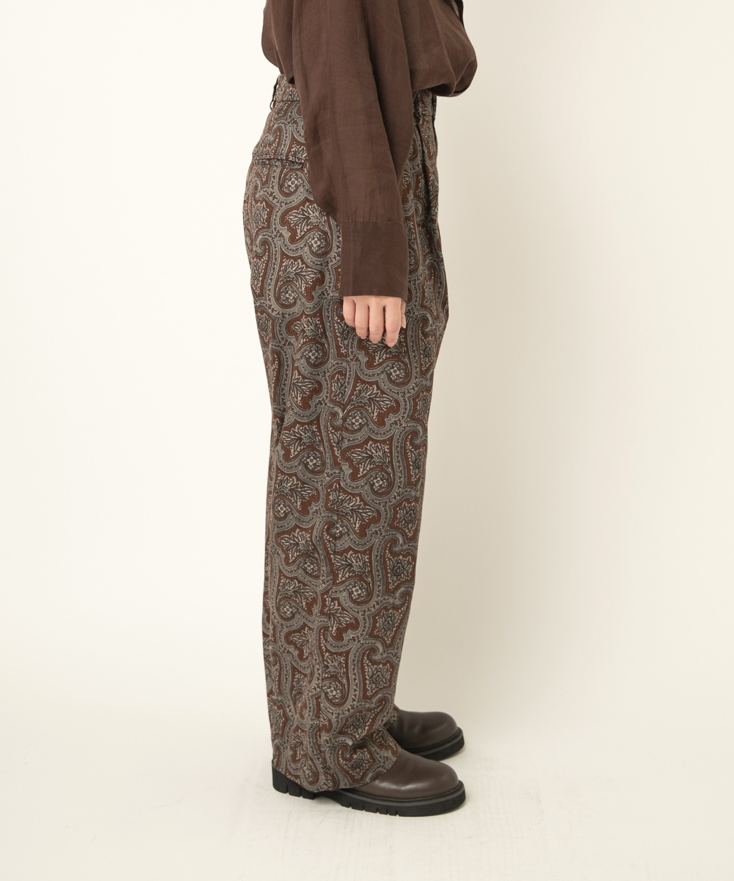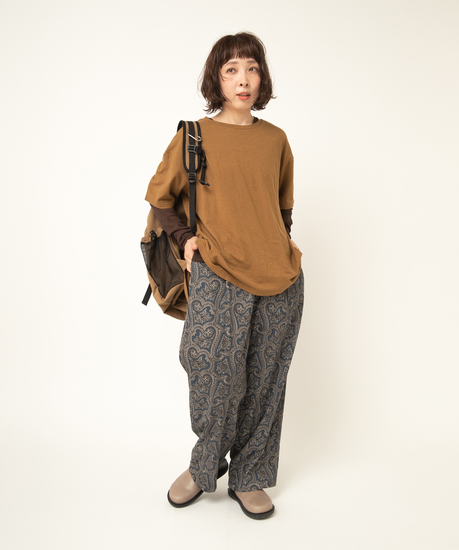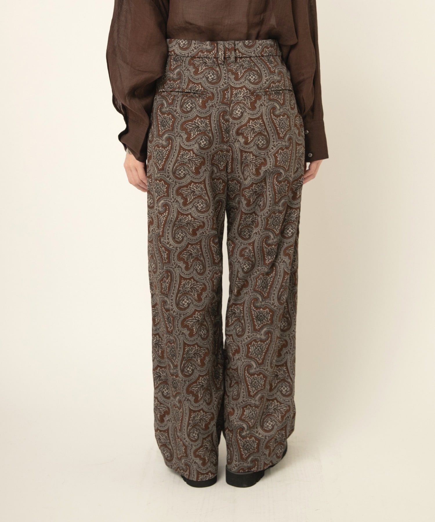 一癖あるペイズリーの柄域と、秋冬を感じさせるダークトーン、ほんのりとしたくすみ感が落ち着いた華やかさを纏って、コーディネートに程よいニュアンスを加えてくれます。