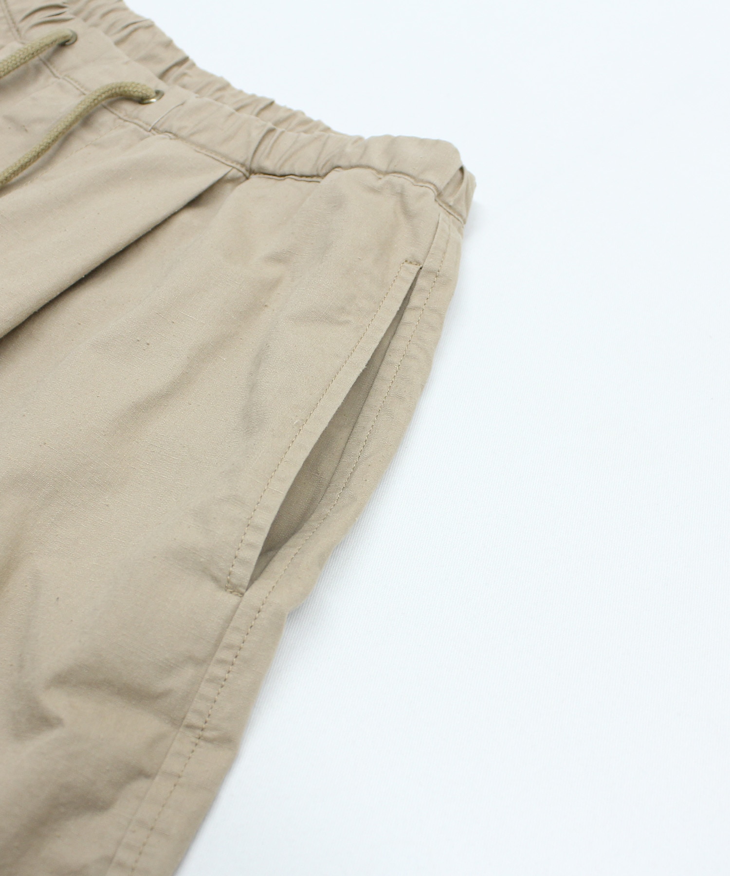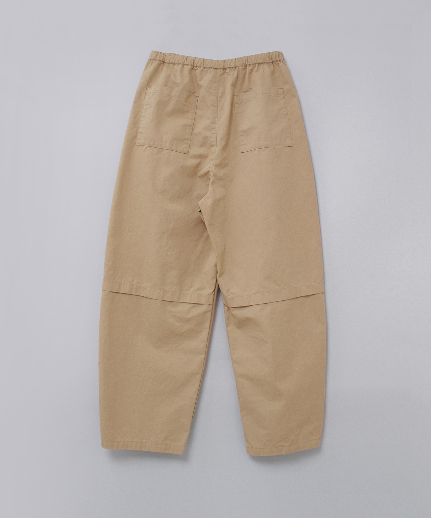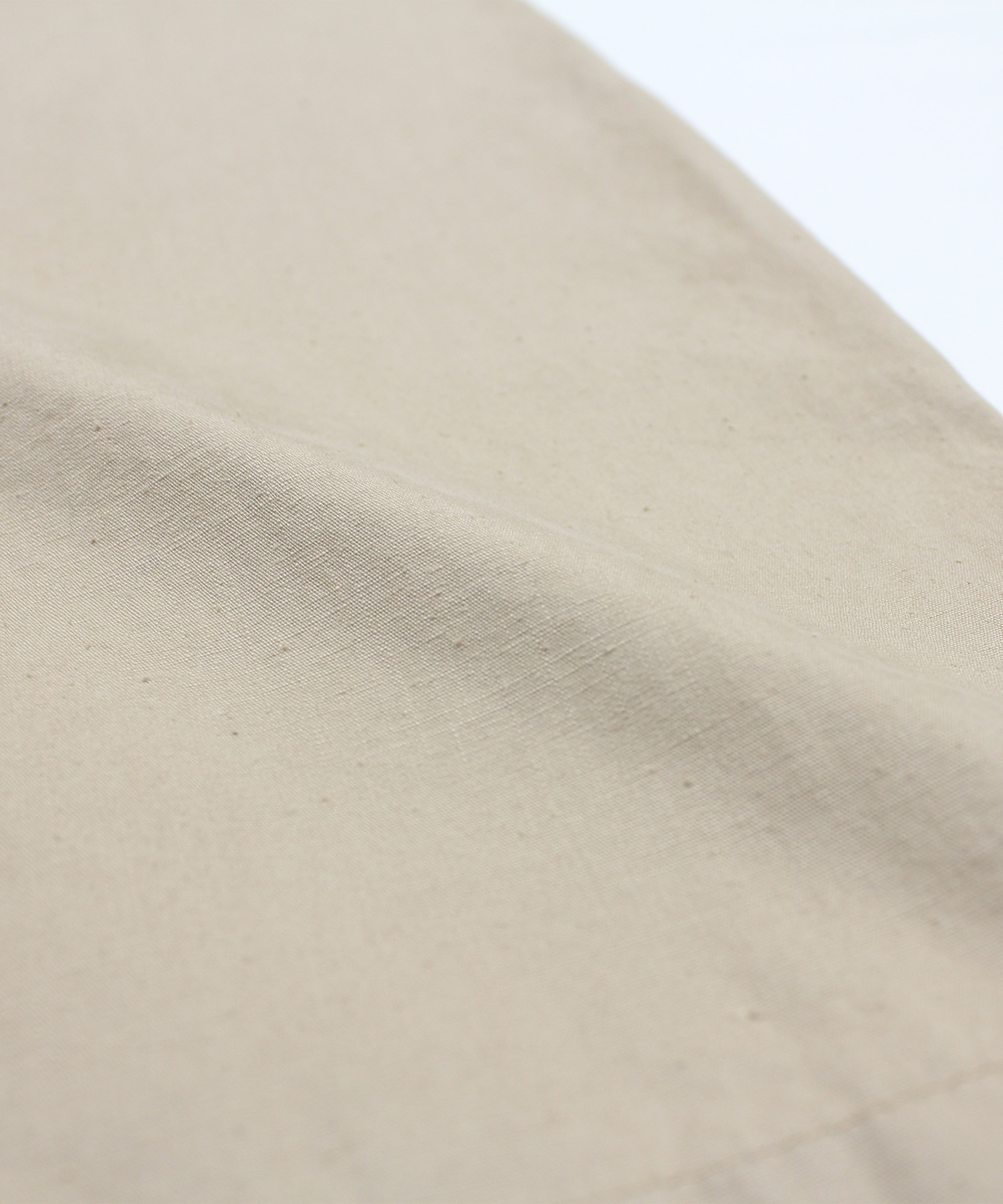 オーガニックコットンのネップ糸とムラ糸を使用した、ラフな表面感とナチュラルでドライな風合いが特徴の高密度素材を使った、デザインワークパンツです。