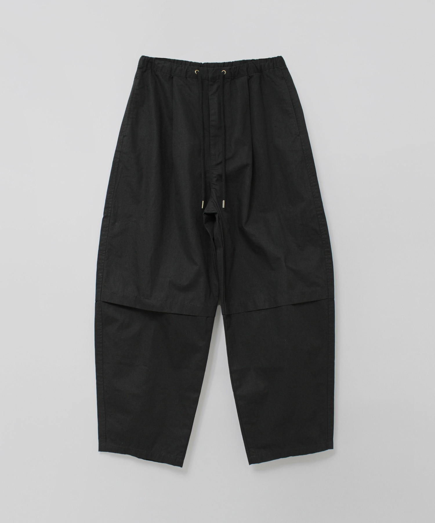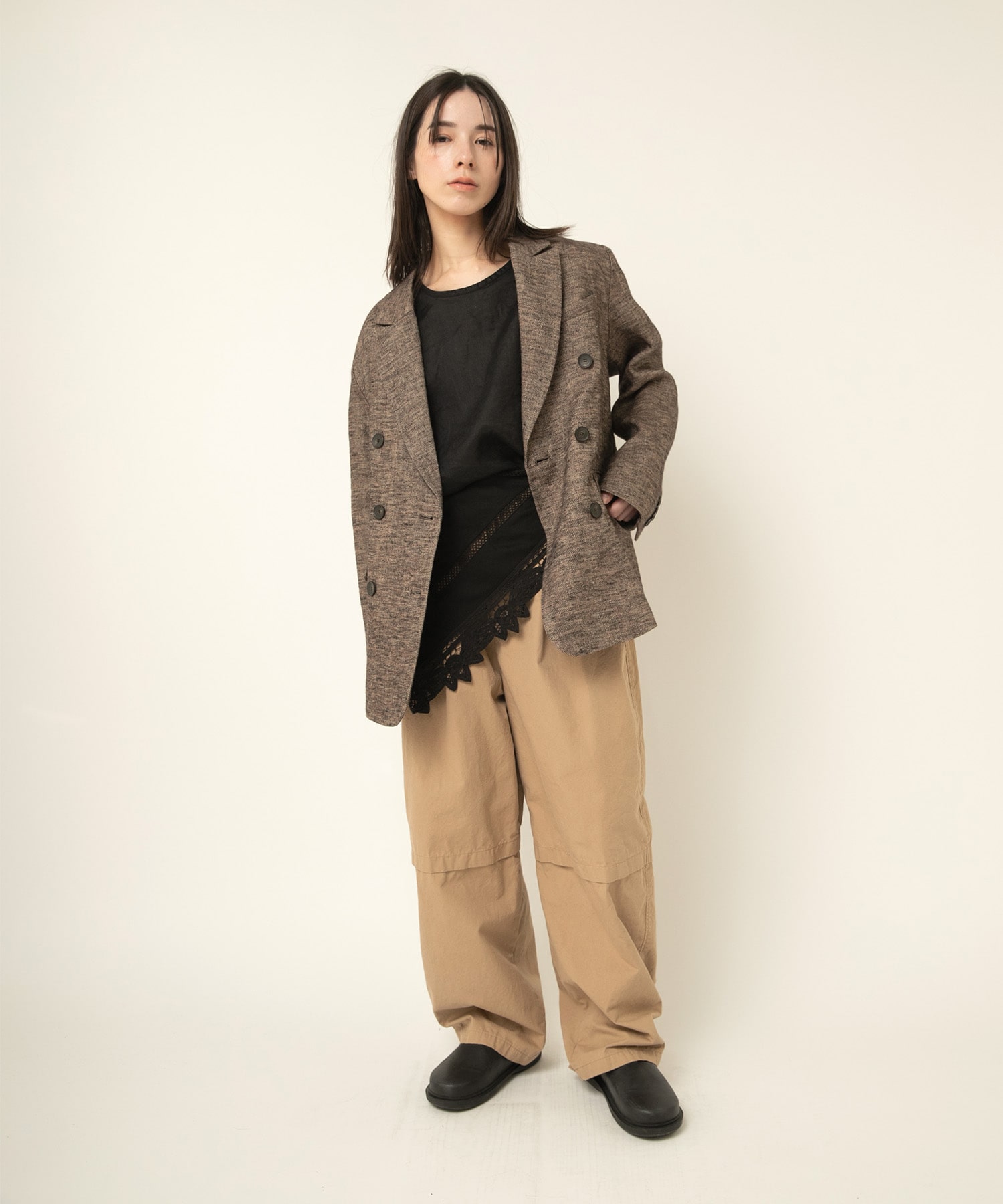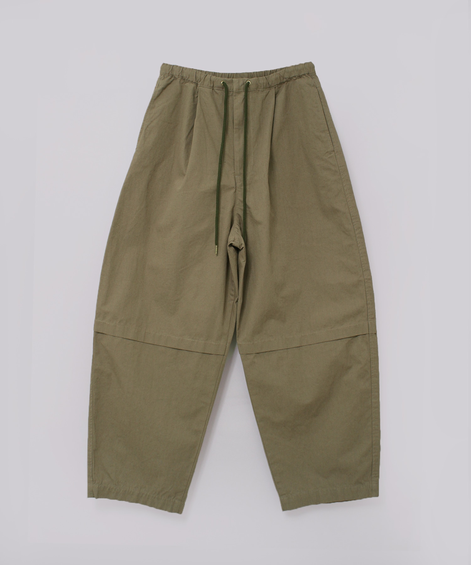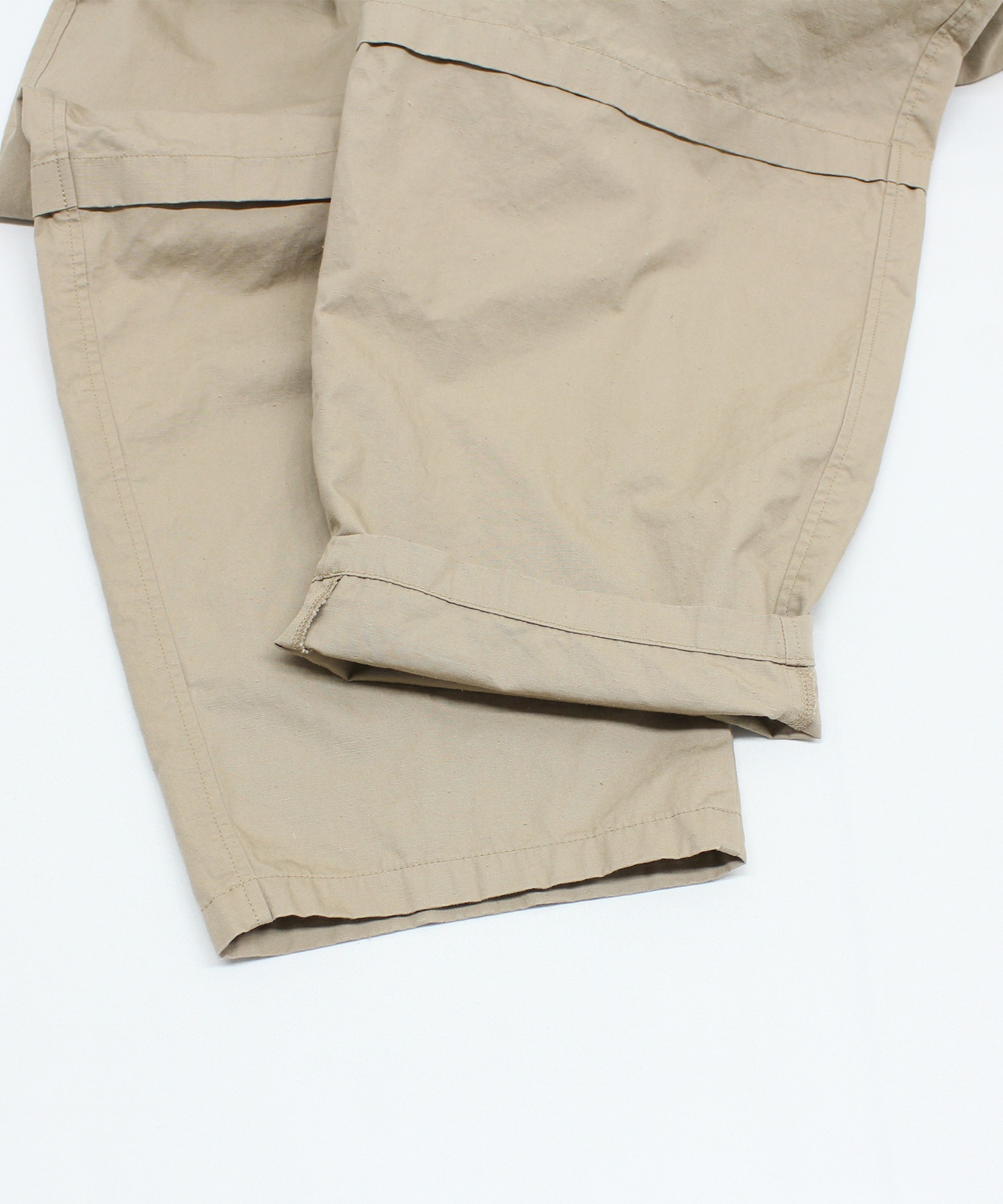 オーガニックコットンのネップ糸とムラ糸を使用した、ラフな表面感とナチュラルでドライな風合いが特徴の高密度素材を使った、デザインワークパンツです。