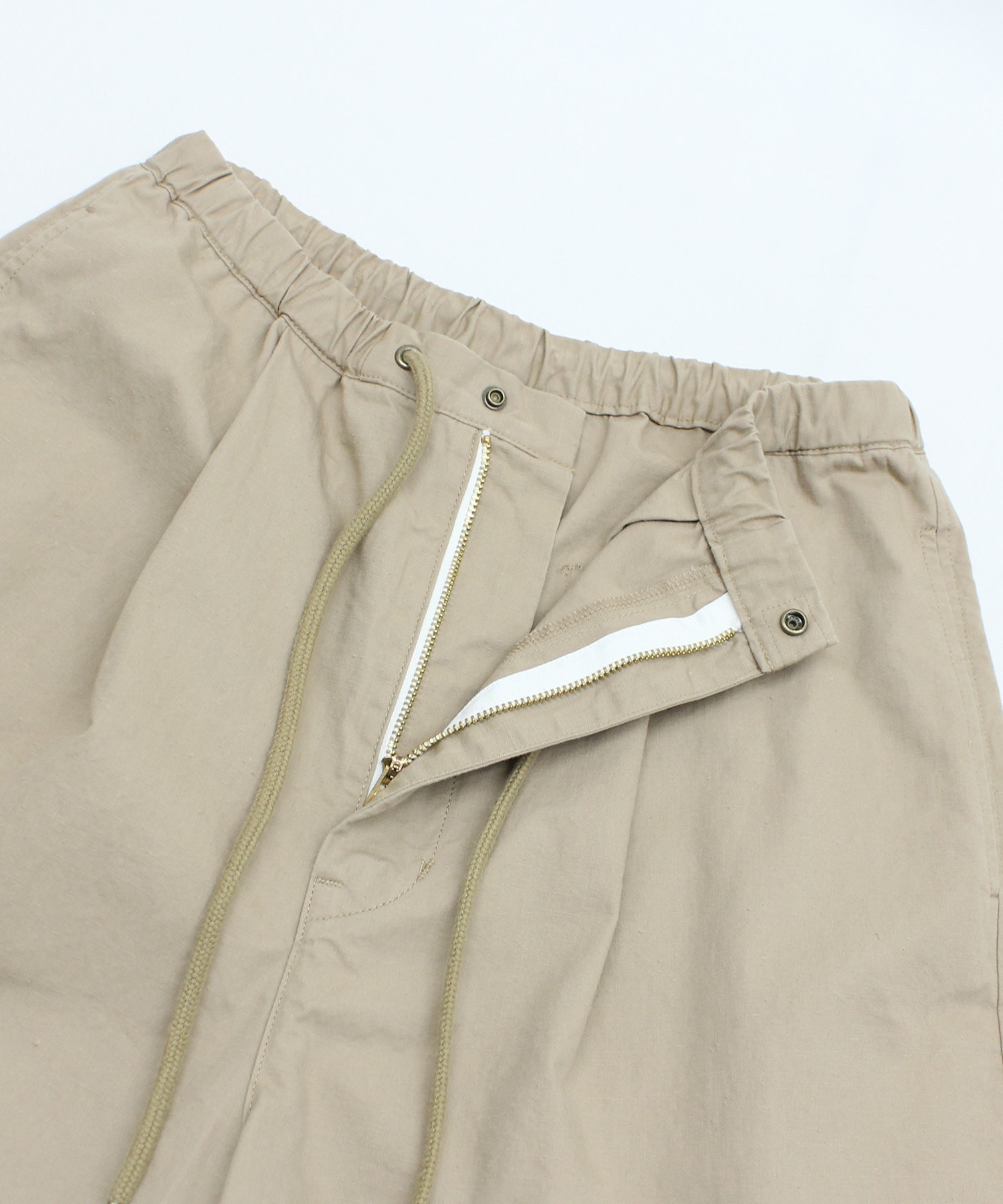 フロントの長めのタックは、ゆったりしたヒップ周りをすっきり見せる効果があります。