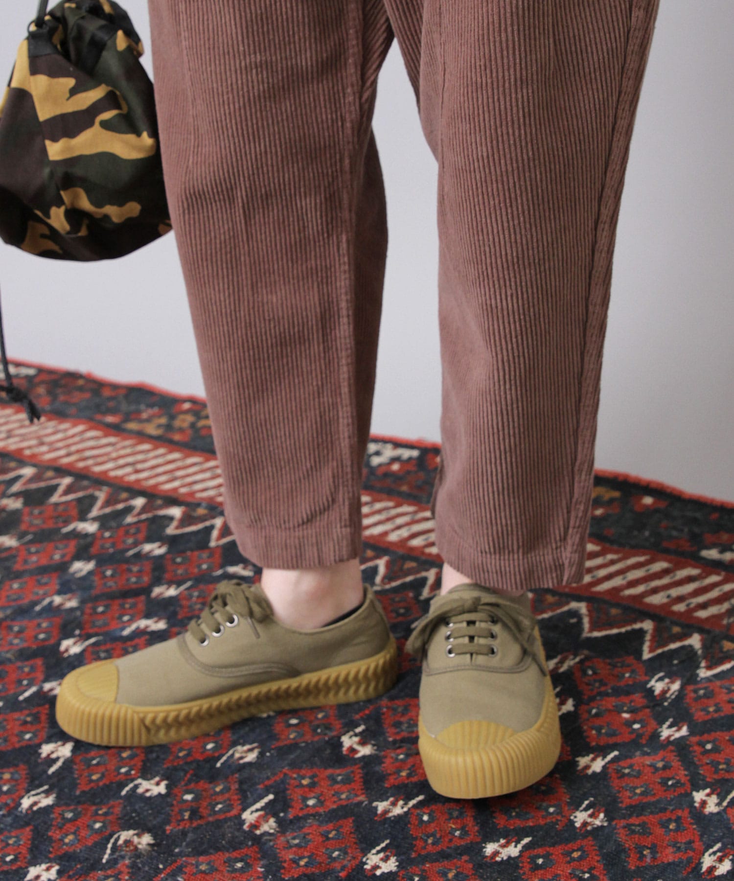 製品完成後の染め加工により、独特なヴィンテージの風合いとこなれ感を演出しました。