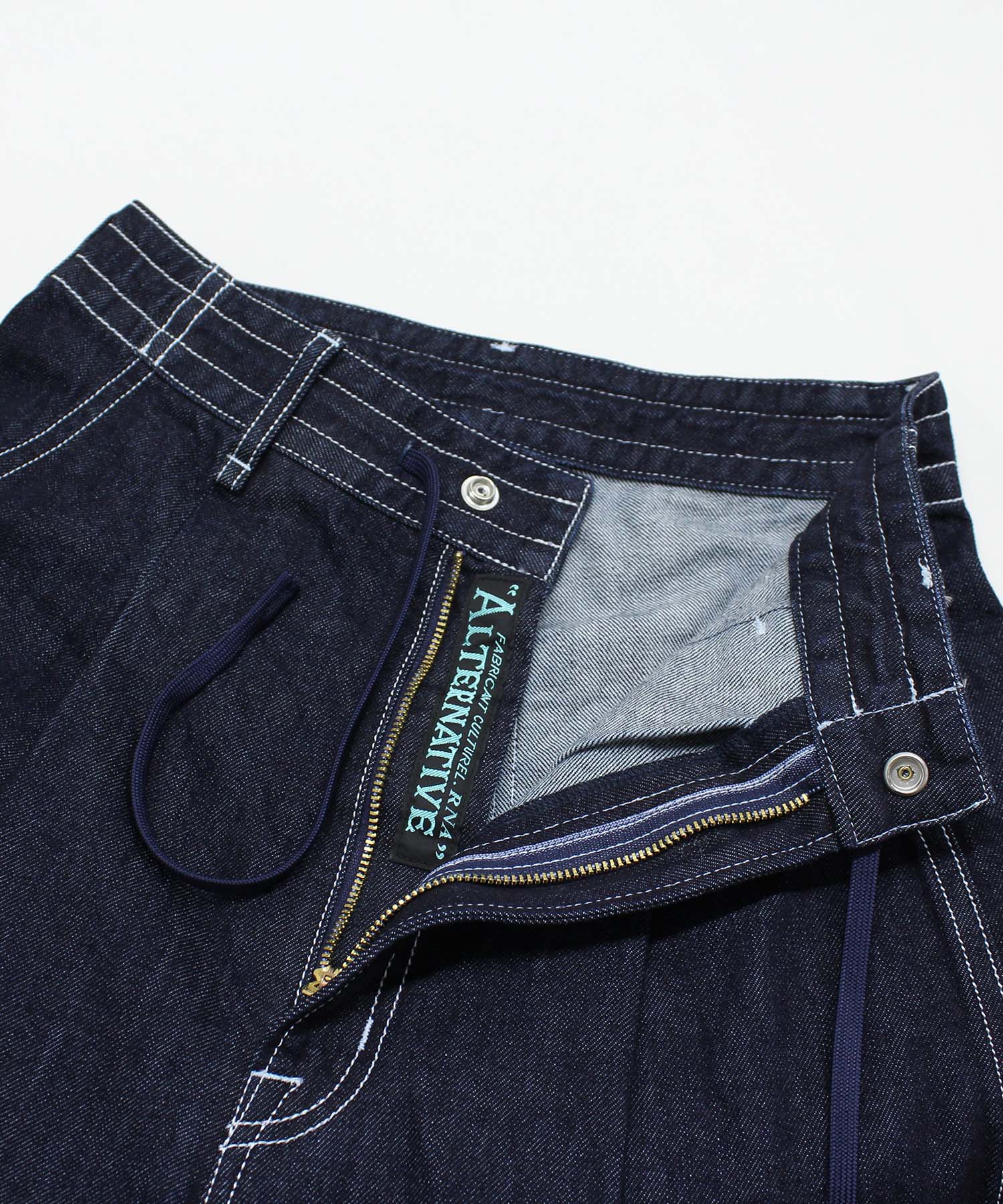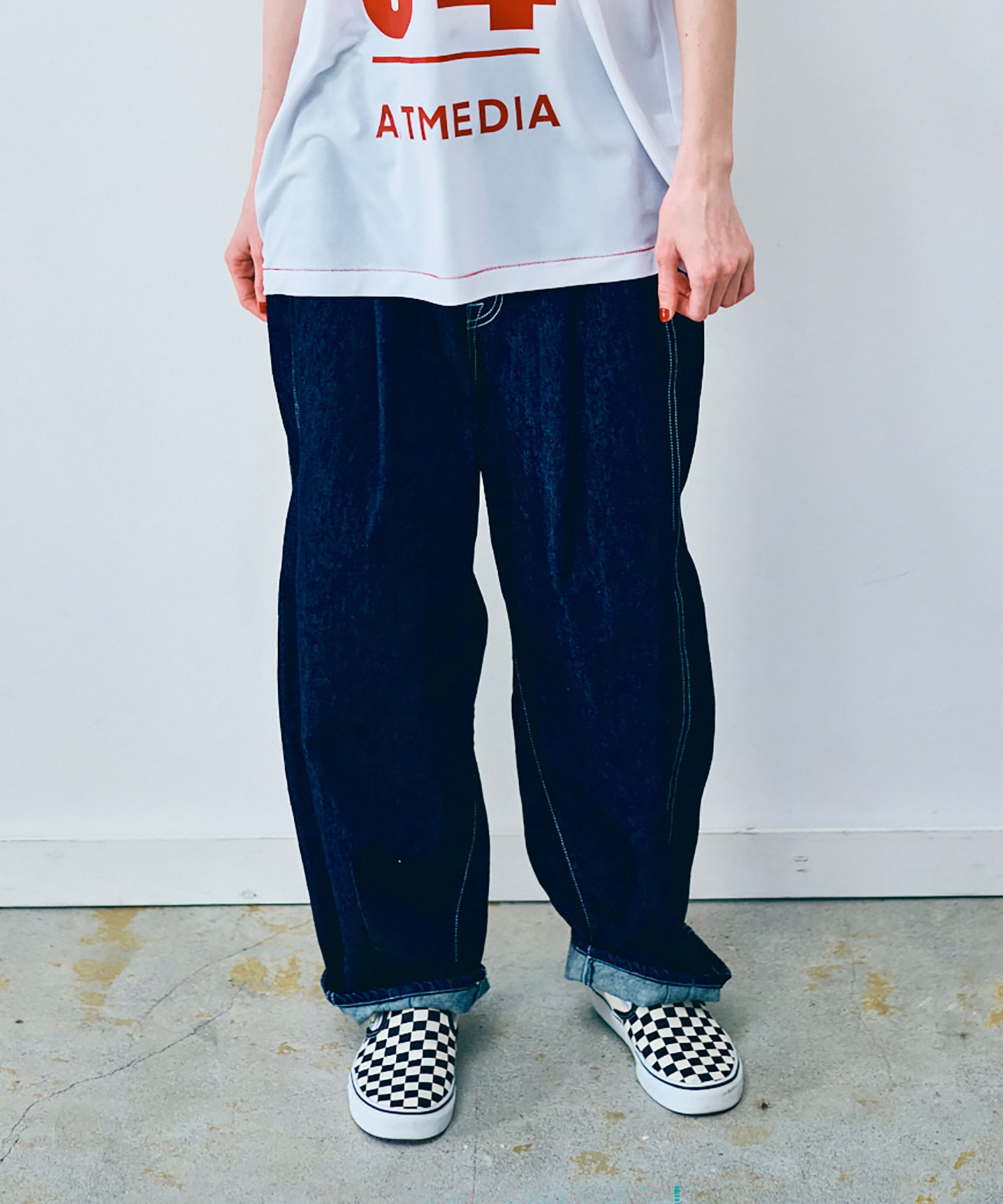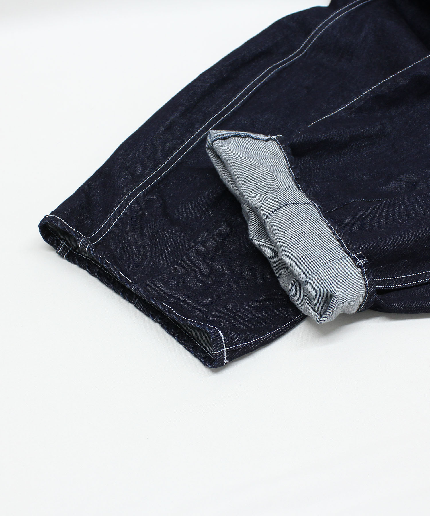 素材は本格的なジーンズ同様に、ハリのある13オンスデニムを使用しています。そのため美しいシルエットがキープできます。ロールアップで短めに着用するのも、新鮮なシルエットが楽しめておすすめ。