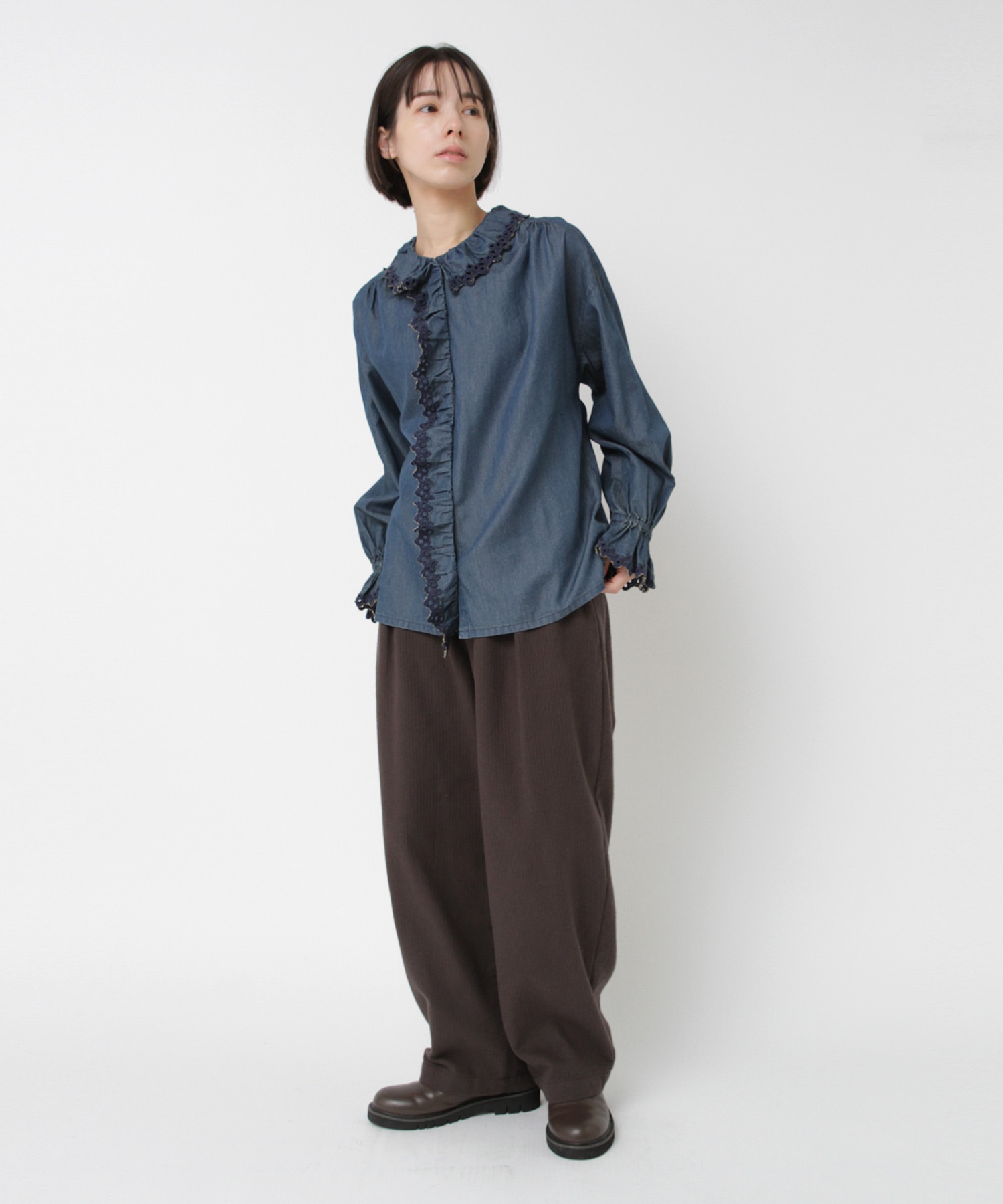 • > R4393 COTTON HEAVY PIQUE ワイドトラウザーズ