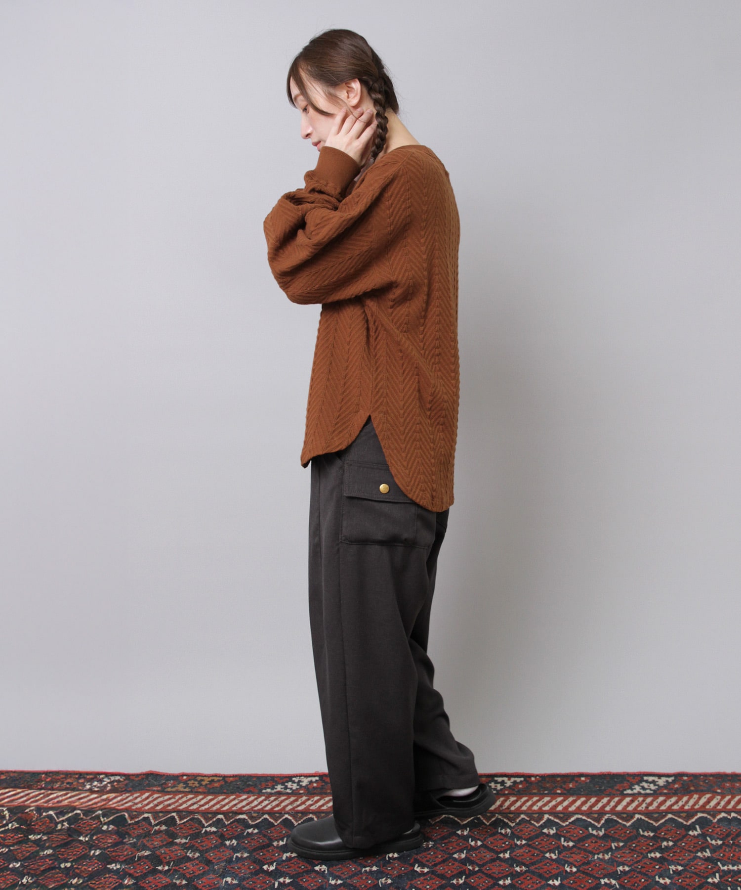 高めの位置で着用するとシルエットが綺麗にでるのでオススメです。