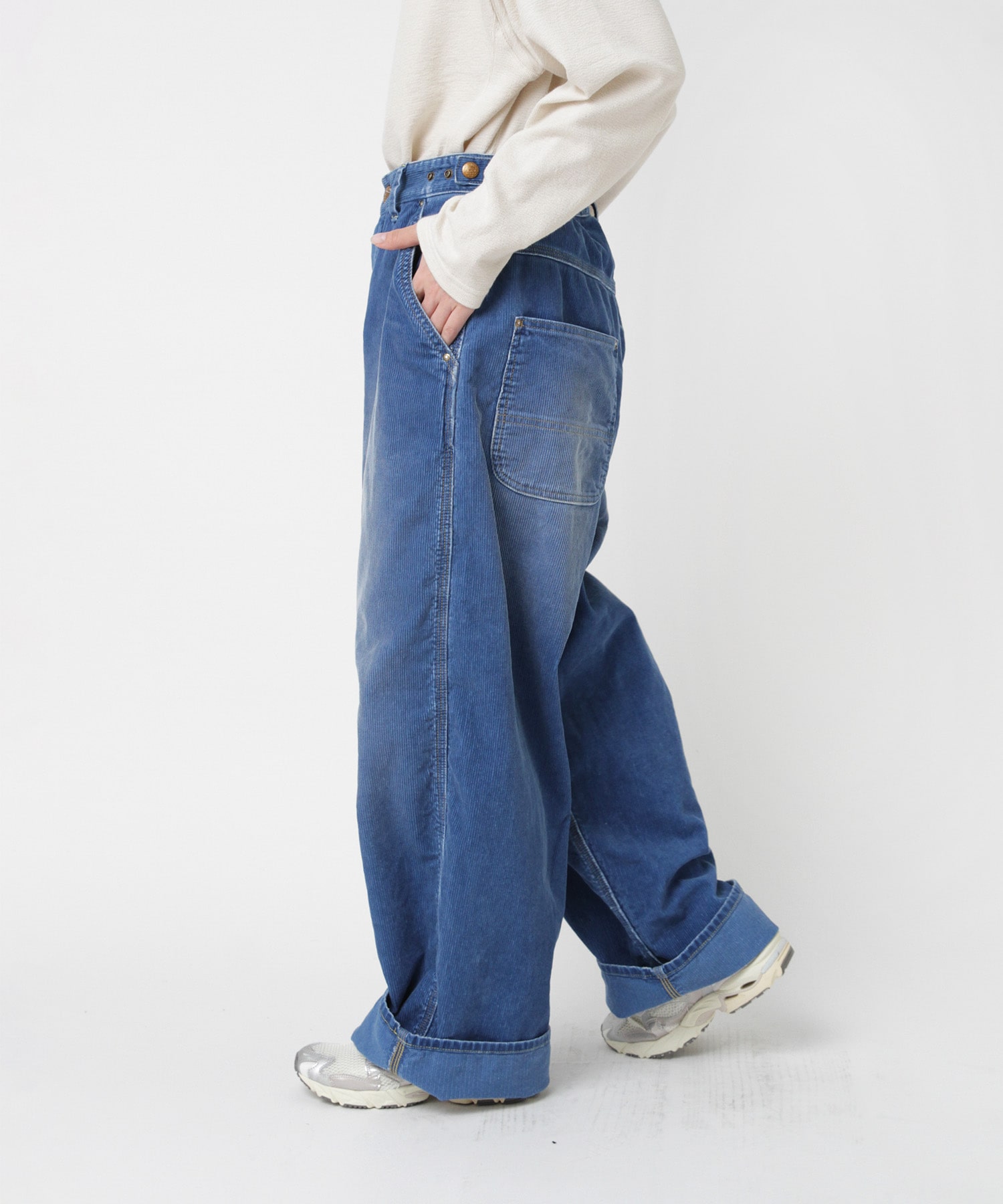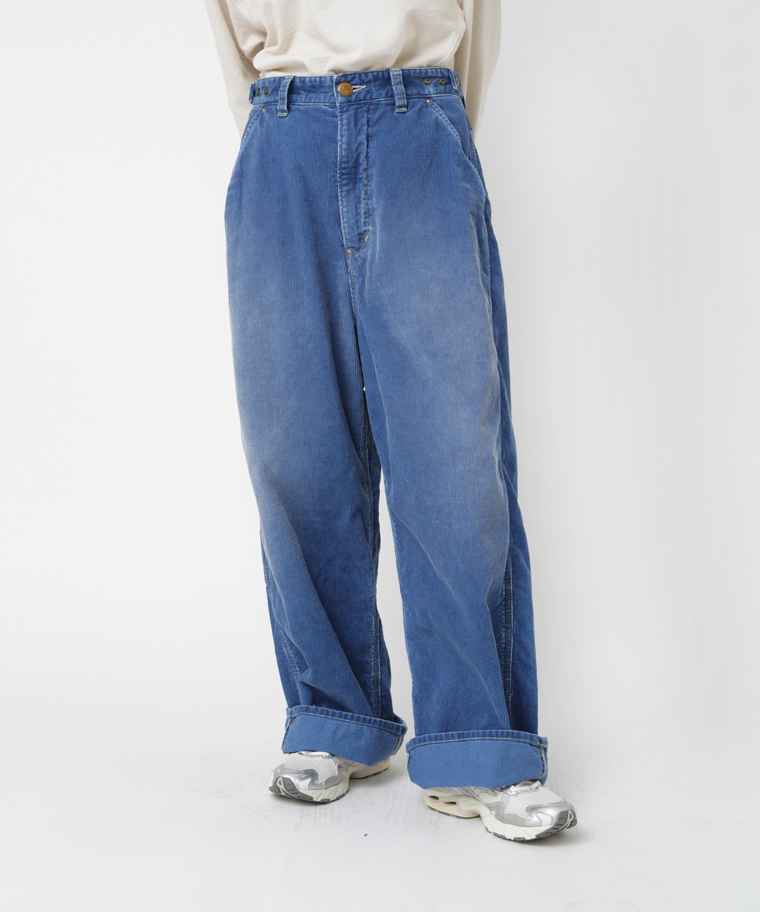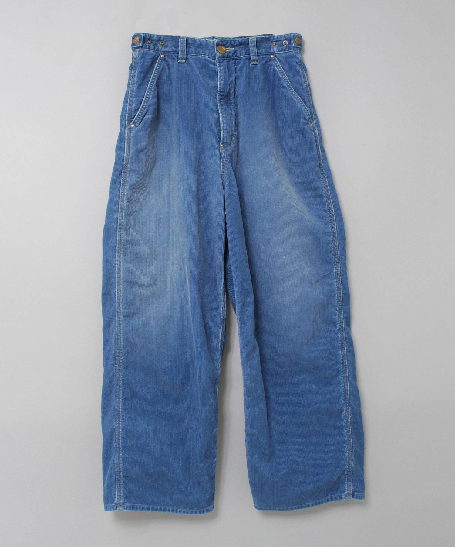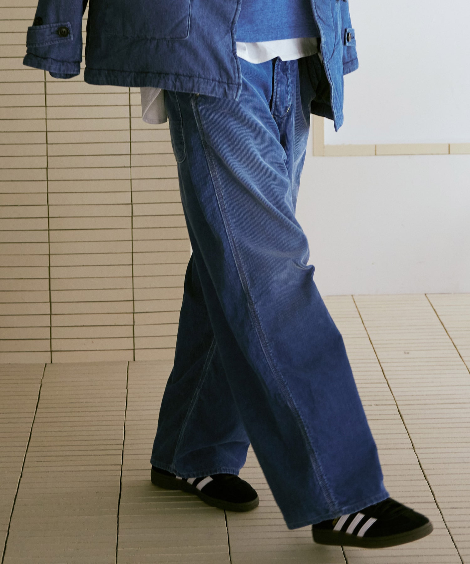 カラー「025」はインディゴ染めのコーデュロイ、「115」は製品染めをしています。いずれも太ももやヒップ周りの色落ち、端々のダメージなど、リアルなユーズド感を再現しています。