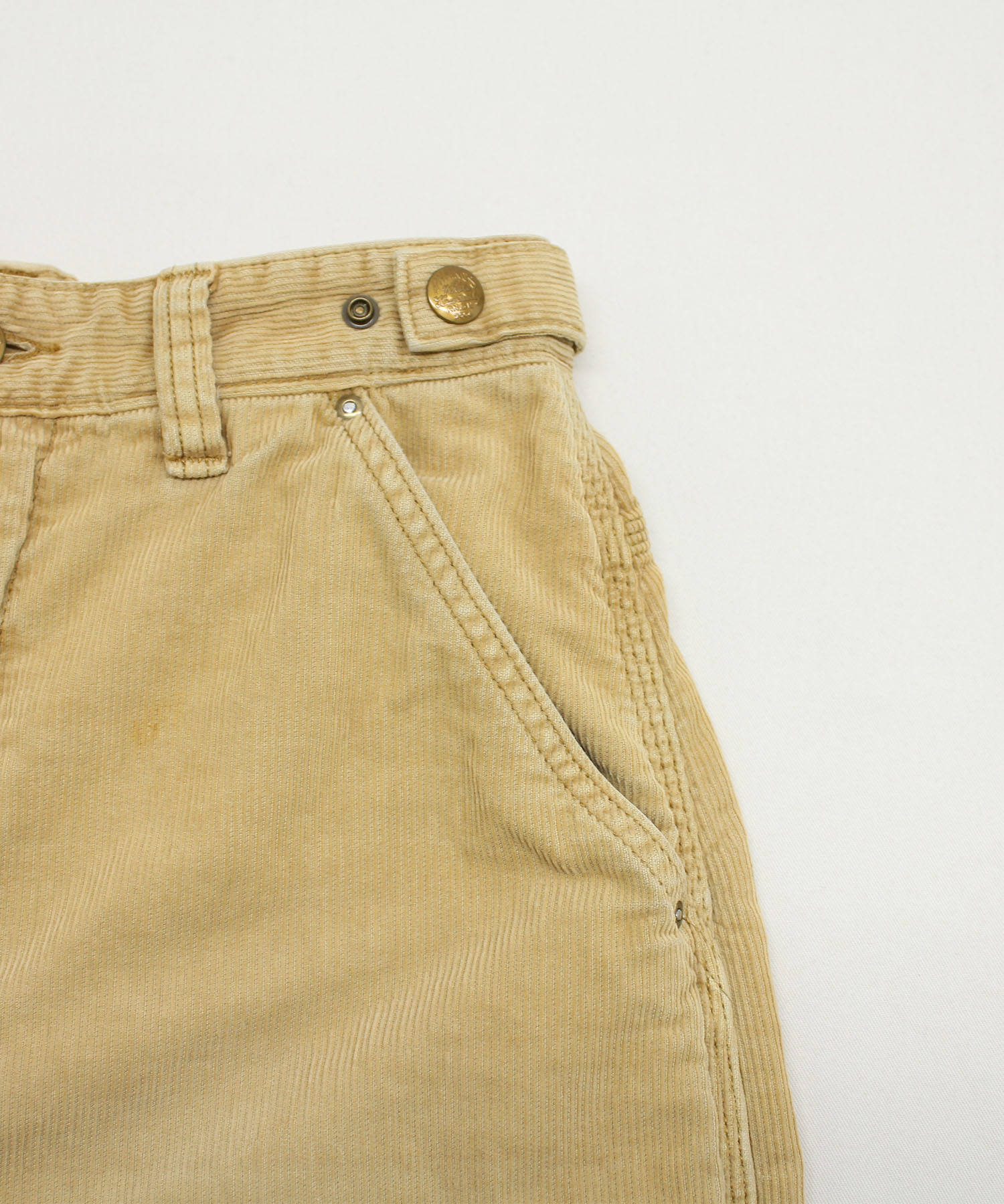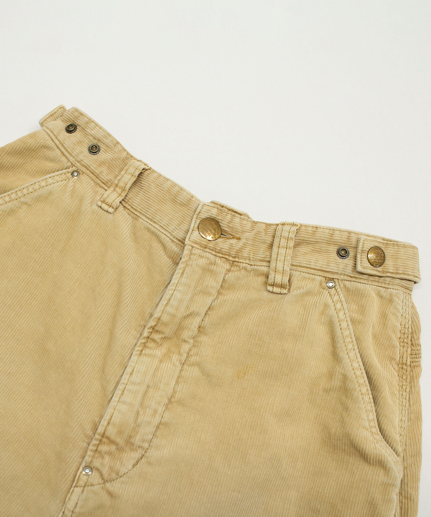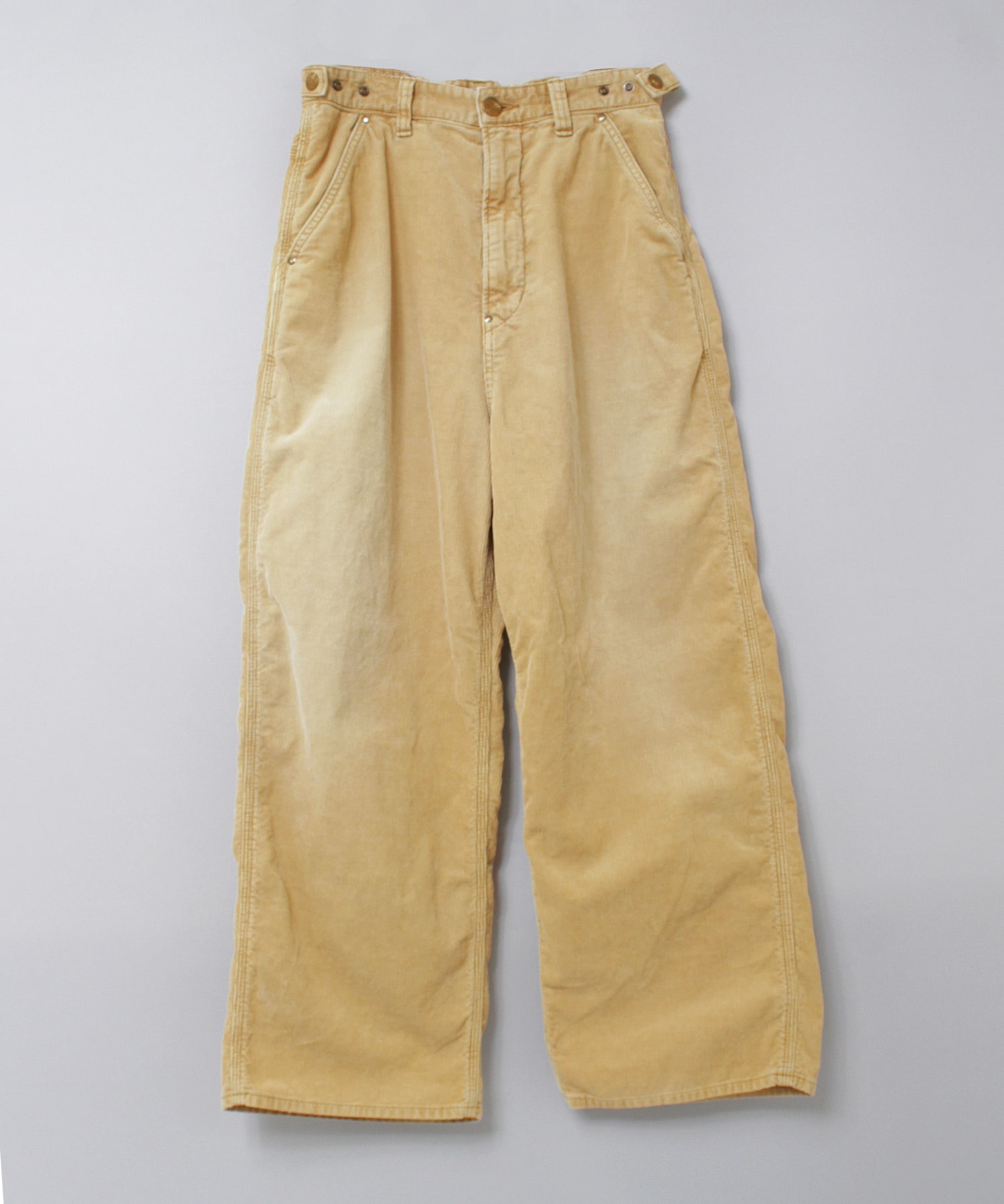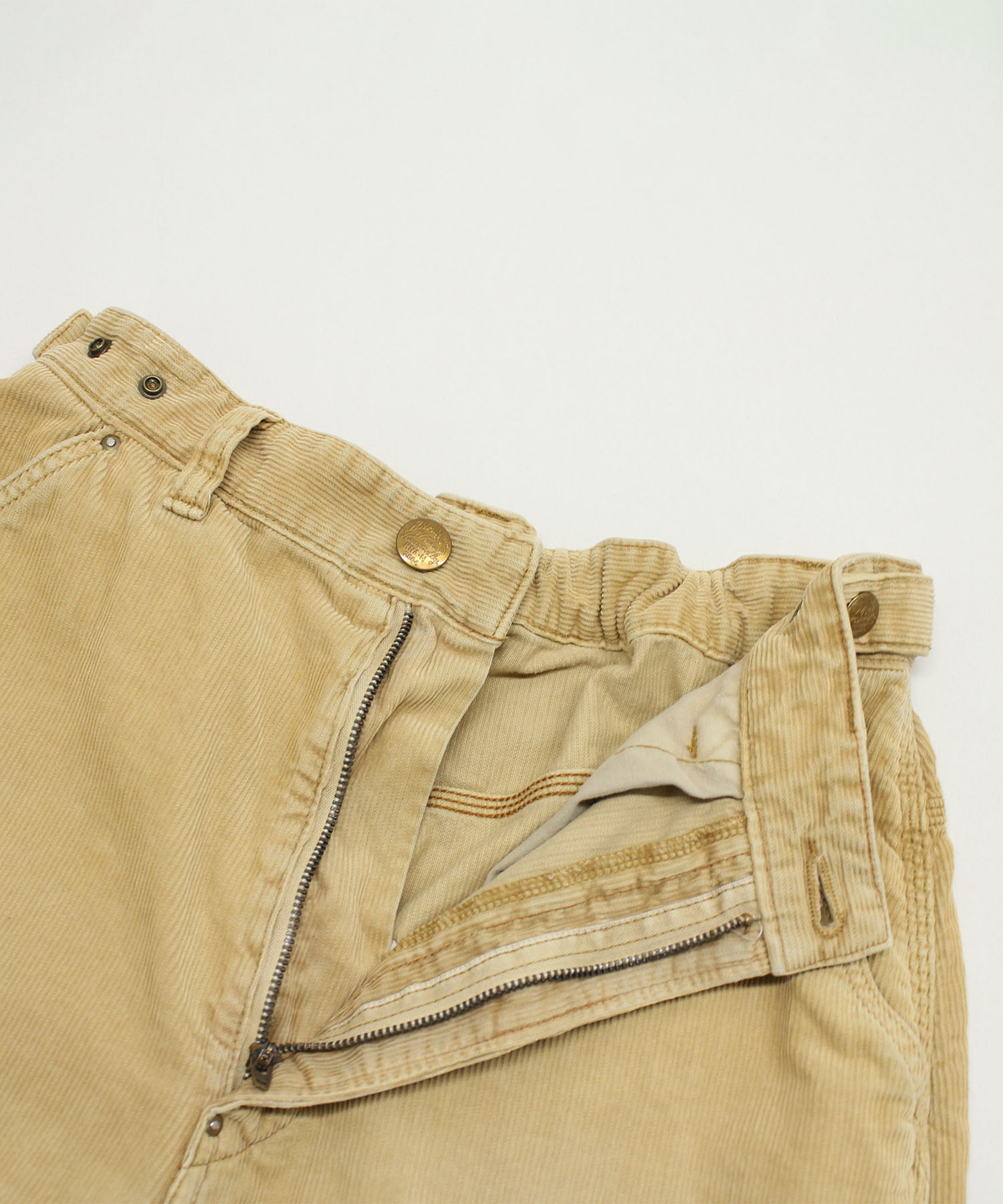 カラー「025」はインディゴ染めのコーデュロイ、「115」は製品染めをしています。いずれも太ももやヒップ周りの色落ち、端々のダメージなど、リアルなユーズド感を再現しています。