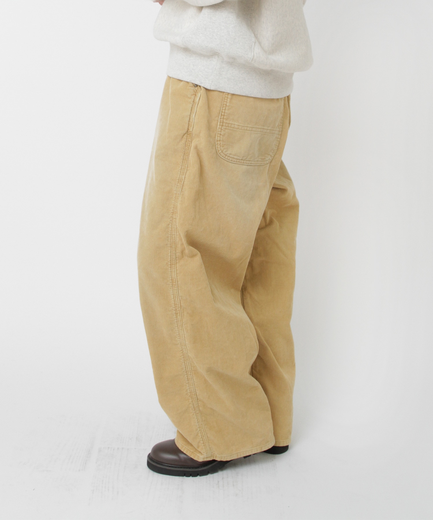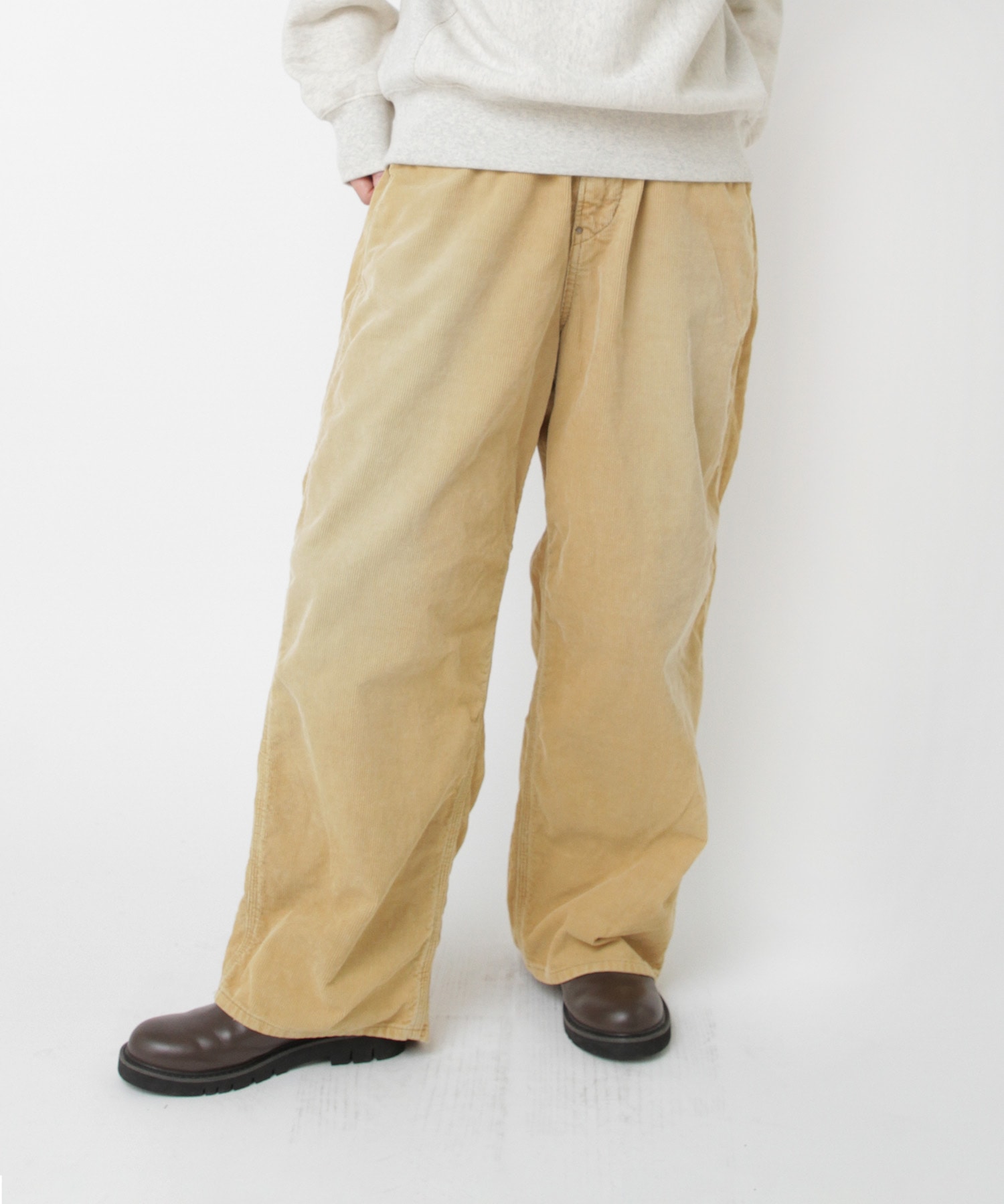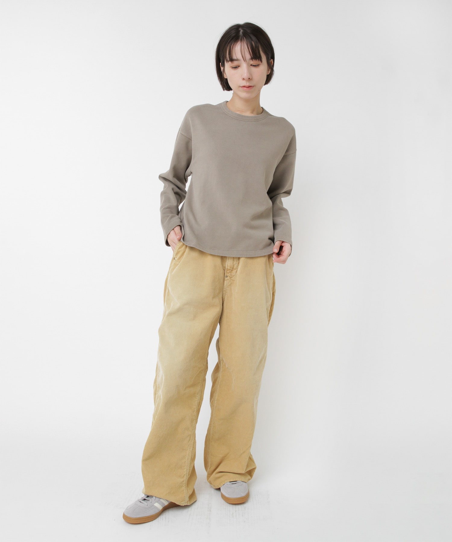 裾までストンと落ちる丸みのない太めのシルエットで、オーバーサイズのメンズパンツを穿いているようなアイテムです。
