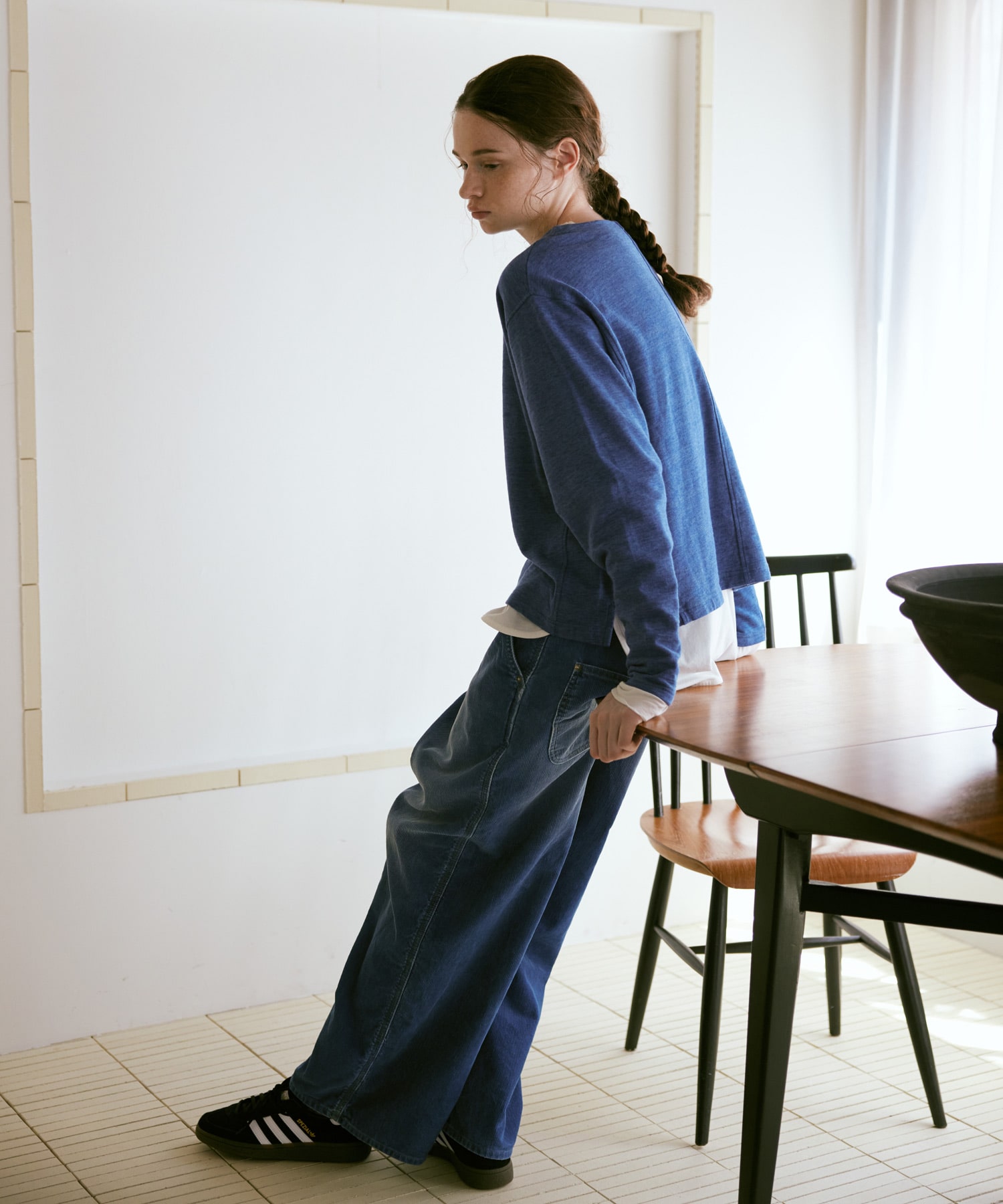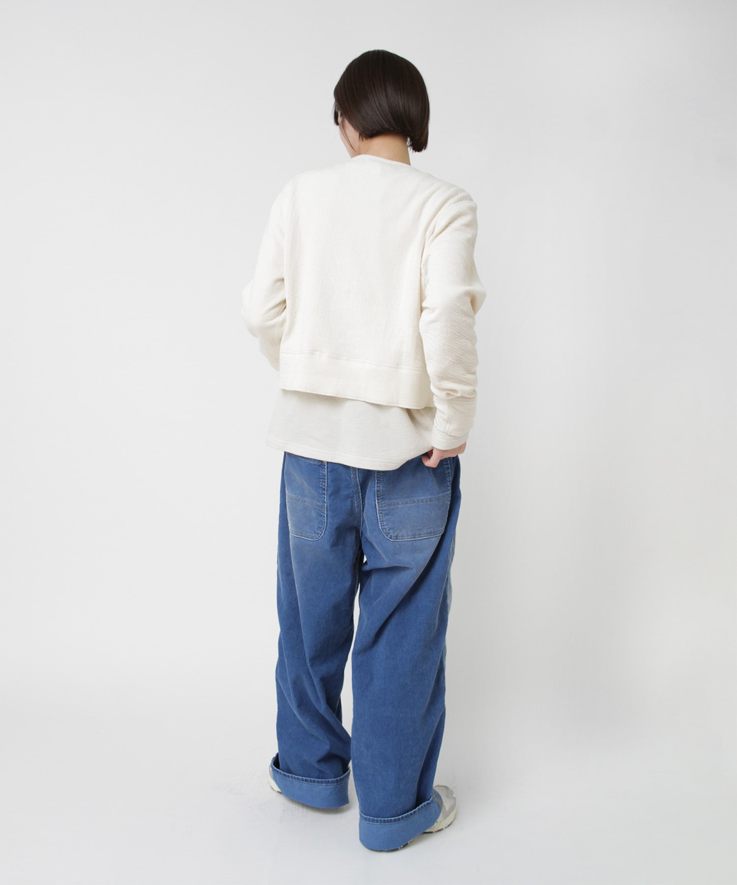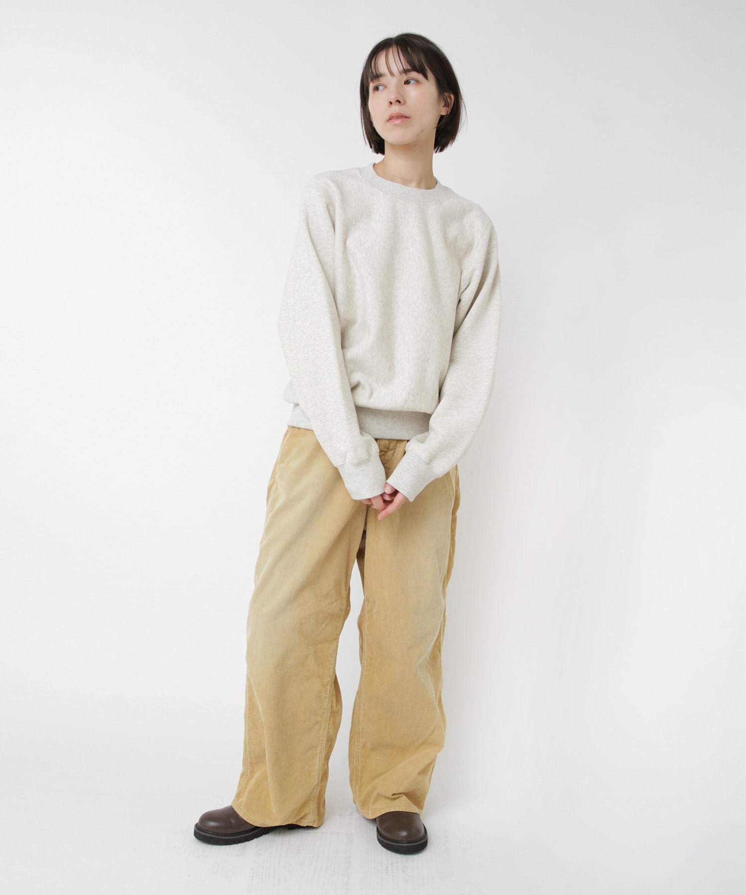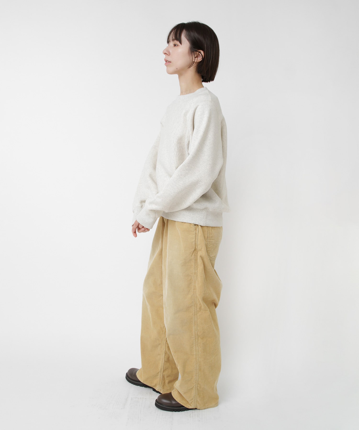 裾までストンと落ちる丸みのない太めのシルエットで、オーバーサイズのメンズパンツを穿いているようなアイテムです。