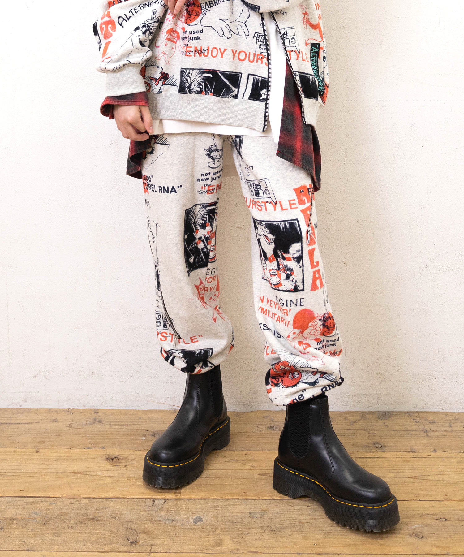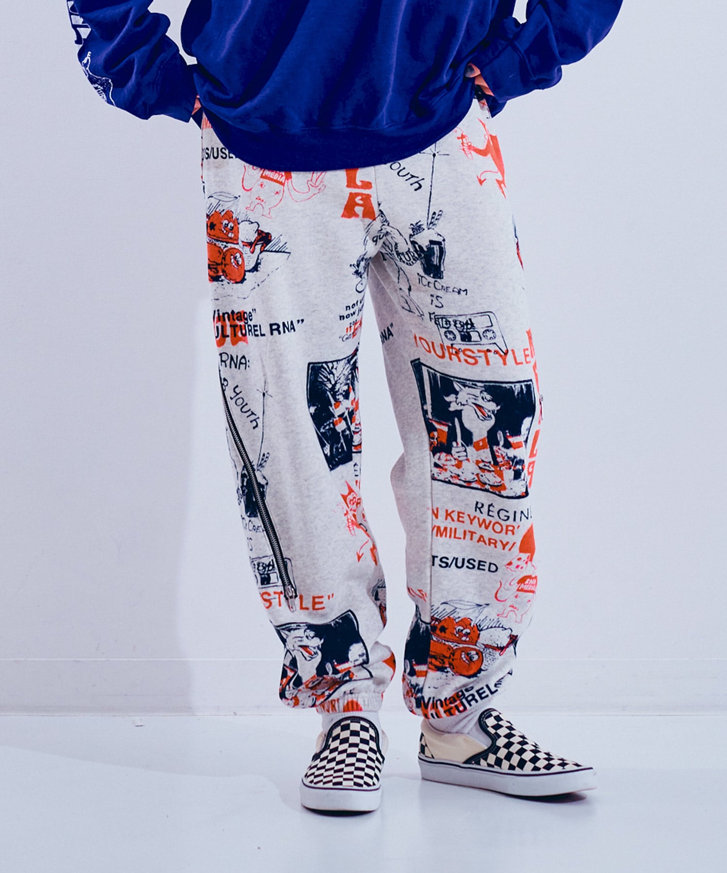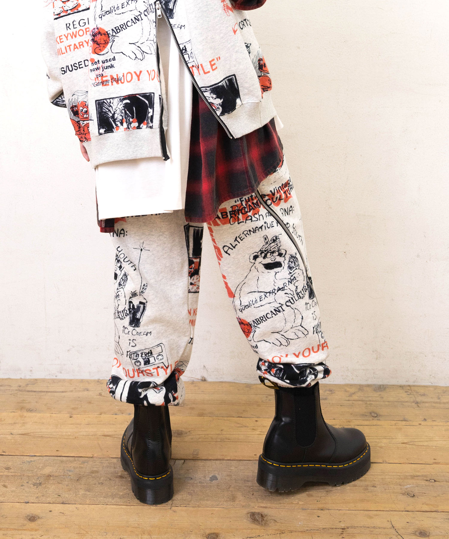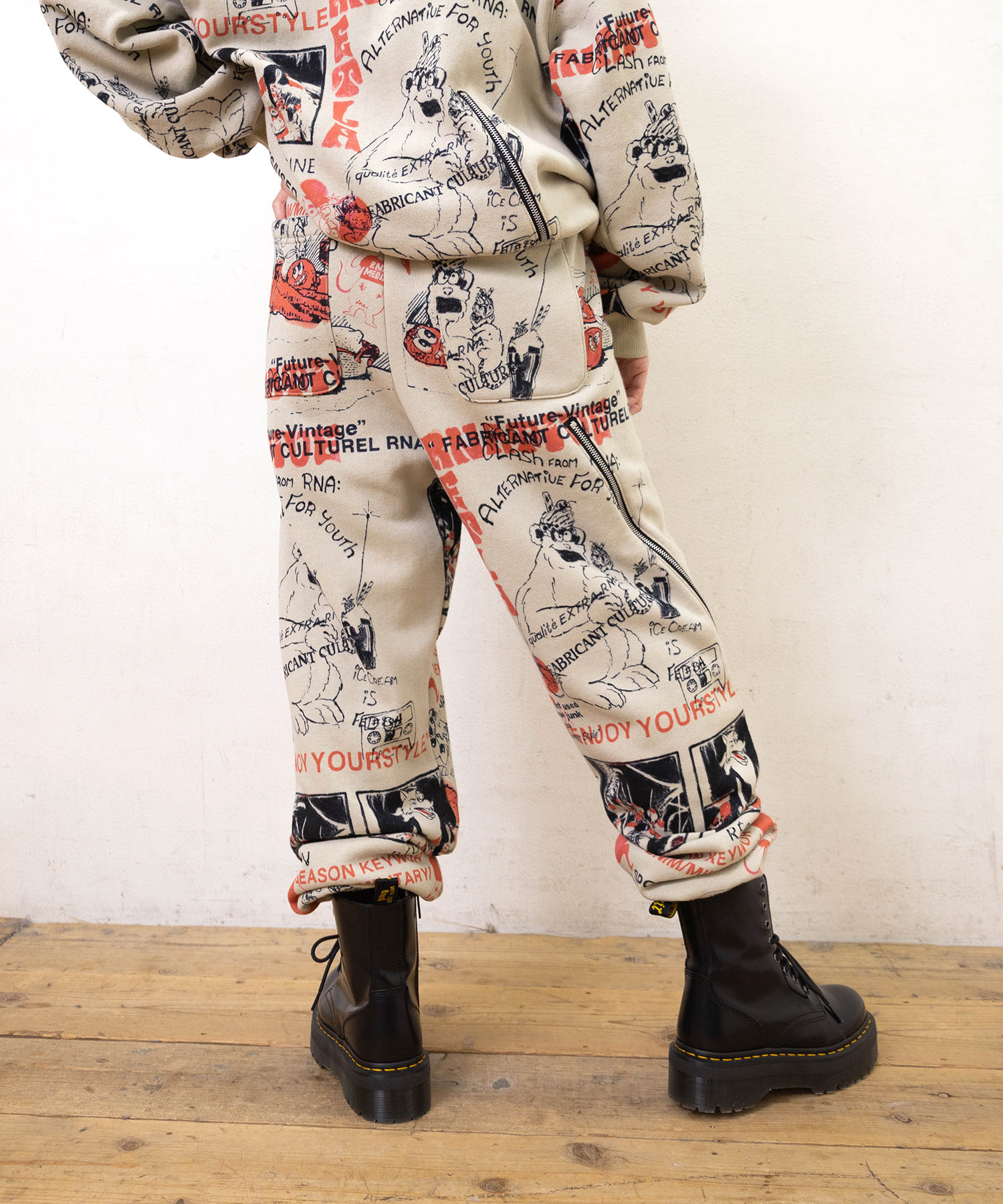 80’sニューウェーブテイストのヘンテコでジャンクなグラフィックスウェットパンツ