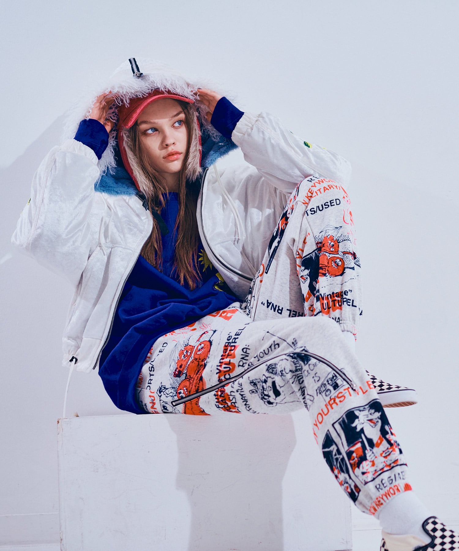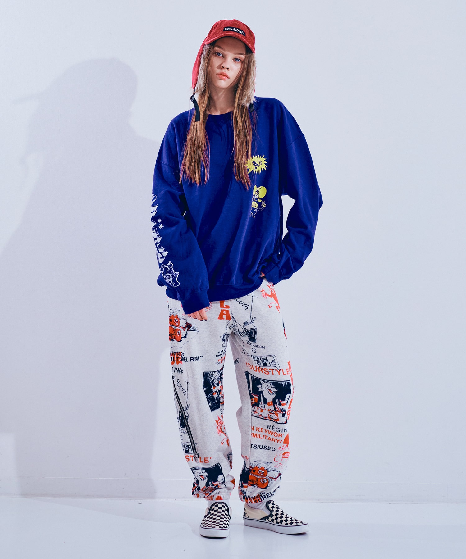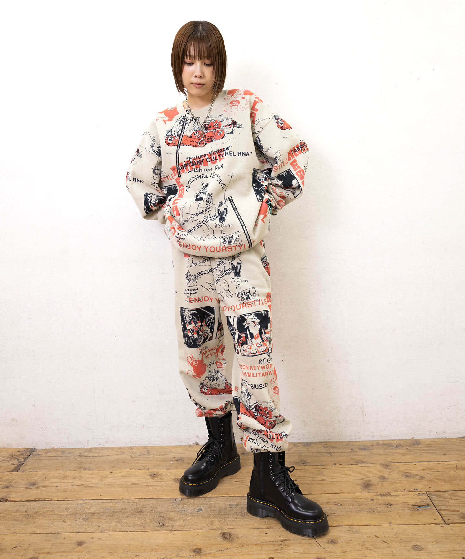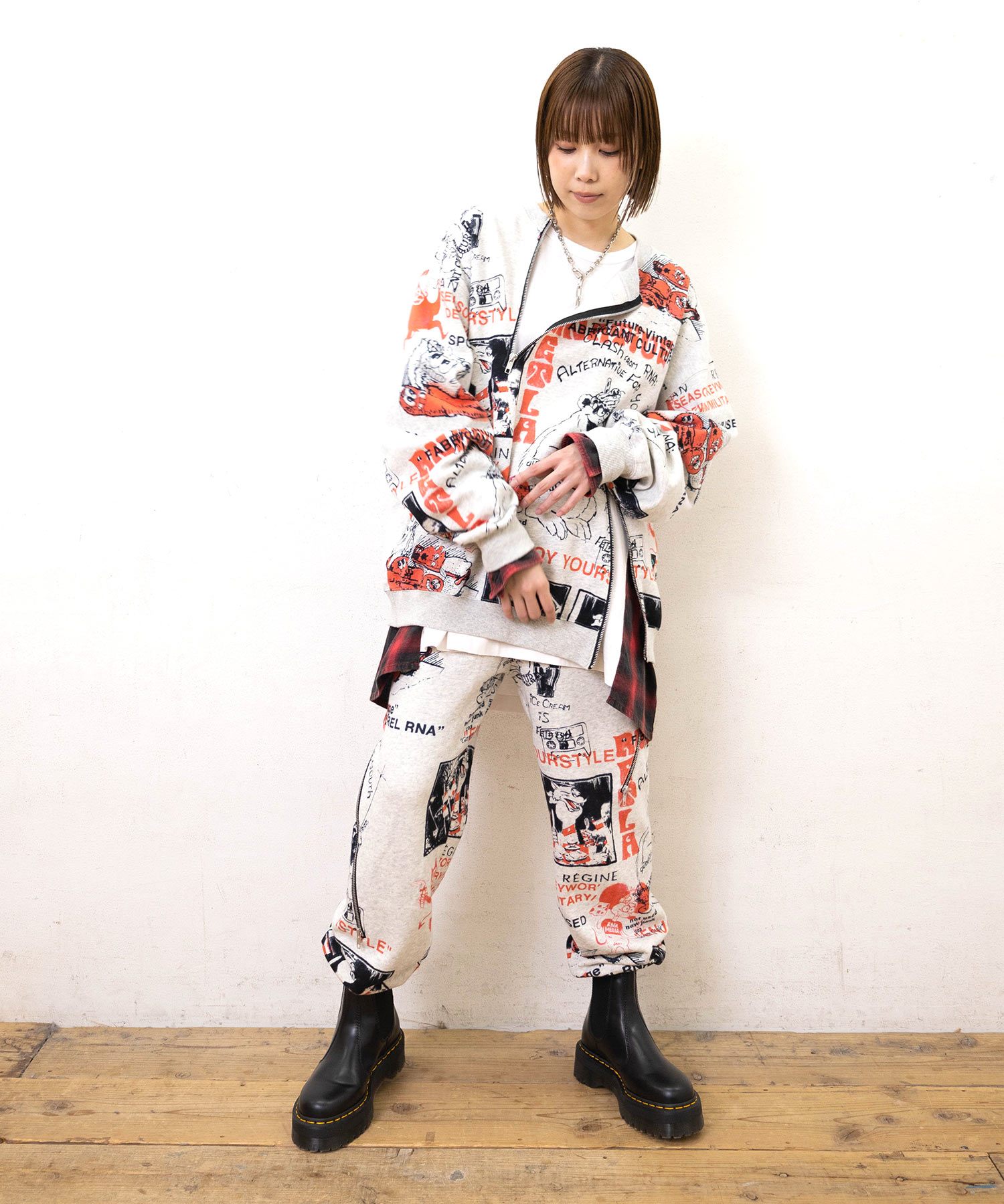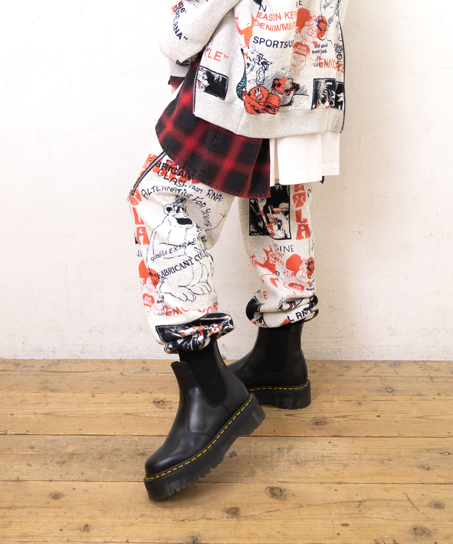 80’sニューウェーブテイストのヘンテコでジャンクなグラフィックスウェットパンツ
