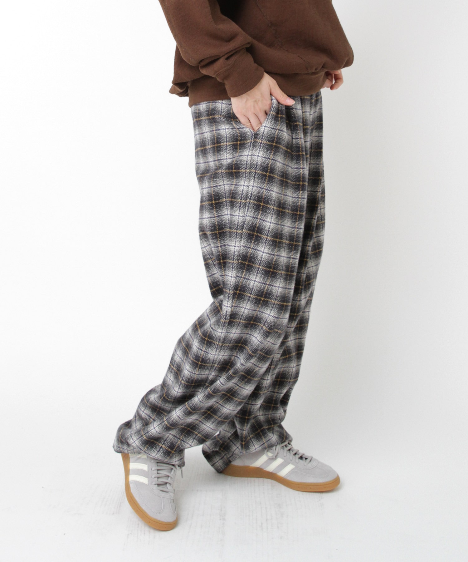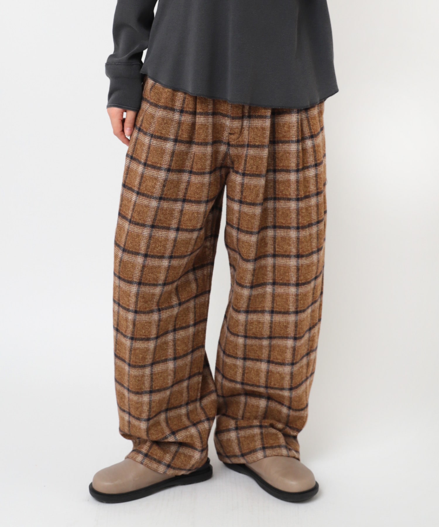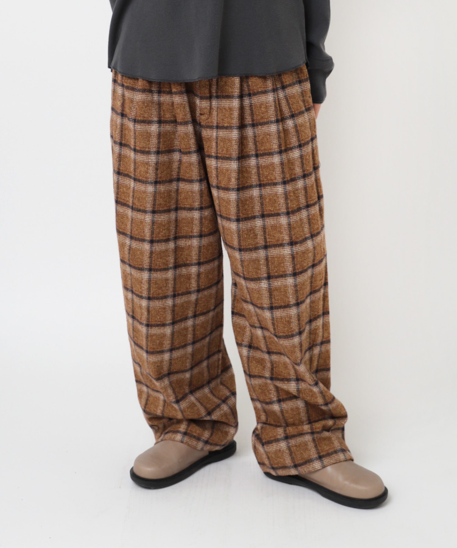 ほどよいラフさとこなれ感を演出する、イージーケアなチェックワイドパンツ