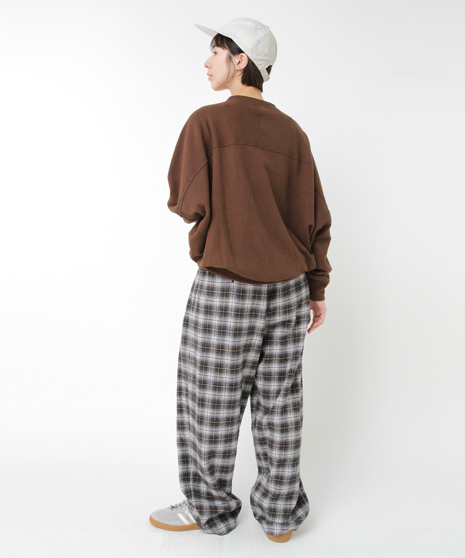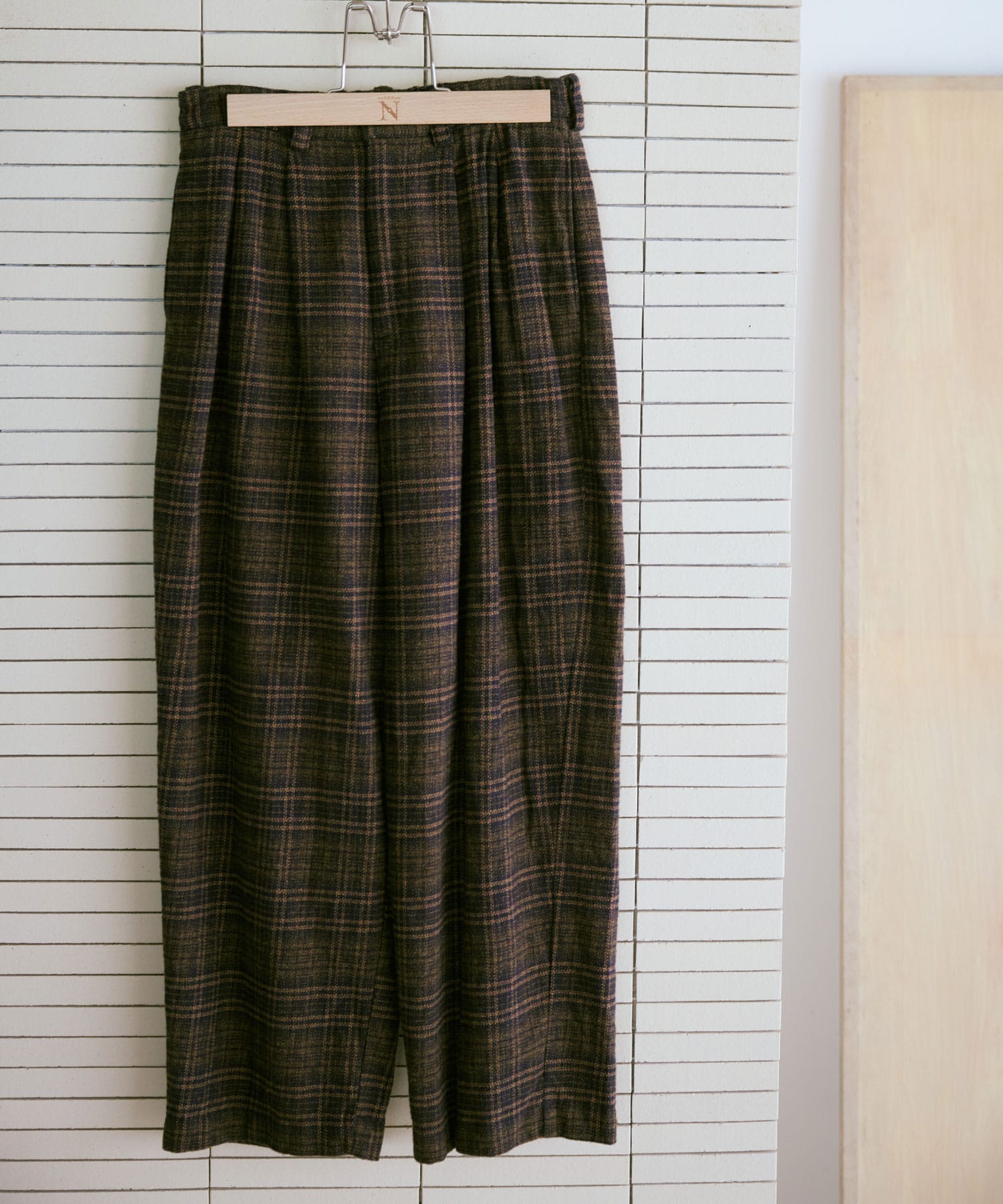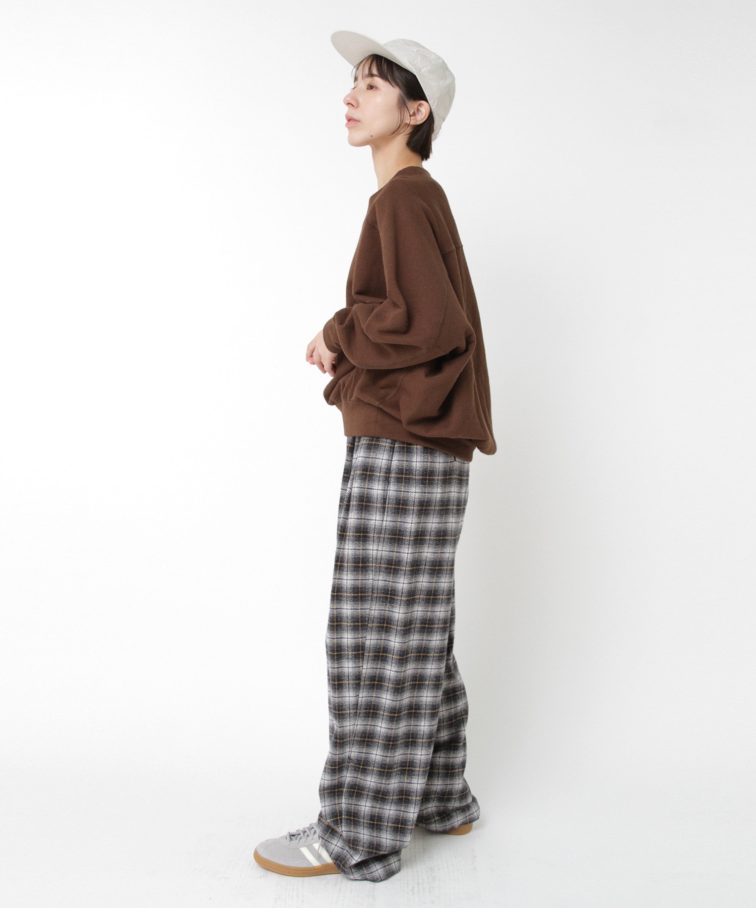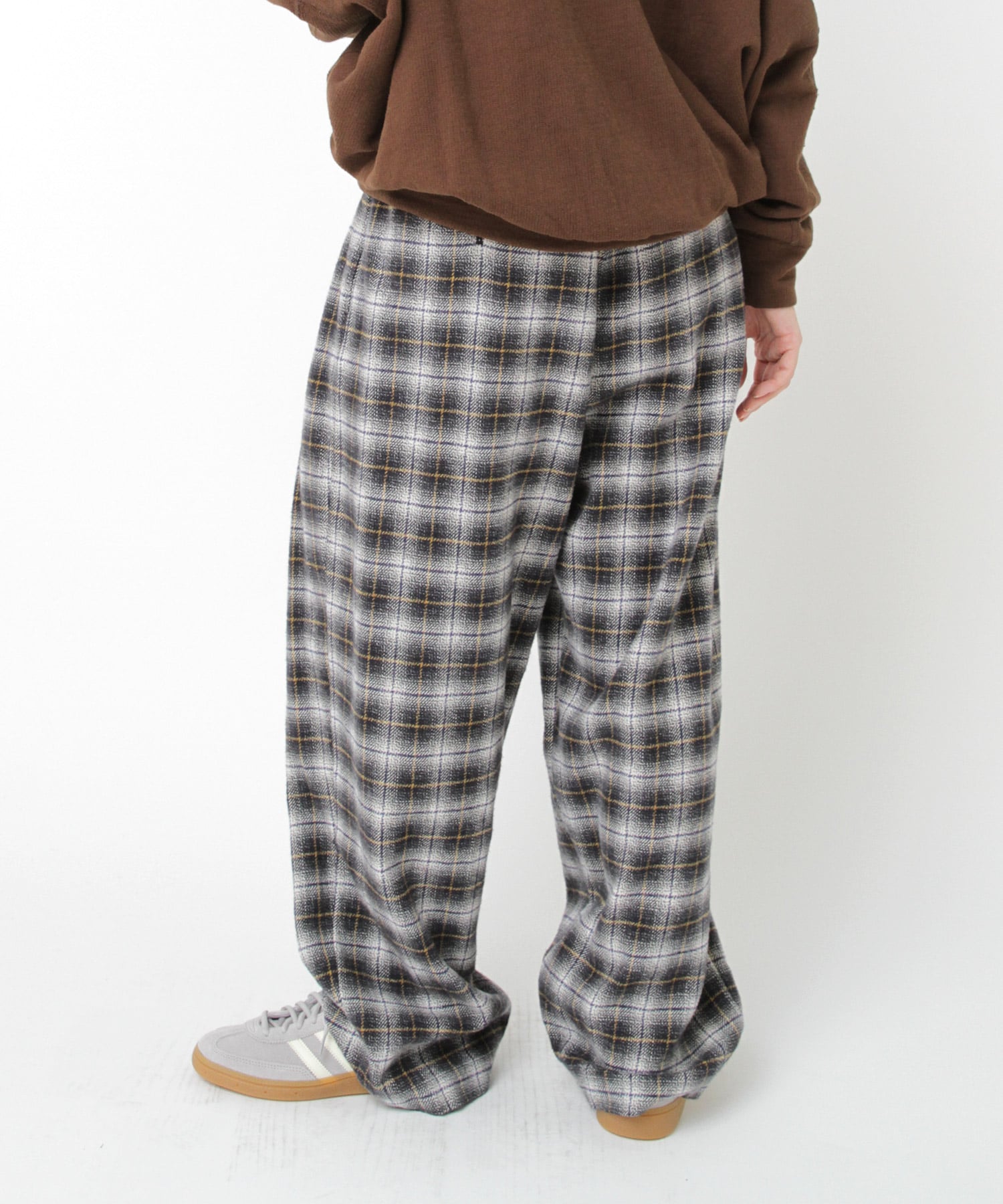 ほどよいラフさとこなれ感を演出する、イージーケアなチェックワイドパンツ