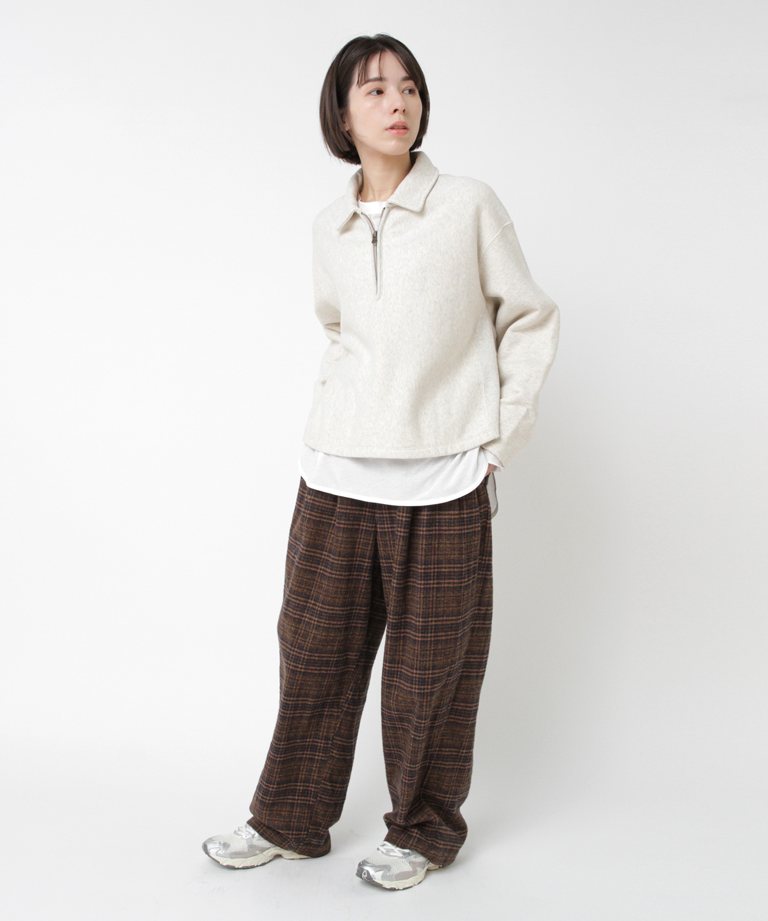 ツイード風の表情ある生地を使用した、トラッド感のあるワイドパンツです。