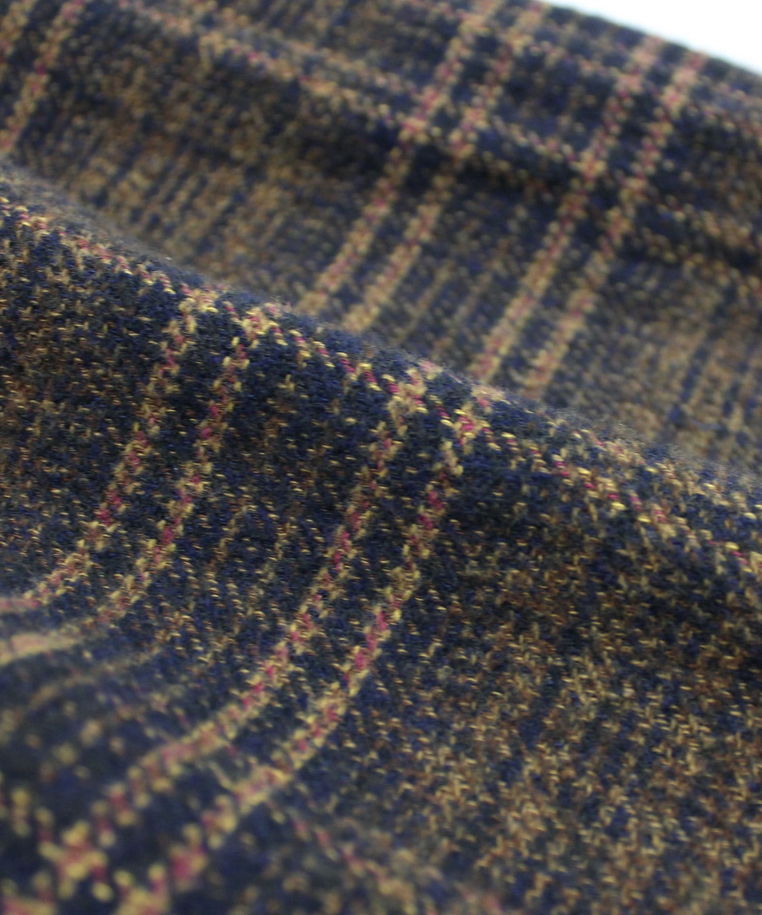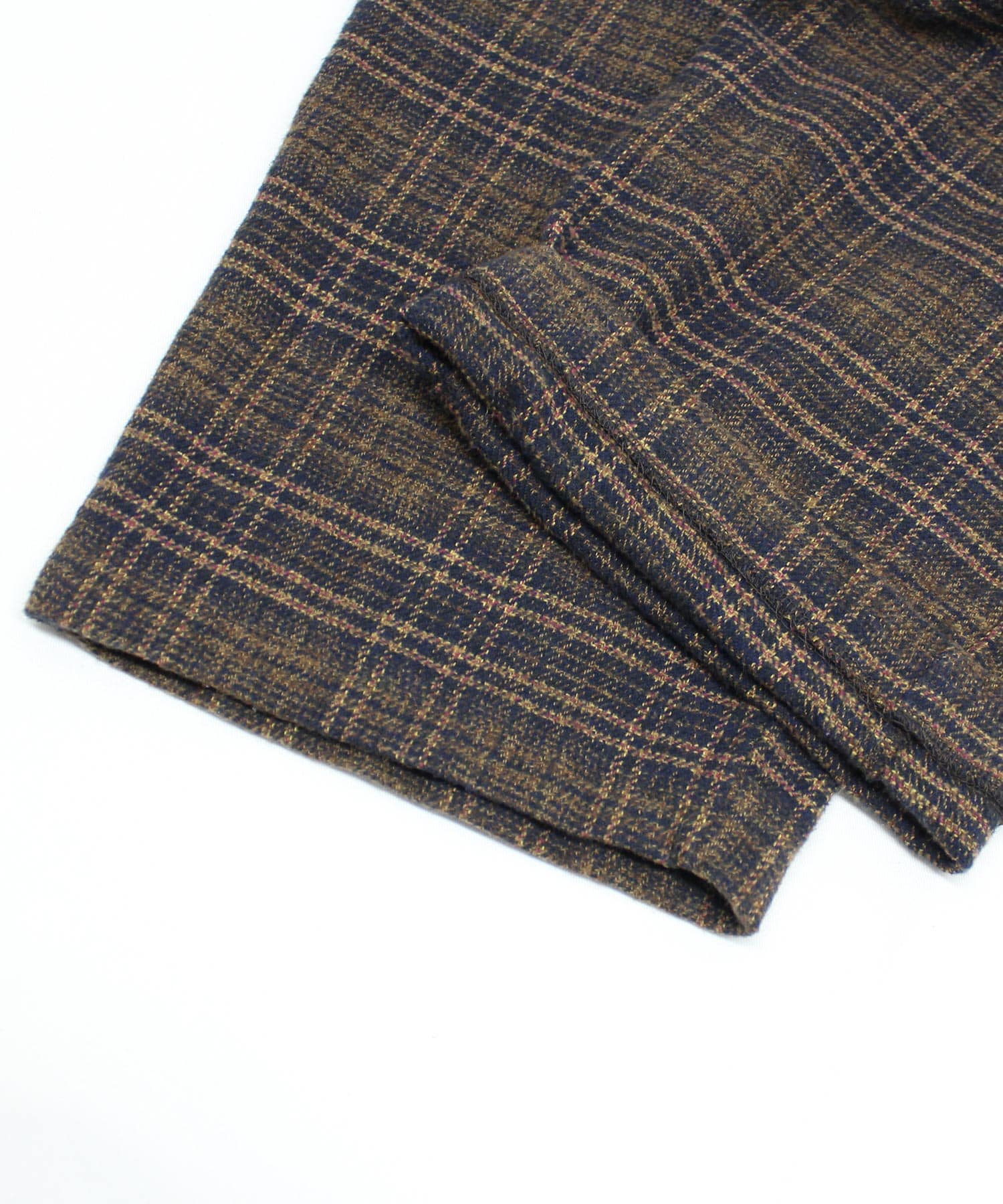 柄は落ち着きのあるタータンチェック。しっかりとした生地感でウールのように見えますがコットンですので家で洗うことができお手入れもしやすいです。